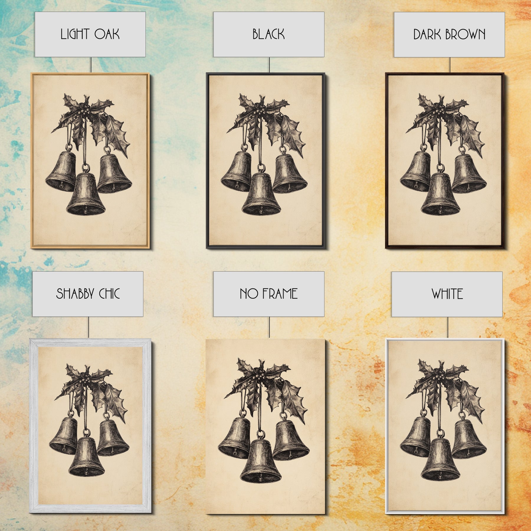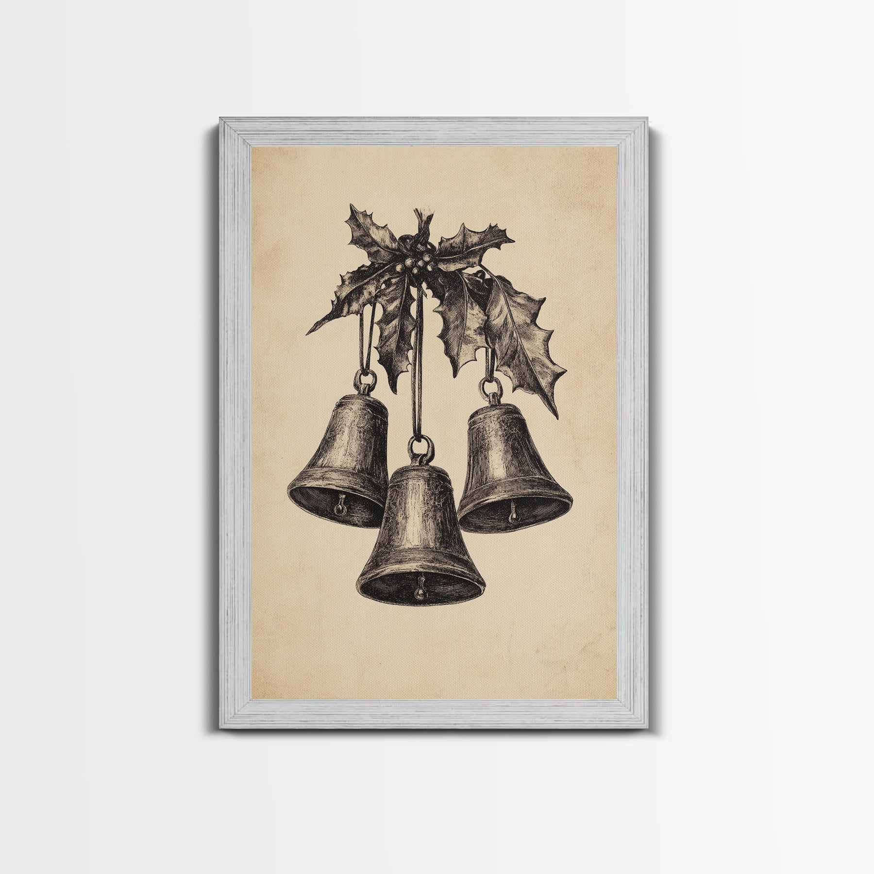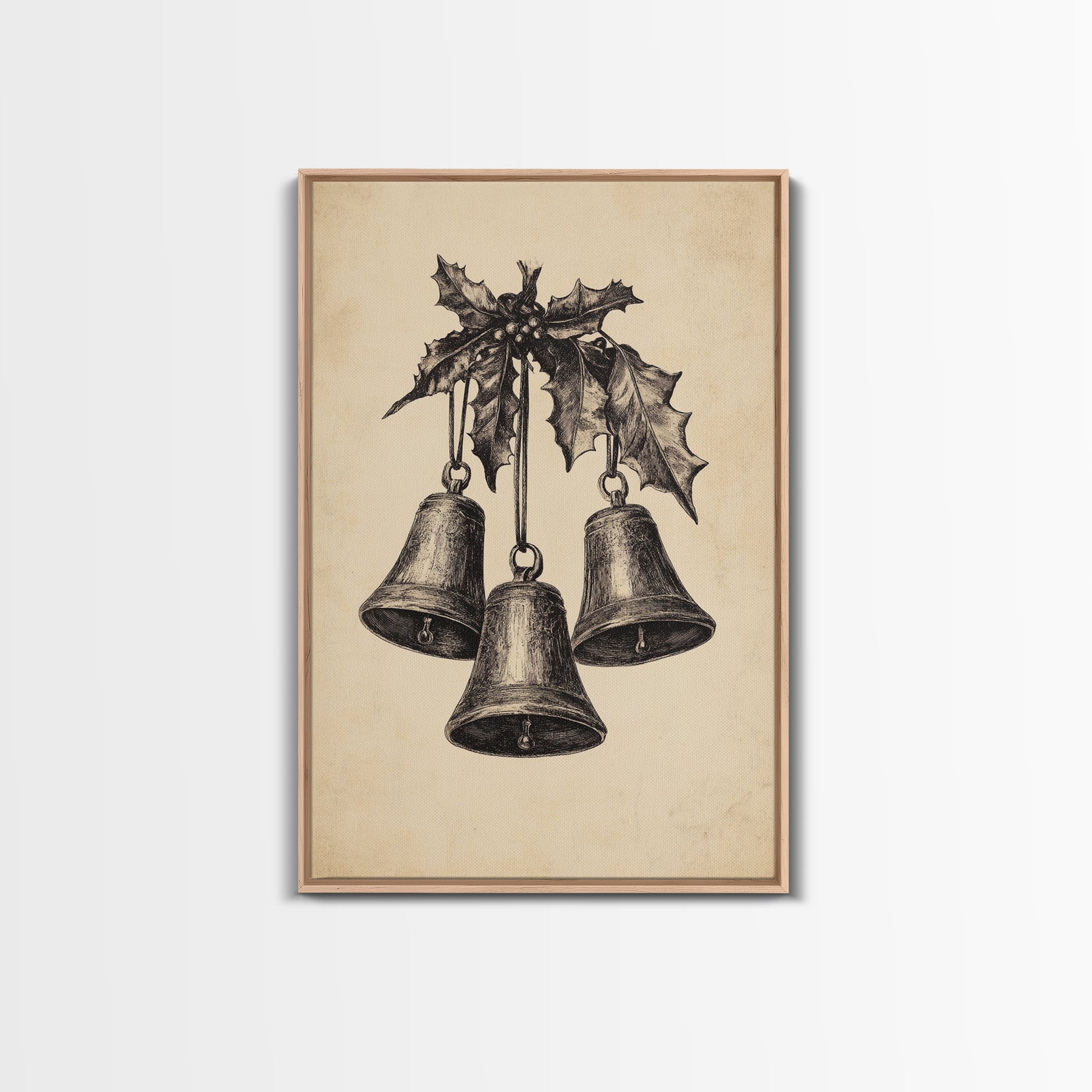 Christmas Bells Canvas Print - Framed Canvas - Minimalist Christmas Art - Boho Christmas Art - Rustic Christmas Art