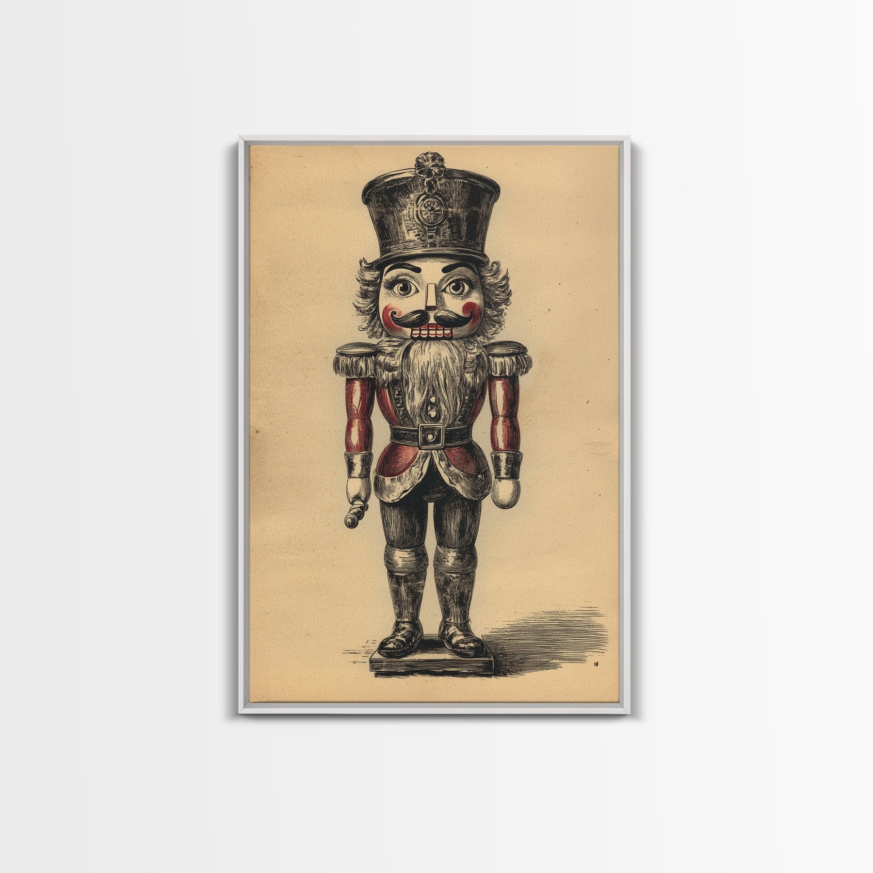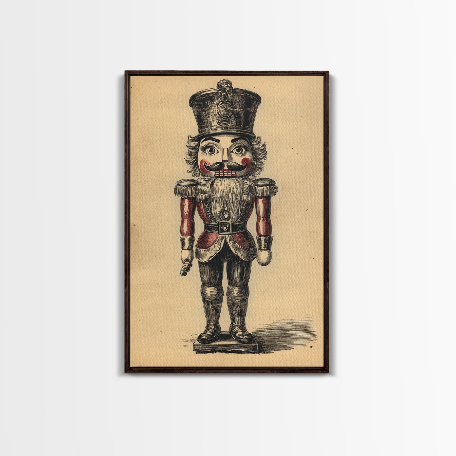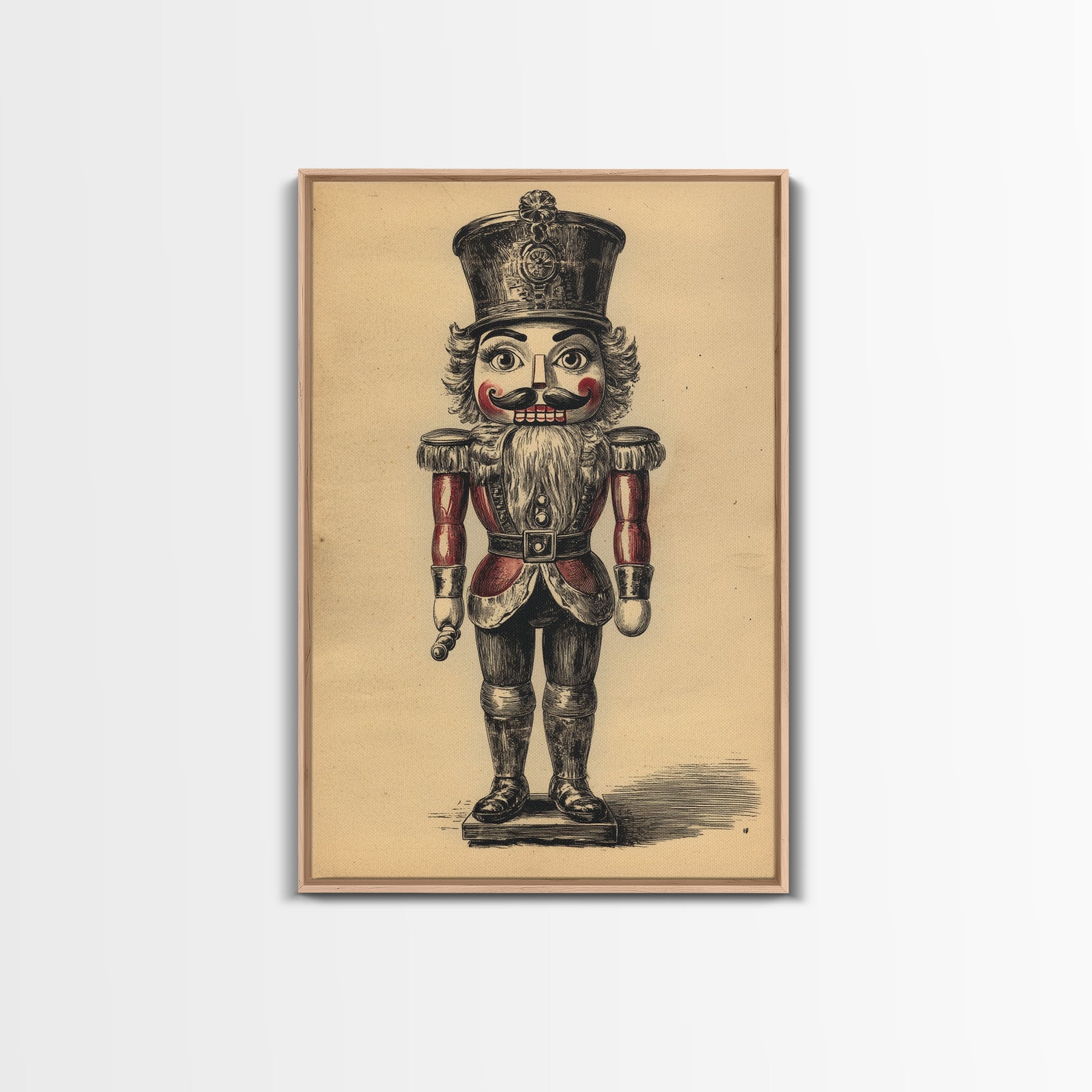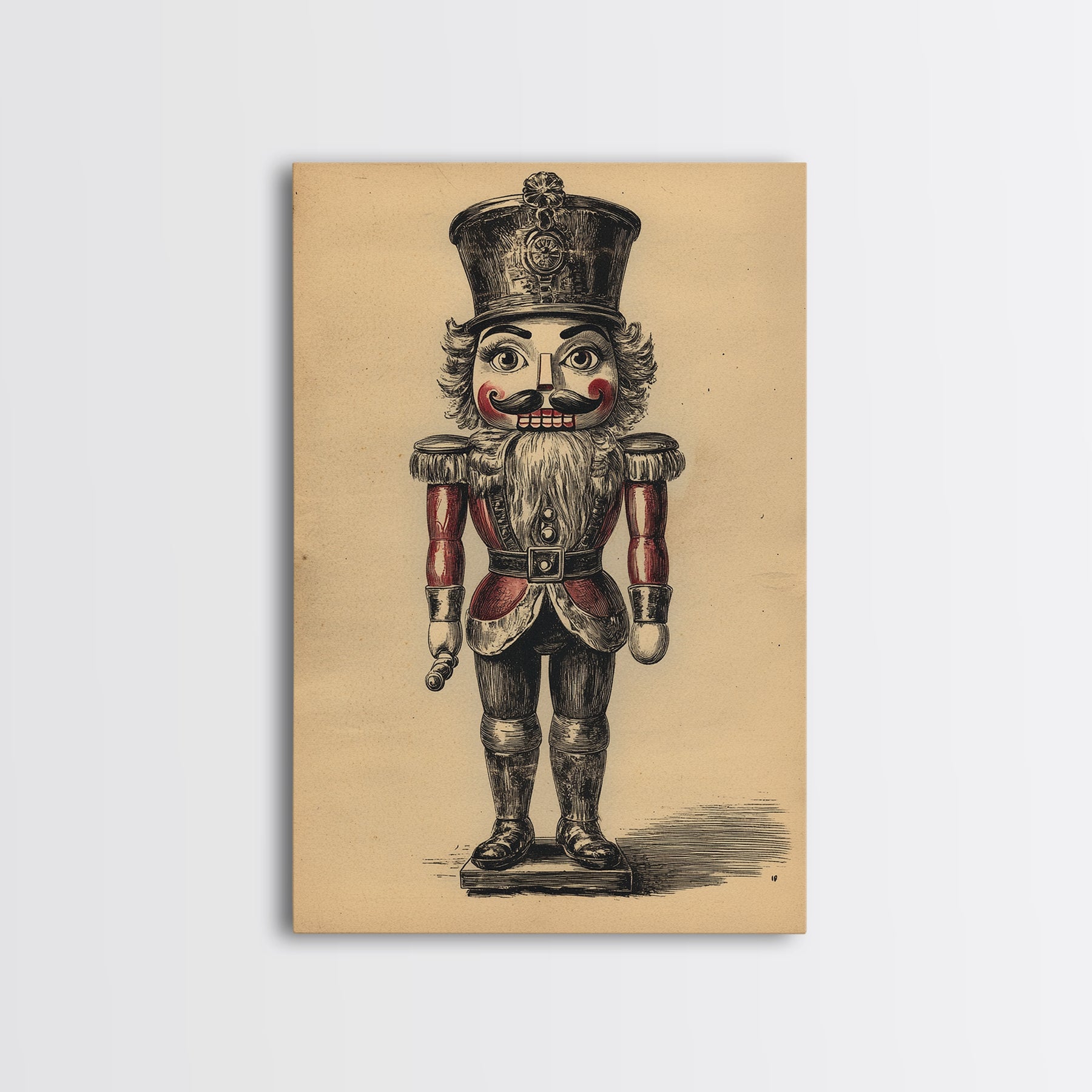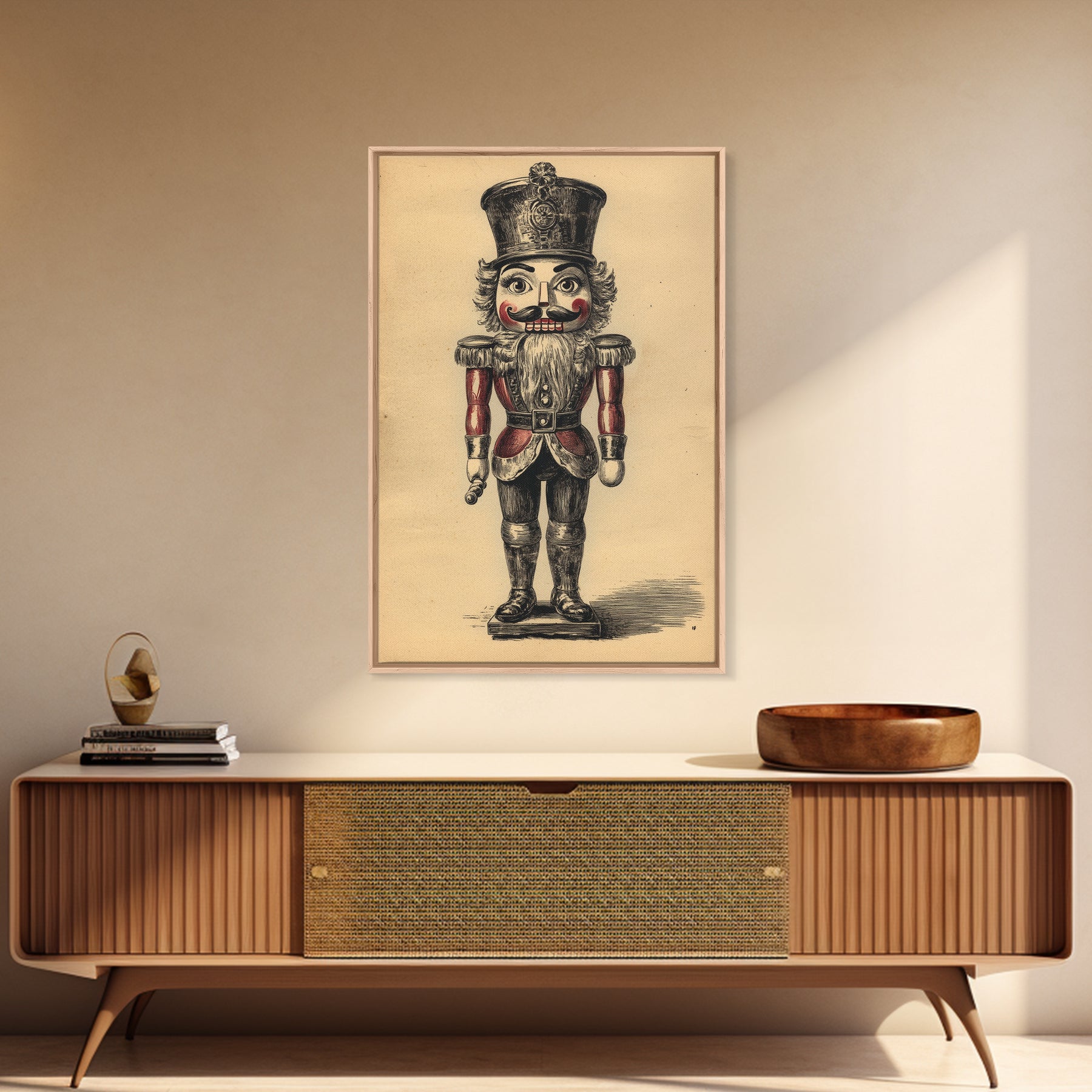 Christmas Nutcracker Canvas Print - Framed Canvas - Minimalist Christmas Art - Boho Christmas Art - Rustic Christmas Art