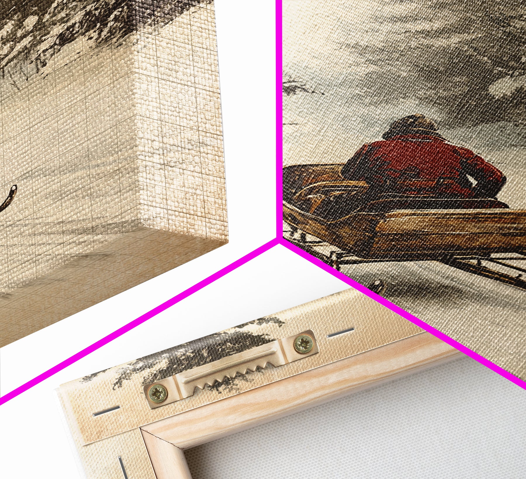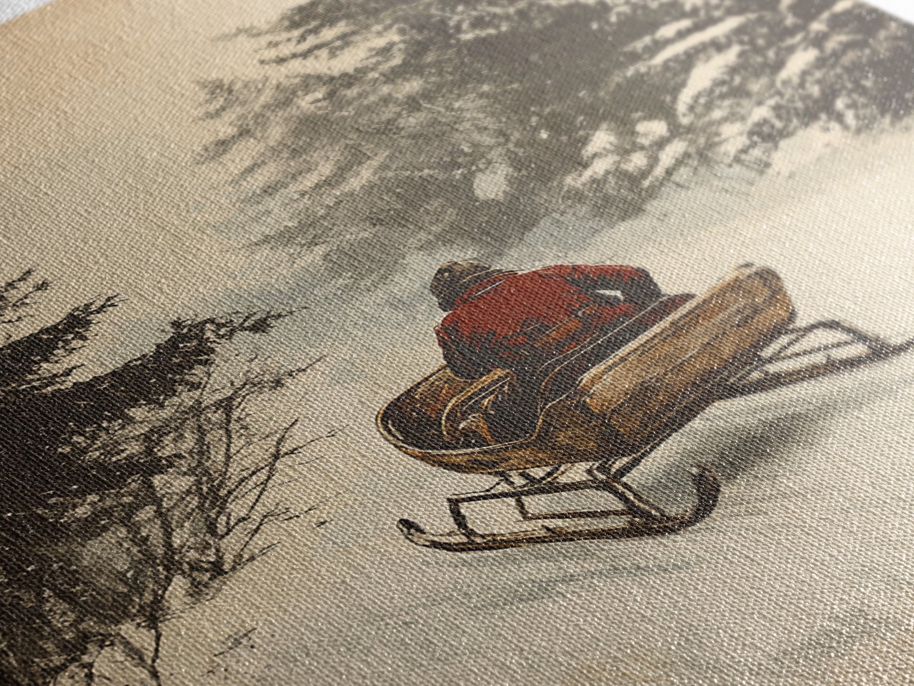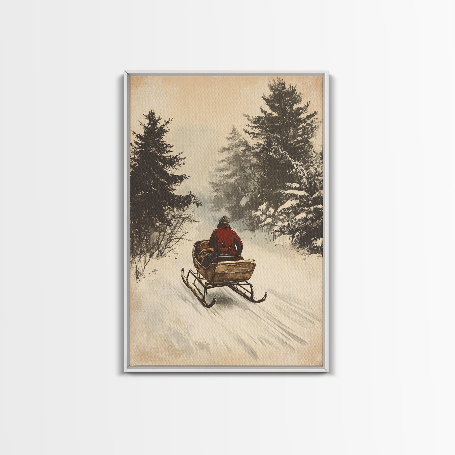 Christmas Sleigh Ride Canvas Print - Framed Canvas - Minimalist Christmas Art - Boho Christmas Art - Rustic Christmas Art