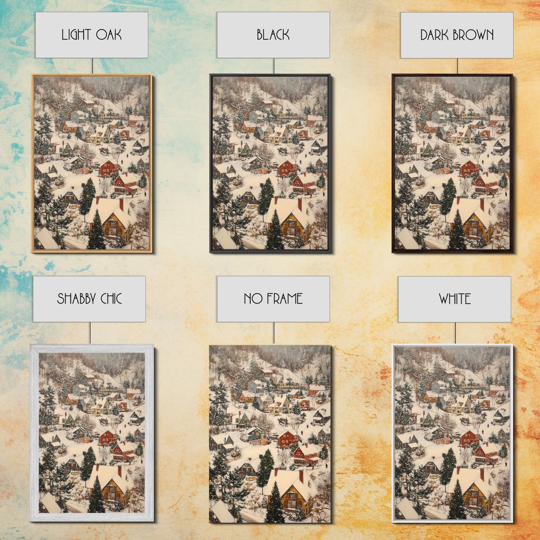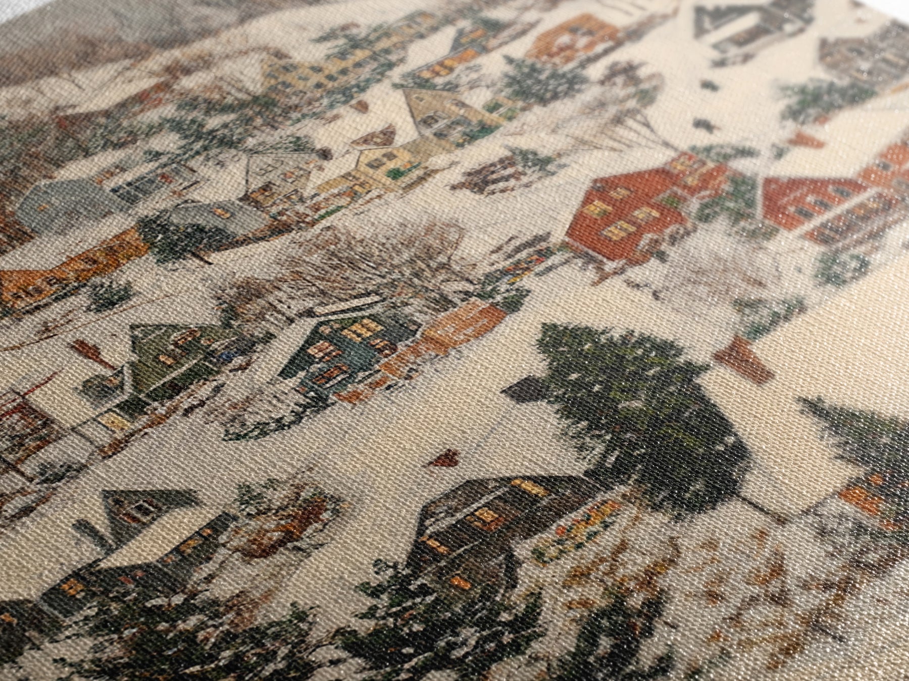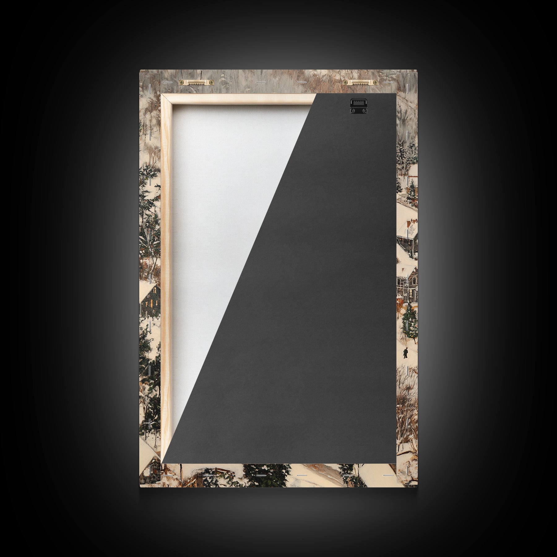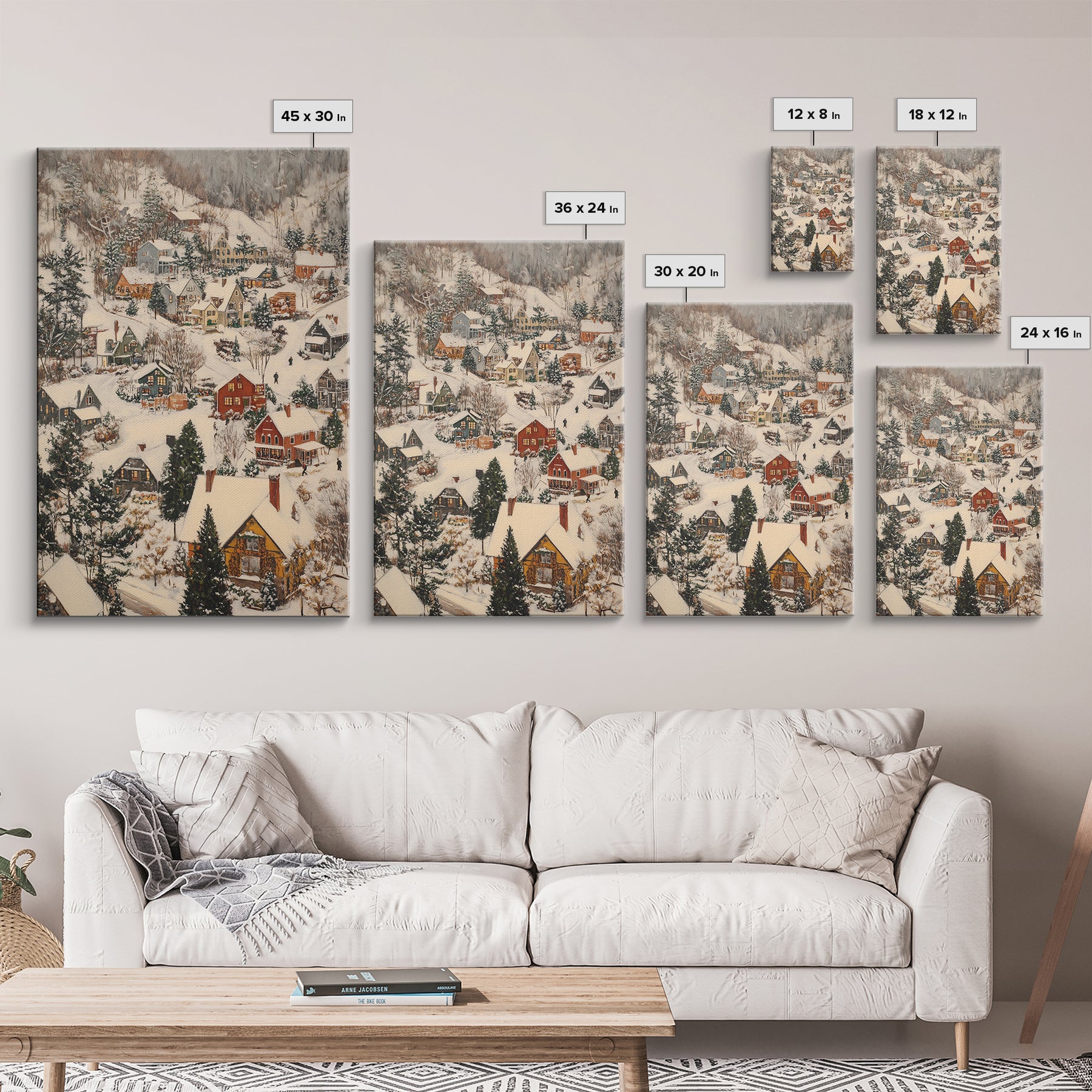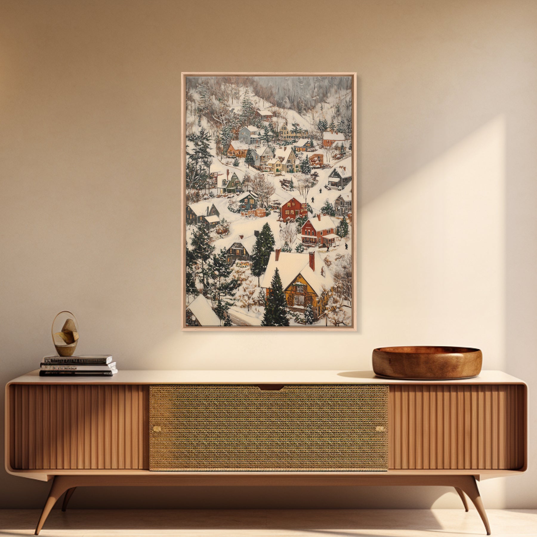 Christmas Village Covered in Snow, Framed Canvas Print, Christmas Oil painting print, Vintage Christmas Art Print, Christmas Wall Art