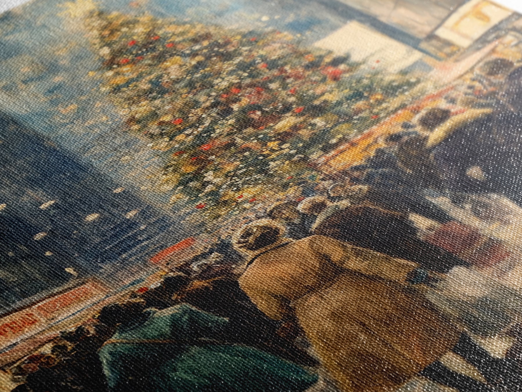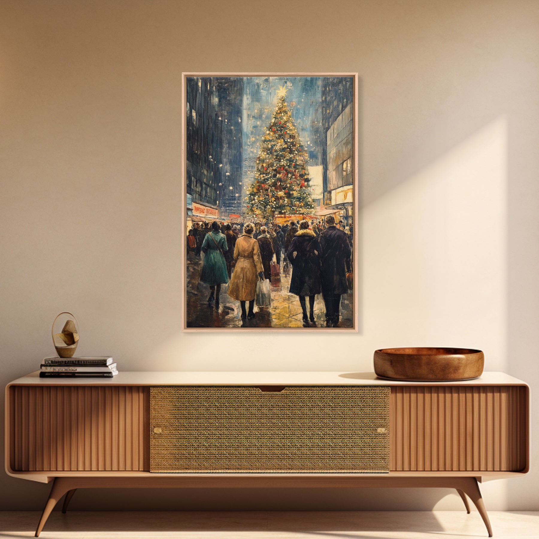 Christmas Village Wall Art Canvas print - Christmas Painting - Christmas Shopeprs in NYC in the 1950s - Christmas Decor - Winter Wall Art