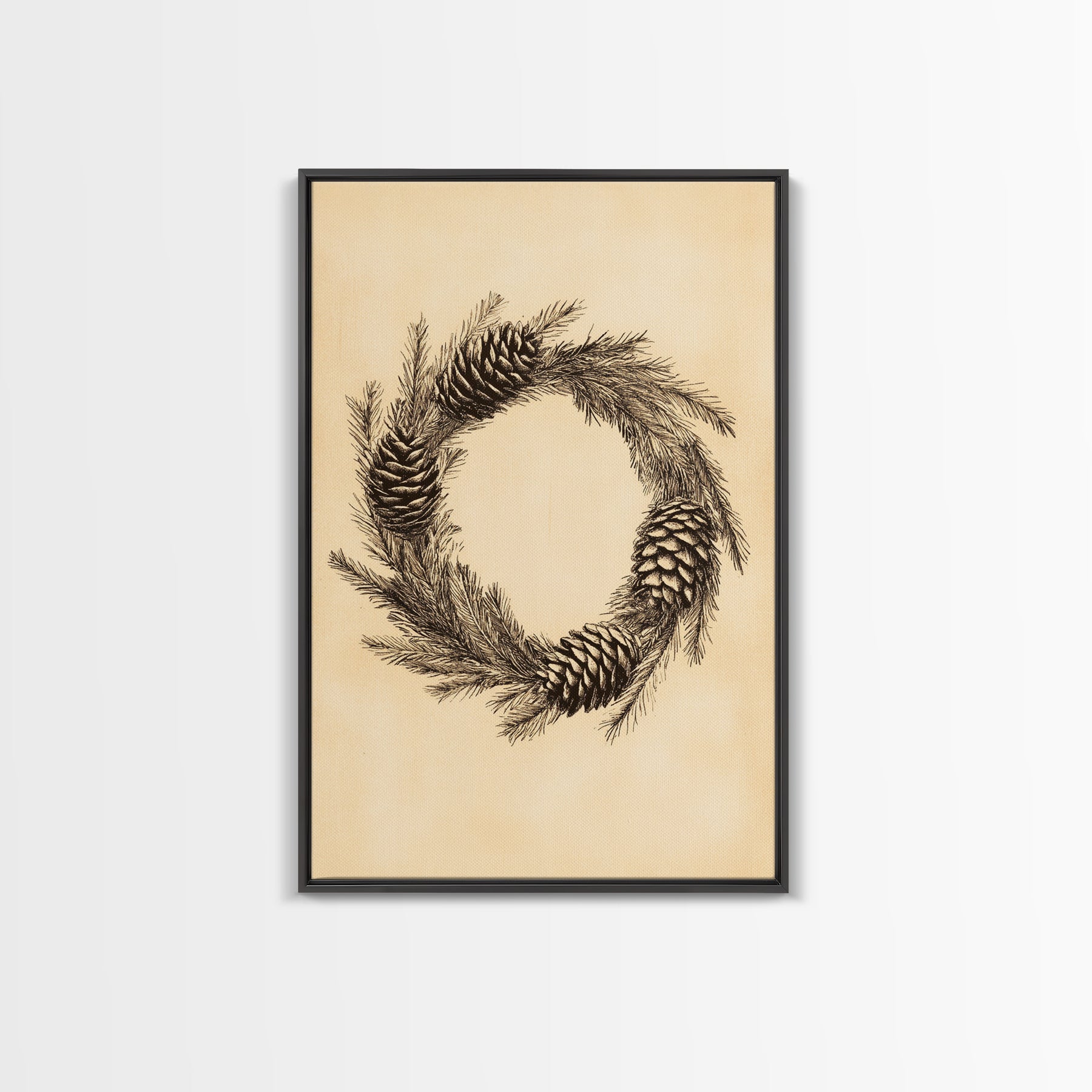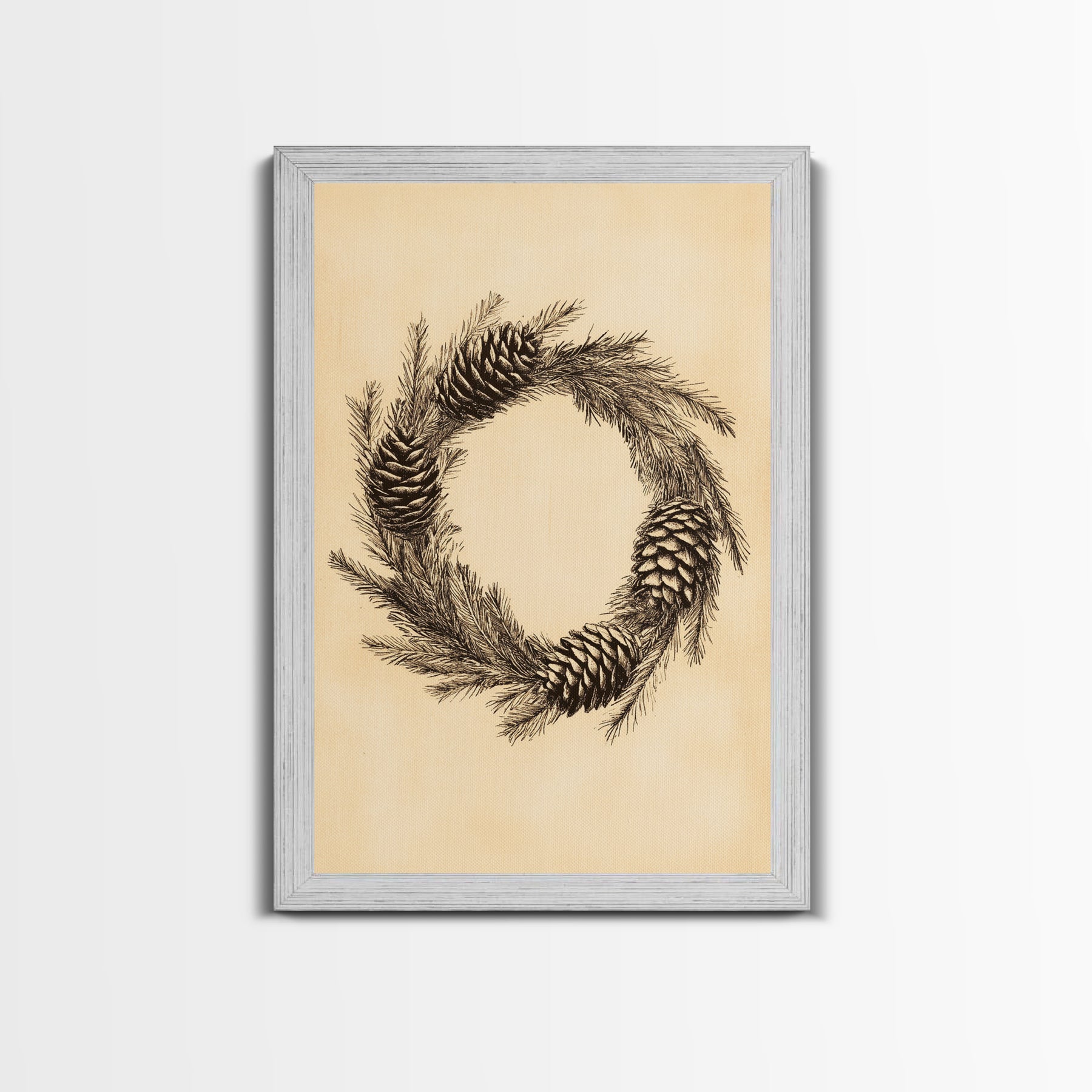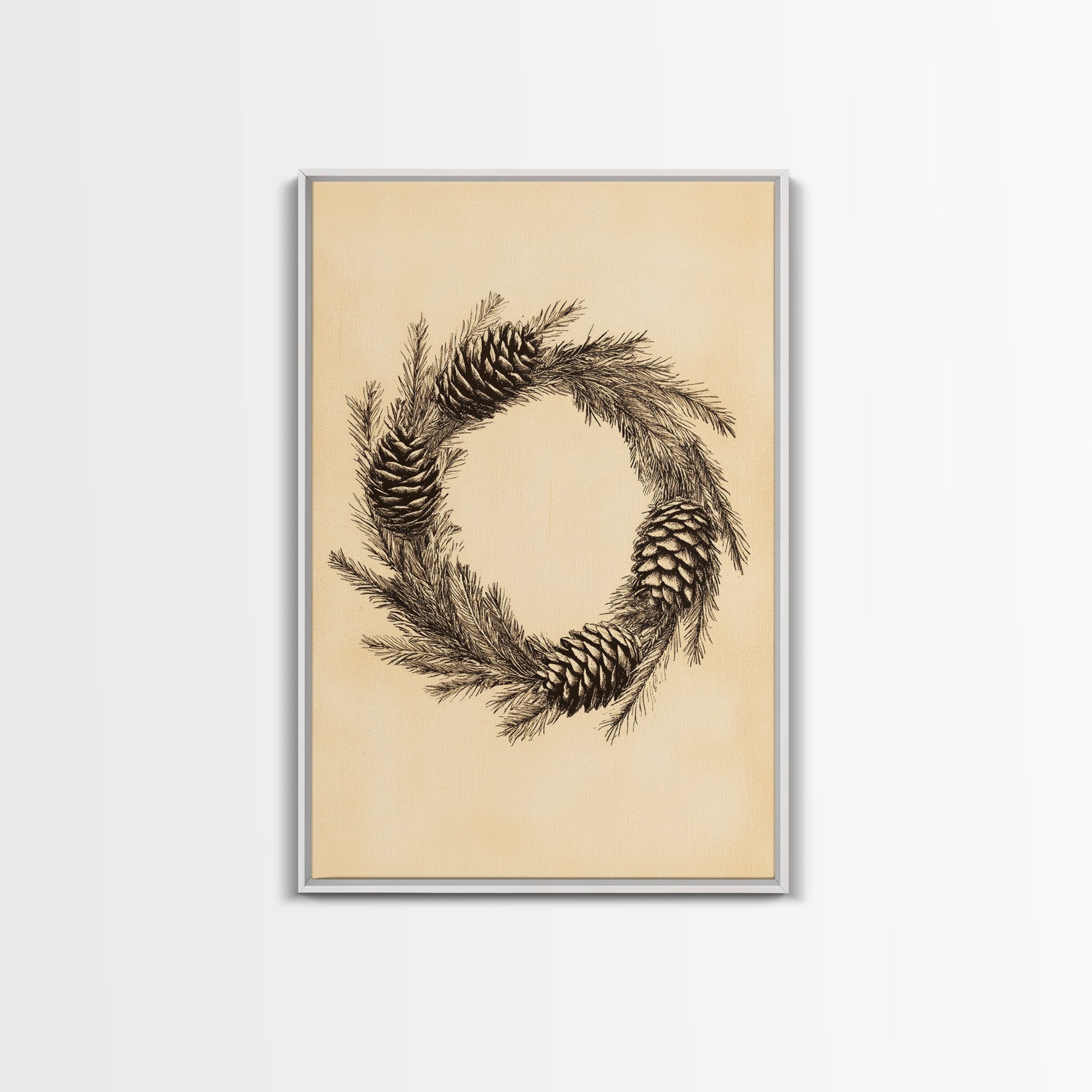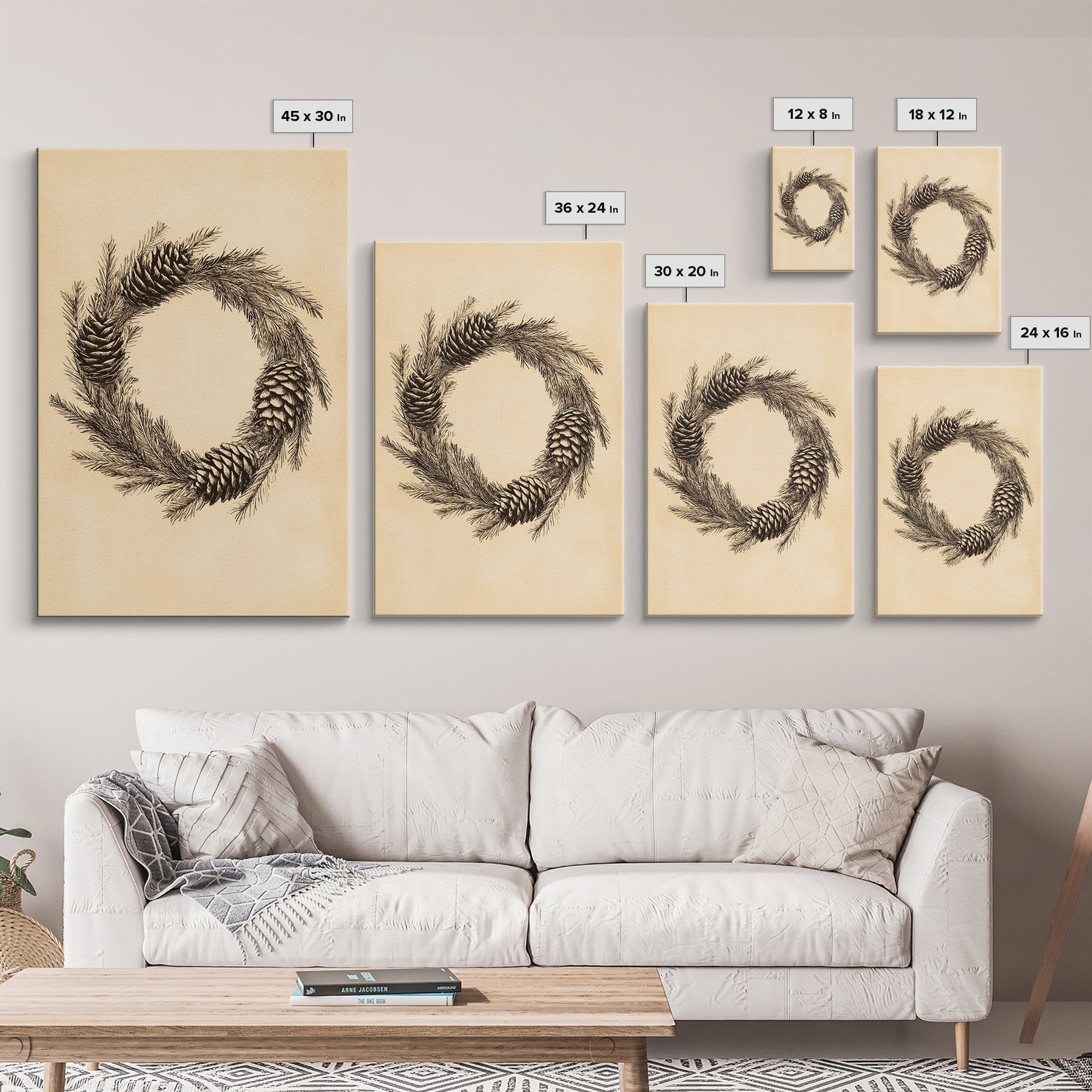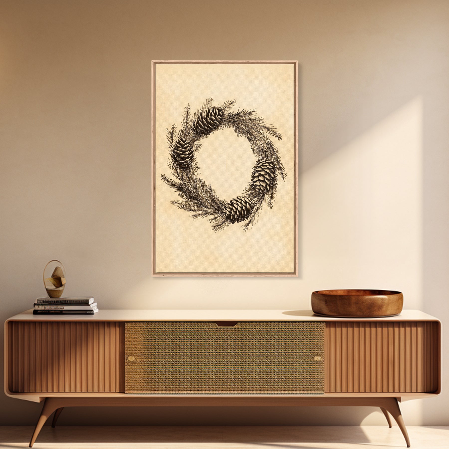 Christmas Wreath Canvas Print - Framed Canvas - Minimalist Christmas Art - Boho Christmas Art - Rustic Christmas Art
