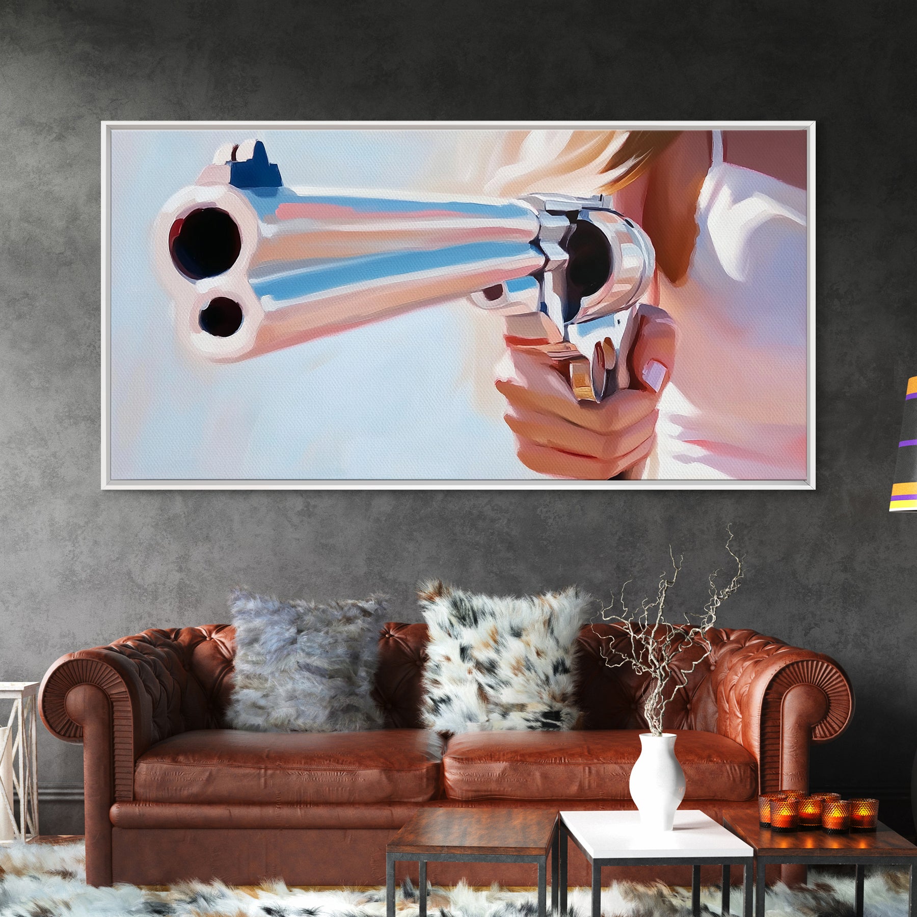 Chrome Gun, Western Art, Cowboy Decor, Canvas Print, Edgy Wall Art, Modern Painting, Masculine Art, Man Cave Wall Decor