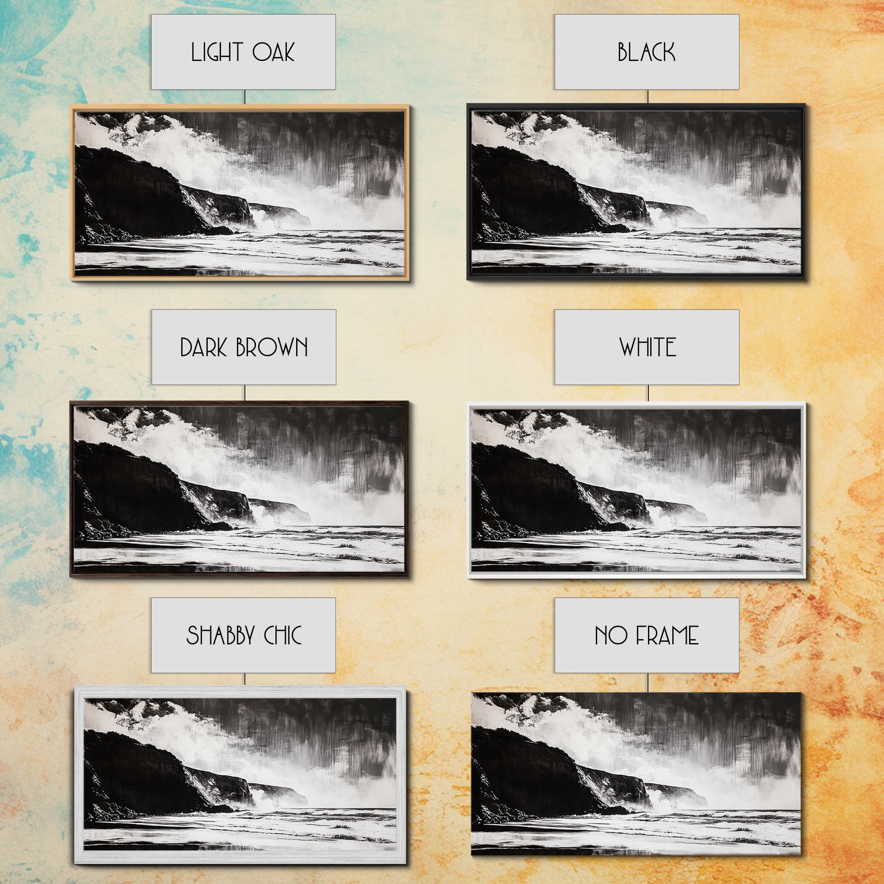 *Optional frames add a total of 1.5 inches to each dimension, for example a 10x20 canvas with a frame will be 11.5 by 21.5 inches total. All framed canvas are 1.5" total depth.