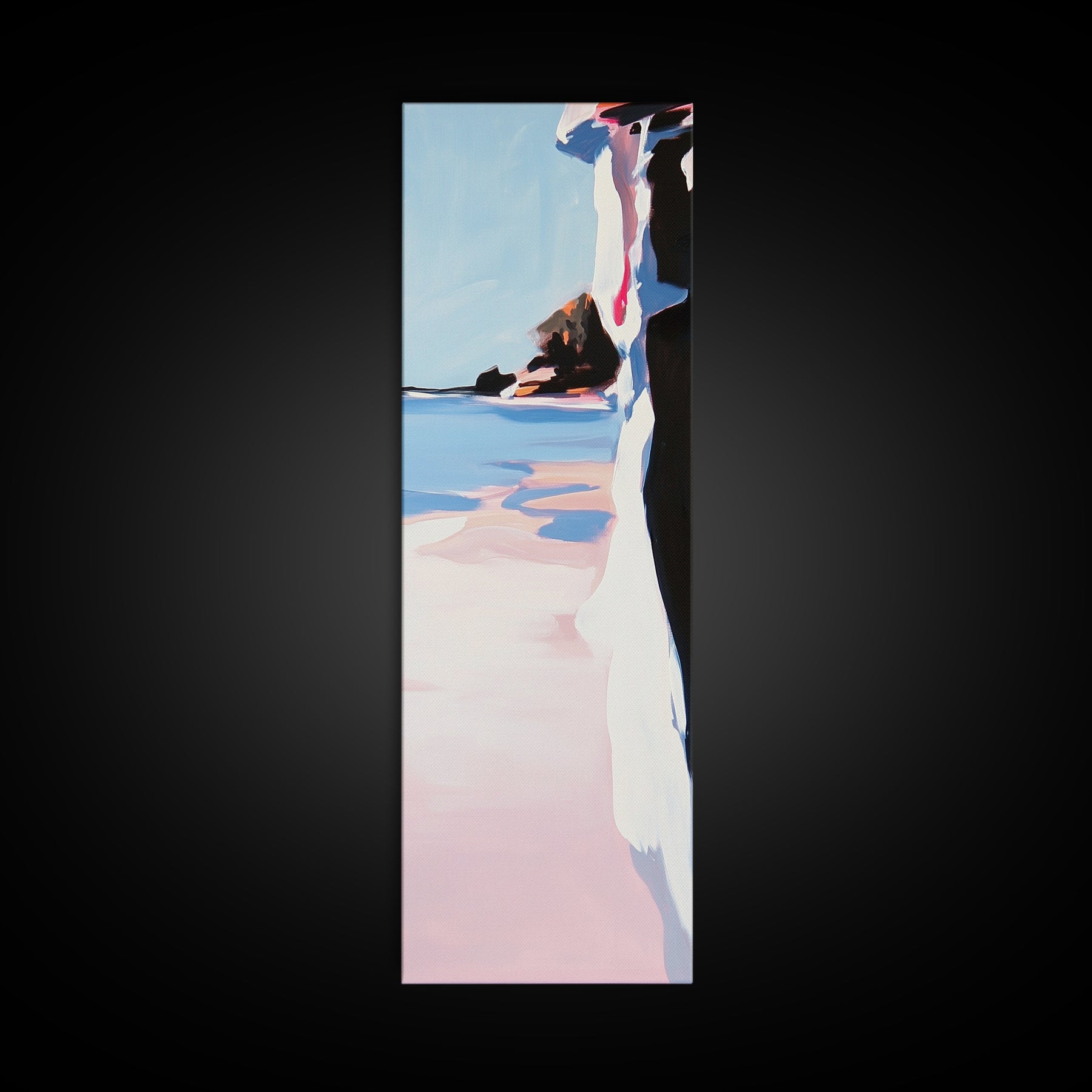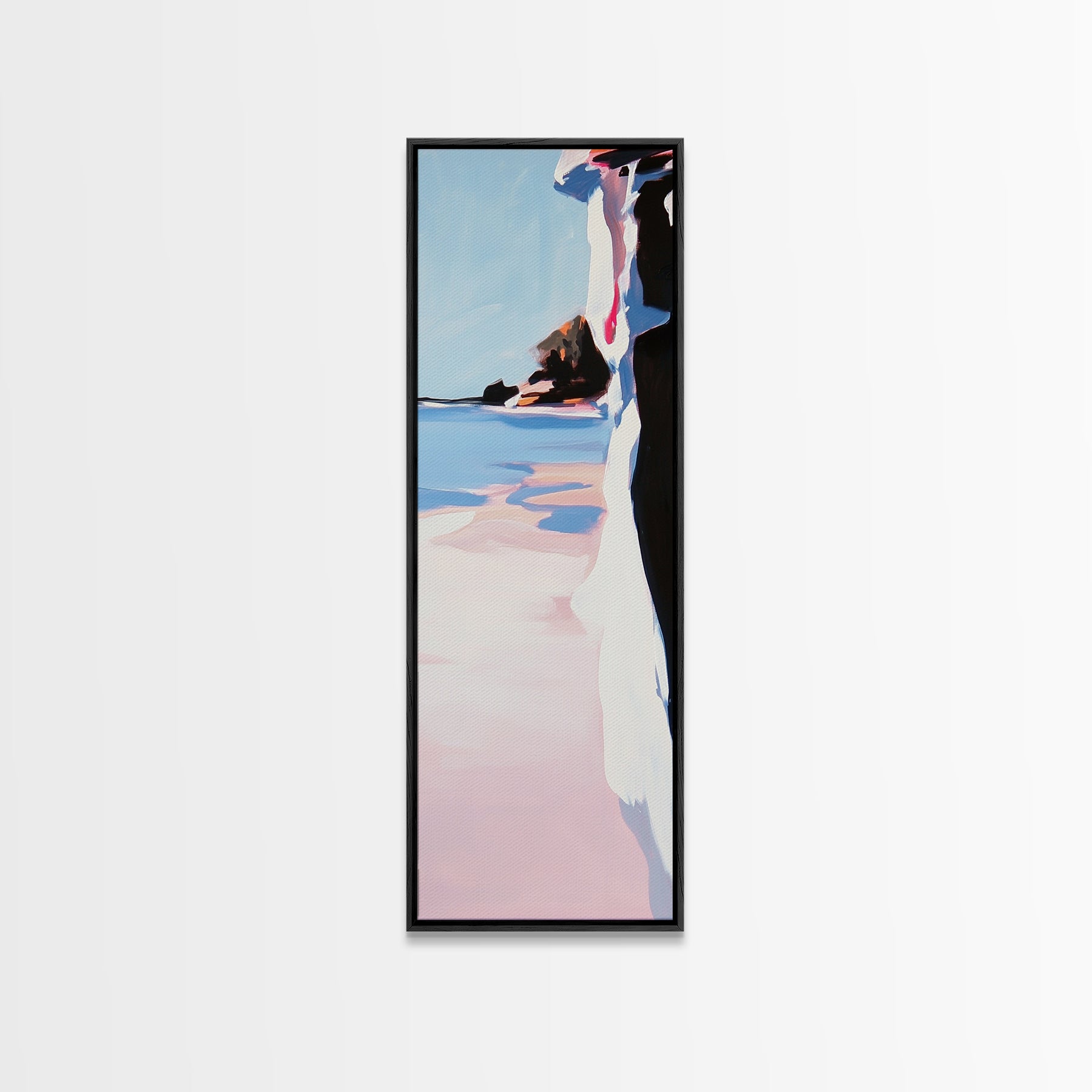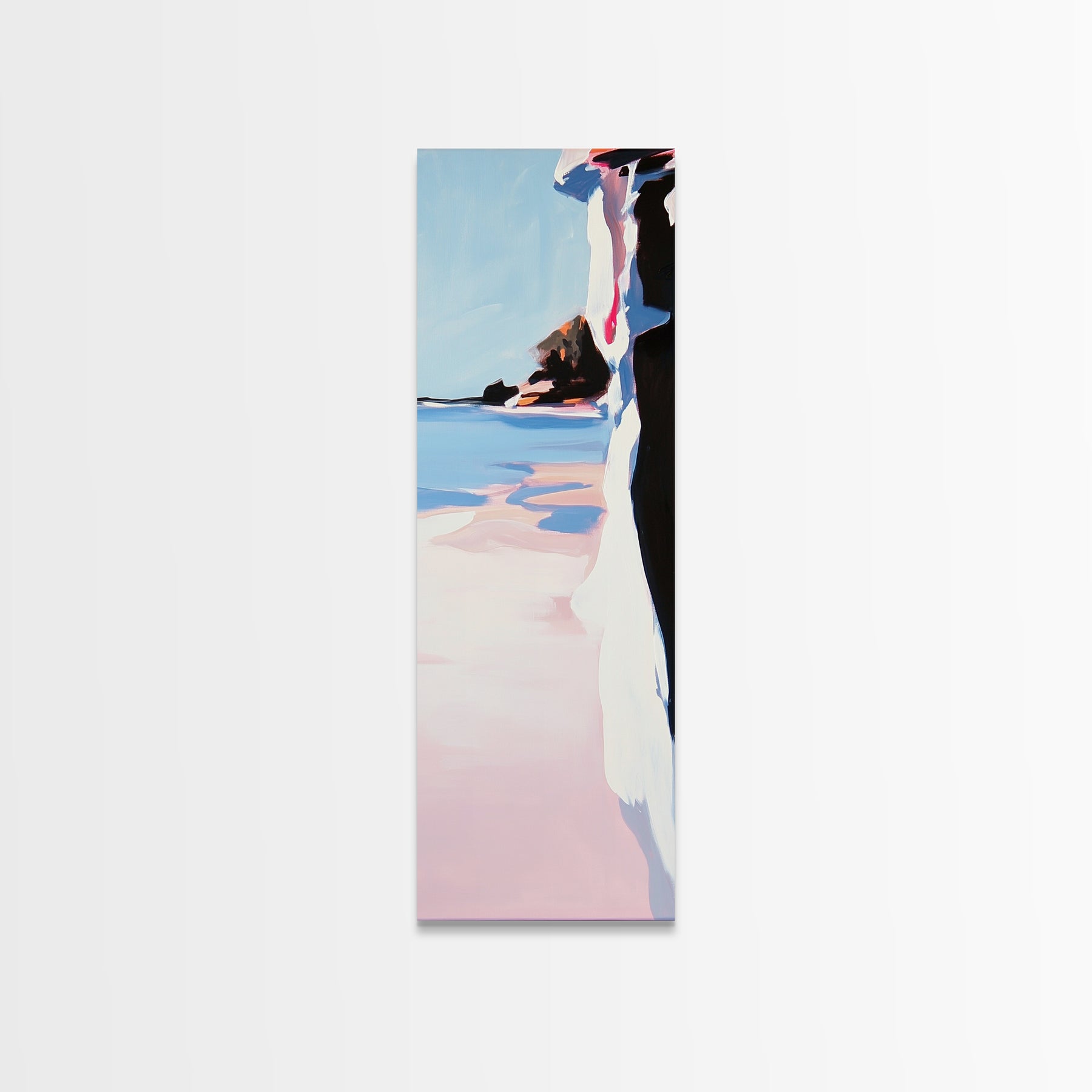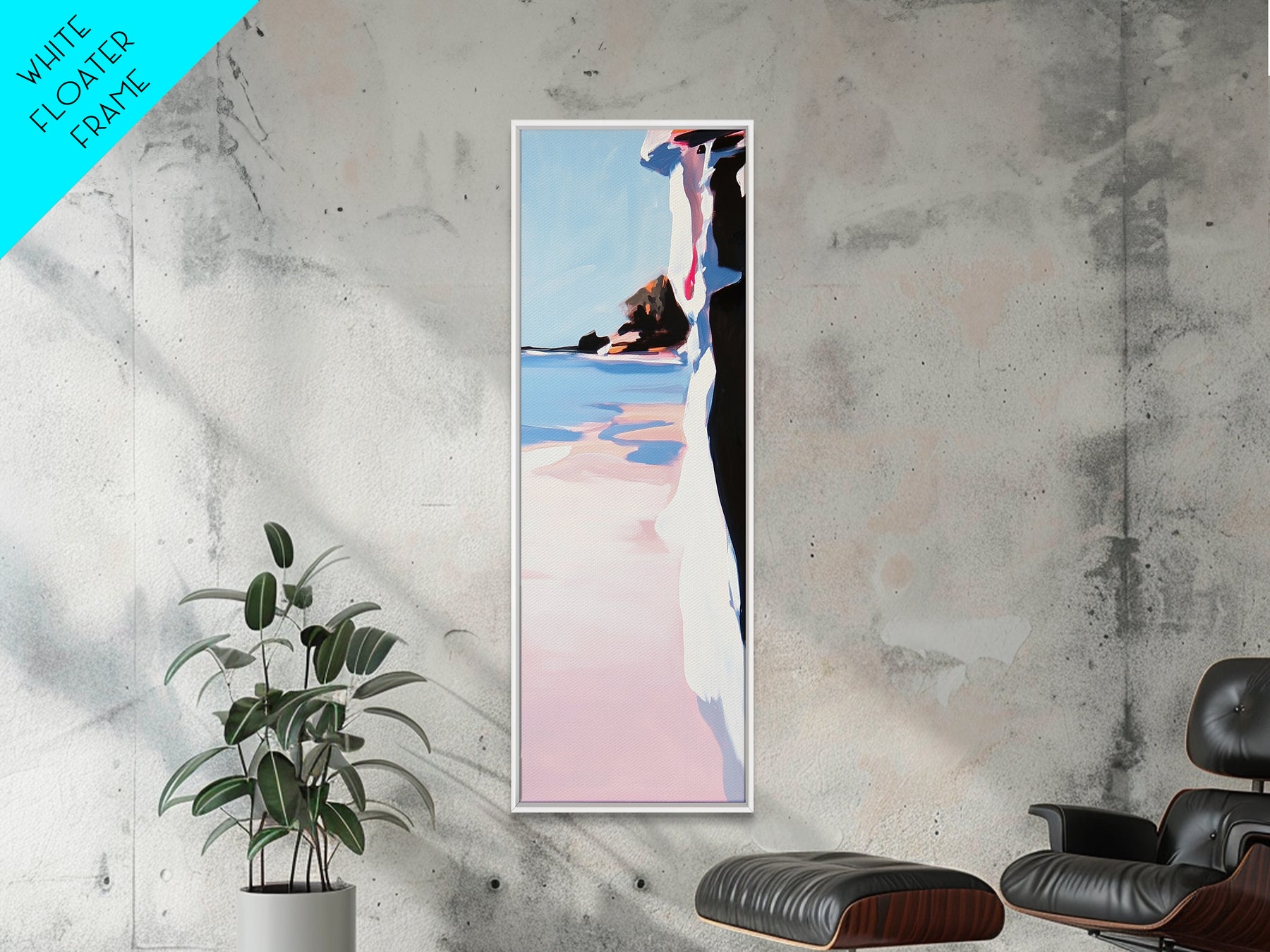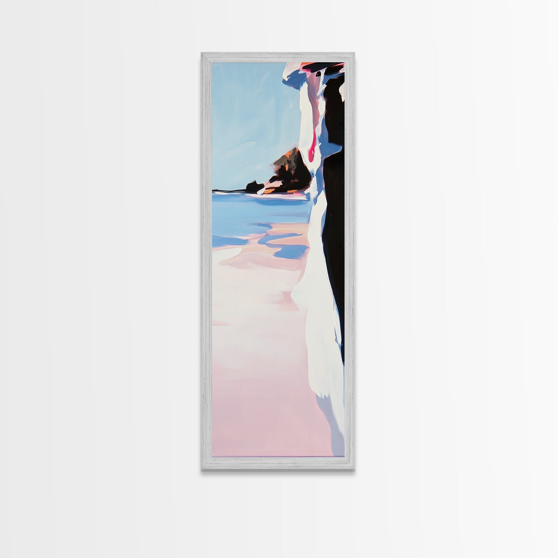 Cliffside Beach, Ocean View, Tranquil Seascape, Modern Coastal Decor, Nature-Inspired Art, Sunset Glow, Framed Canvas Print