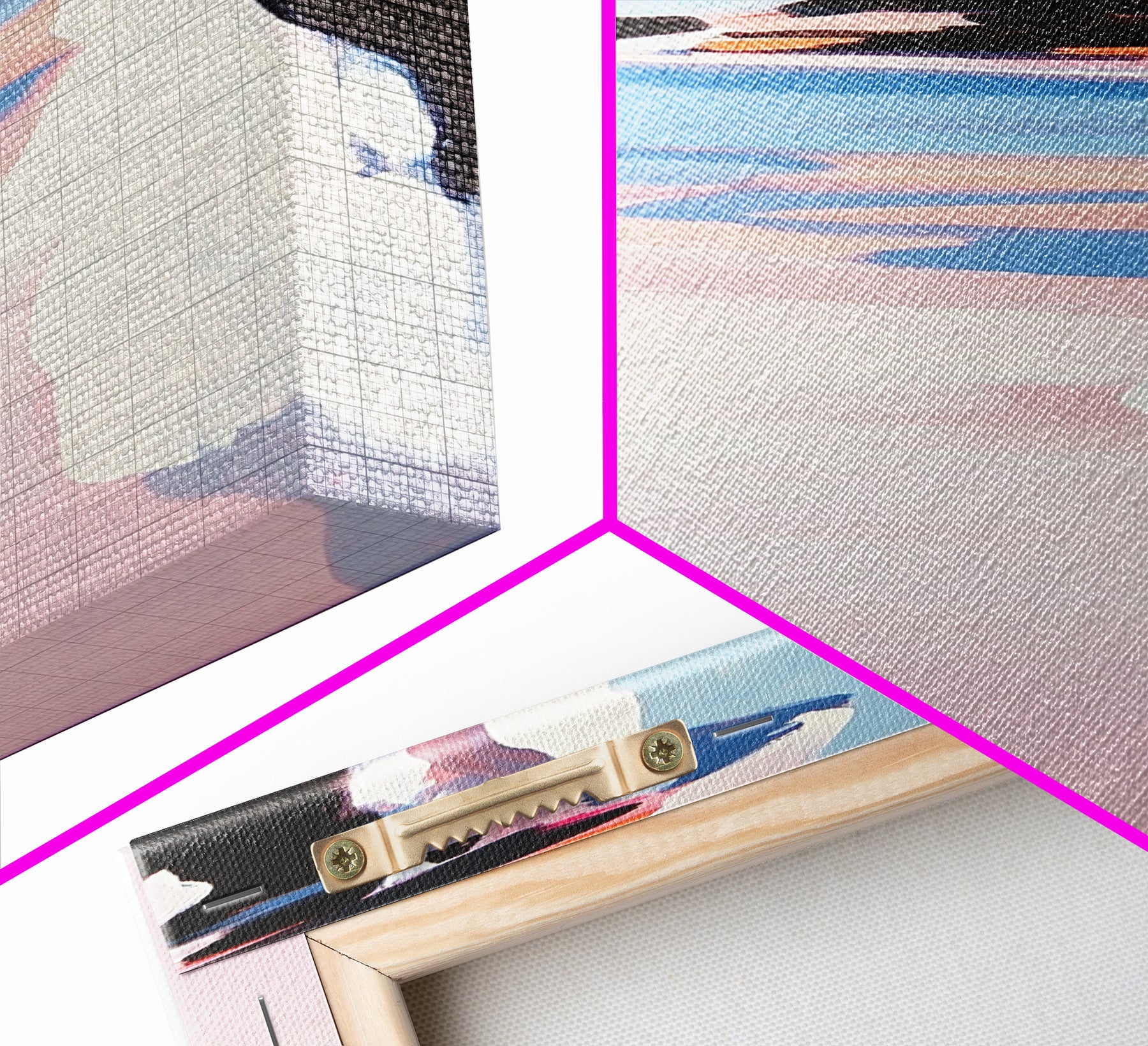 Hello and thank you for taking the time to view our modern high quality giclée artwork! We offer both posters and stretched canvas prints. Our posters are printed on Ultra Matte 60 lb / 230 GSM high quality photo paper, with a thickness of 10 mil. Our canvases are printed on museum grade 350 GSM canvas material with ECO friendly archival grade ink, then hand stretched and stapled over premium, FSC certified and shrink resistant frames. Designed and built to last a lifetime.