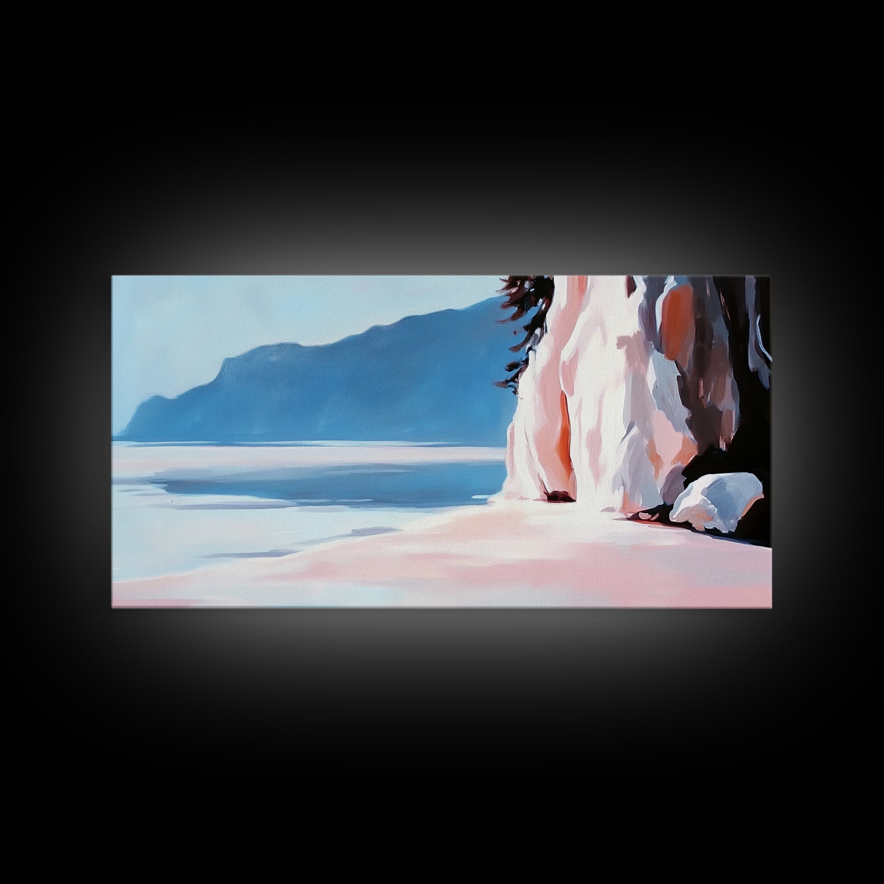 Cliffside Shoreline, Coastal Nature Print, Ocean Landscape Art, Scenic Beach Decor, Nautical Adventure Wall Art, Office Canvas Print