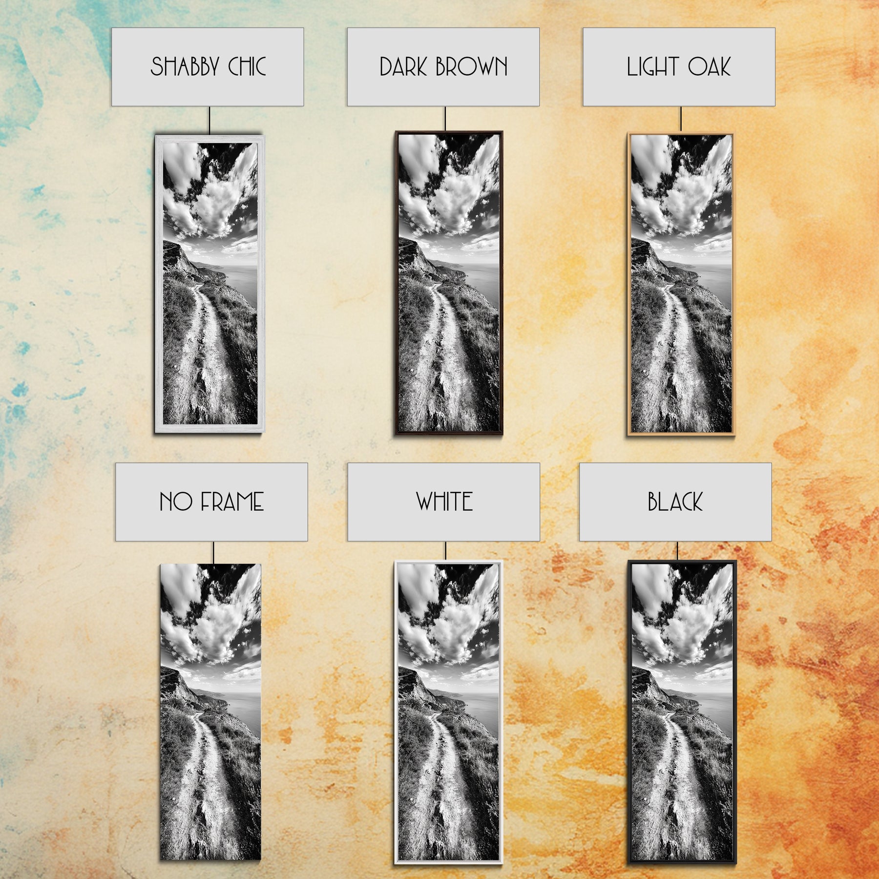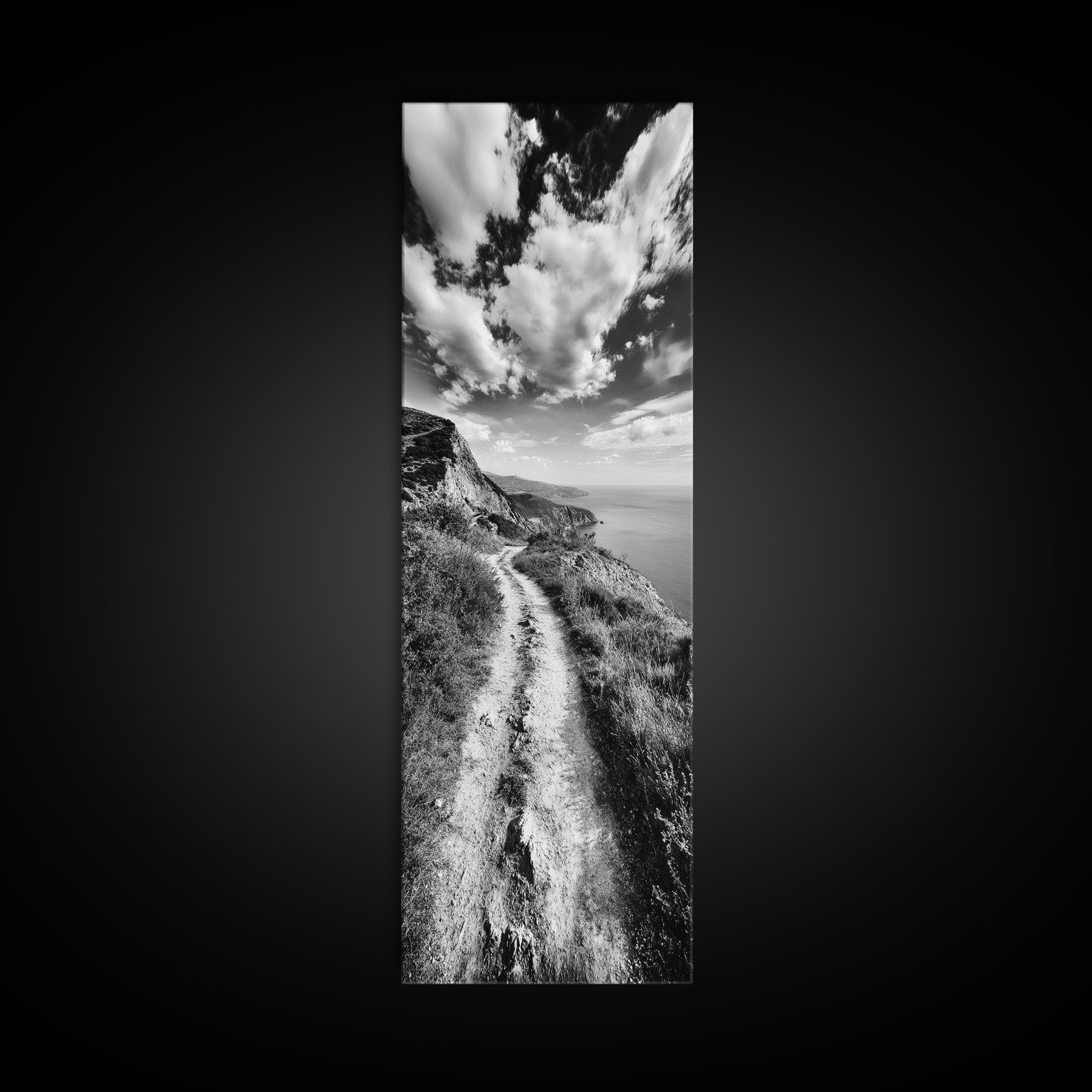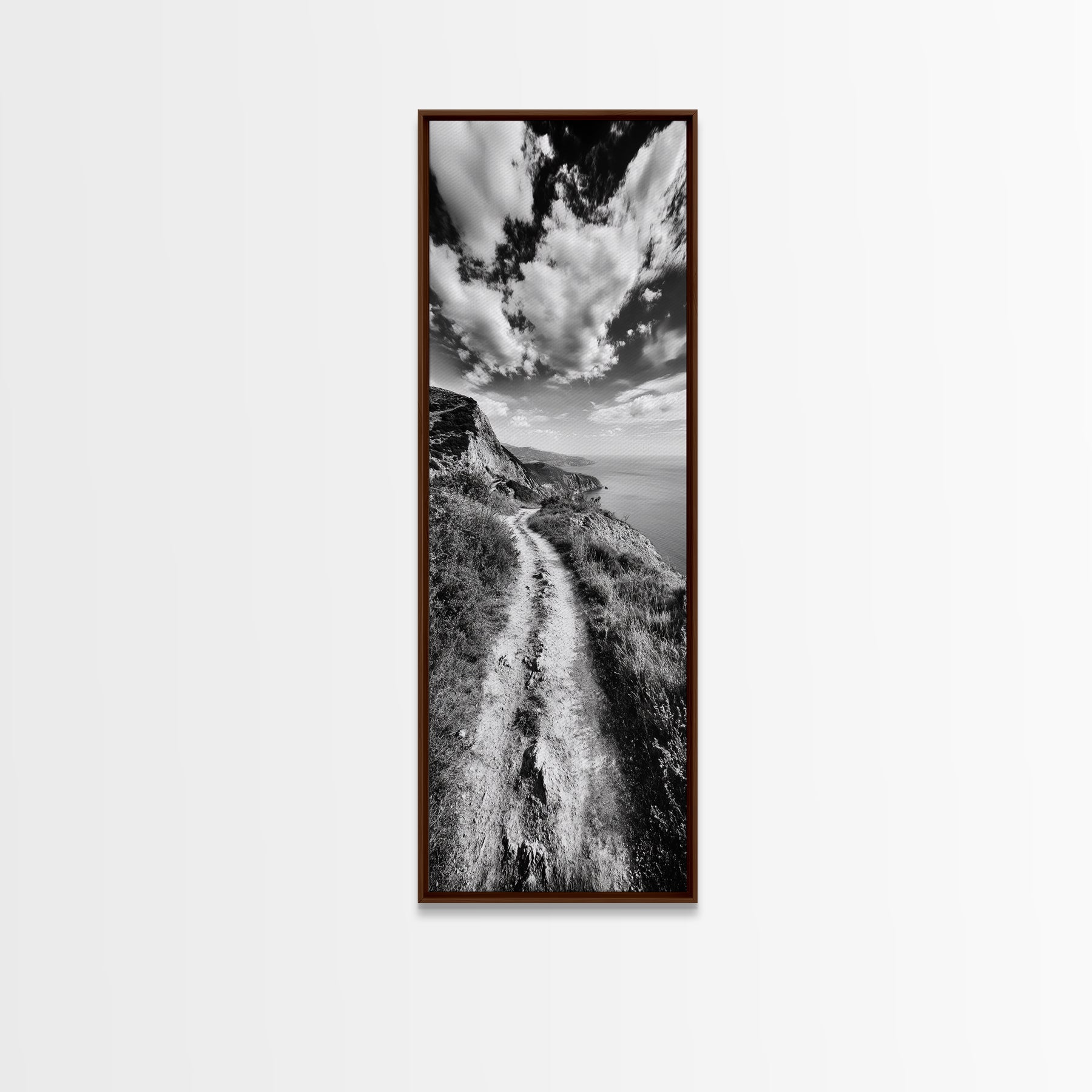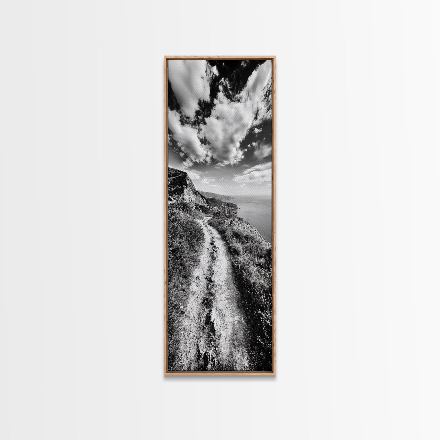 Cliffside Trail View, Path to Sea, Mountain Landscape, Framed Canvas Print, Wanderlust Decor, Office Wall Art, Adventure Travel Aesthetic