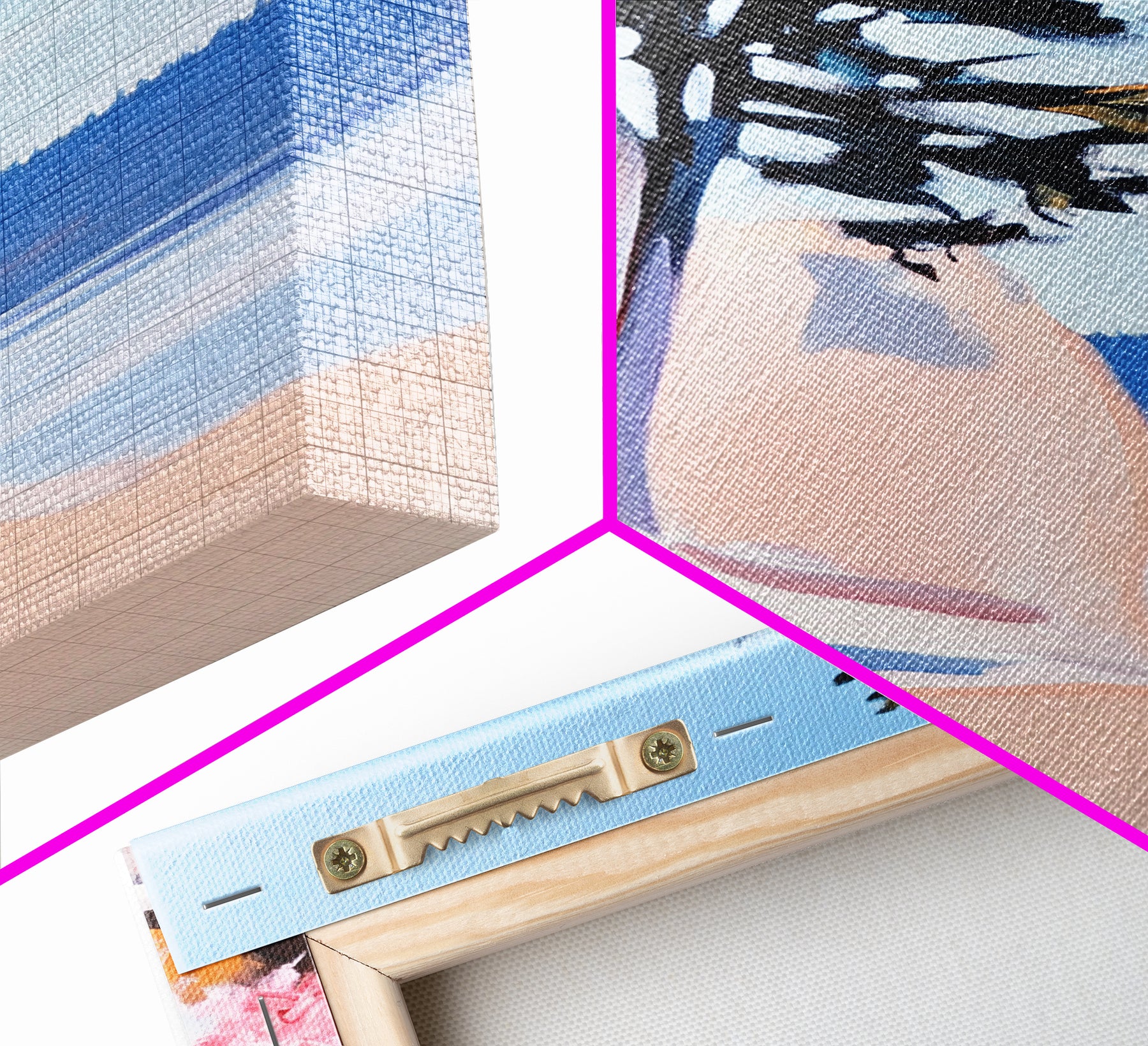 Hello and thank you for taking the time to view our modern high quality giclée artwork! We offer both posters and stretched canvas prints. Our posters are printed on Ultra Matte 60 lb / 230 GSM high quality photo paper, with a thickness of 10 mil. Our canvases are printed on museum grade 350 GSM canvas material with ECO friendly archival grade ink, then hand stretched and stapled over premium, FSC certified and shrink resistant frames. Designed and built to last a lifetime.