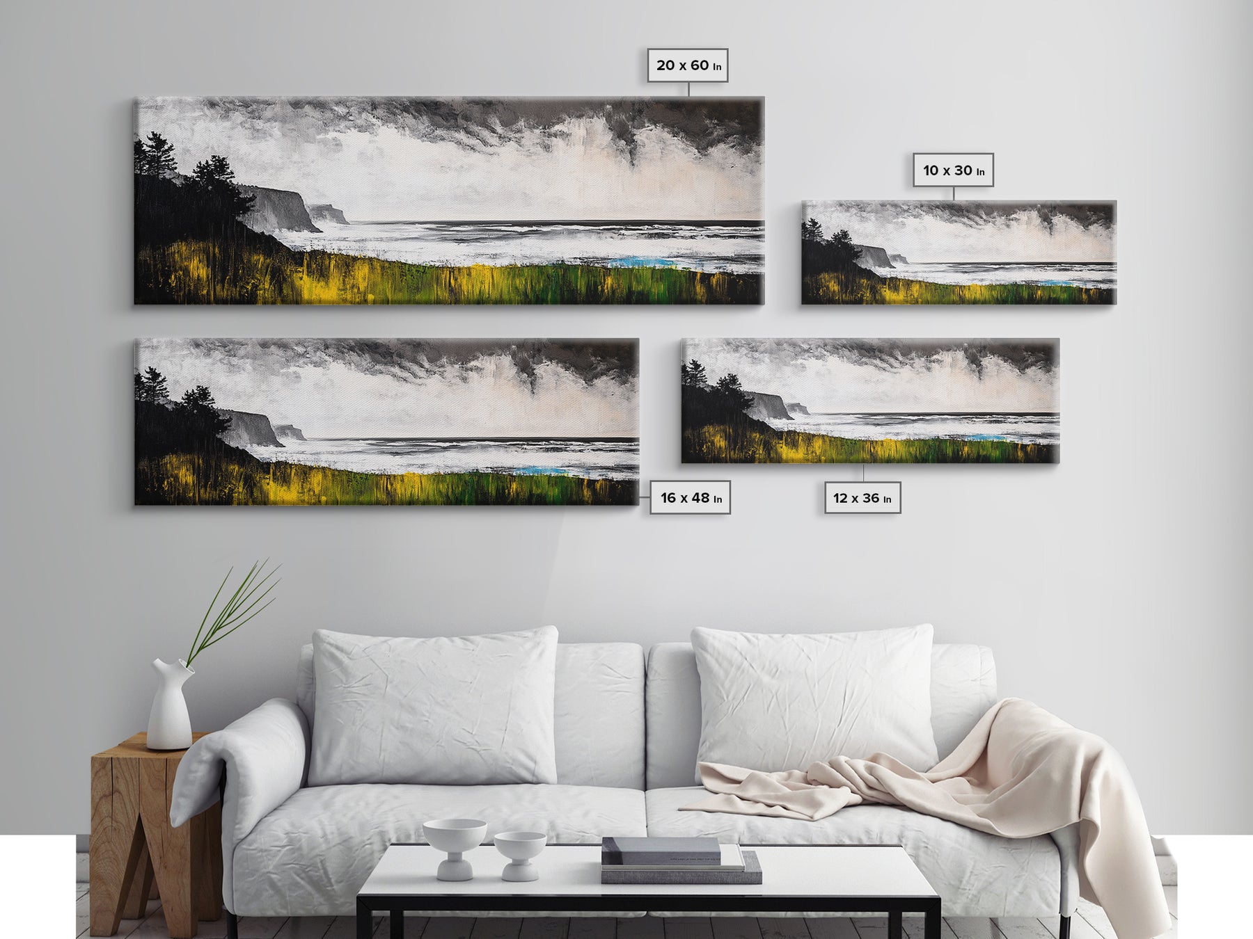 *Optional frames add a total of 1.5 inches to each dimension, for example a 10x20 canvas with a frame will be 11.5 by 21.5 inches total. All framed canvas are 1.5" total depth.
