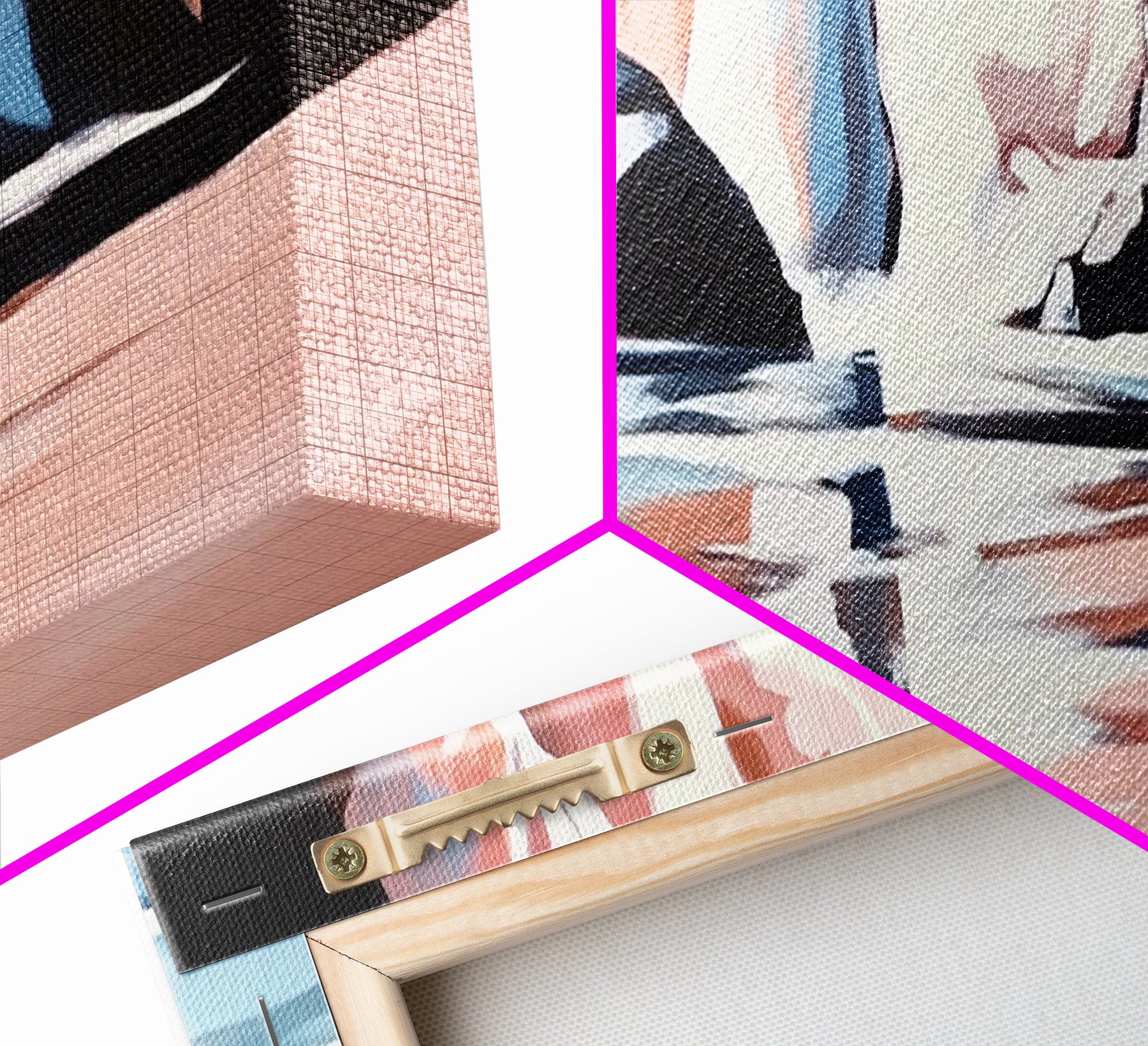 Hello and thank you for taking the time to view our modern high quality giclée artwork! We offer both posters and stretched canvas prints. Our posters are printed on Ultra Matte 60 lb / 230 GSM high quality photo paper, with a thickness of 10 mil. Our canvases are printed on museum grade 350 GSM canvas material with ECO friendly archival grade ink, then hand stretched and stapled over premium, FSC certified and shrink resistant frames. Designed and built to last a lifetime.