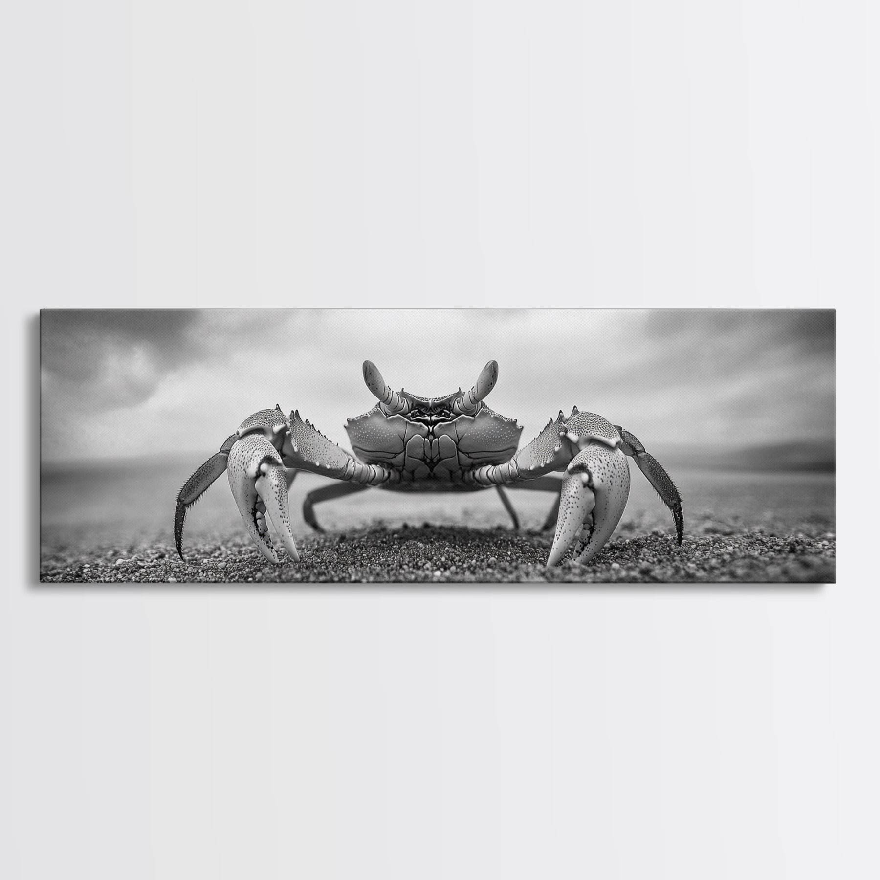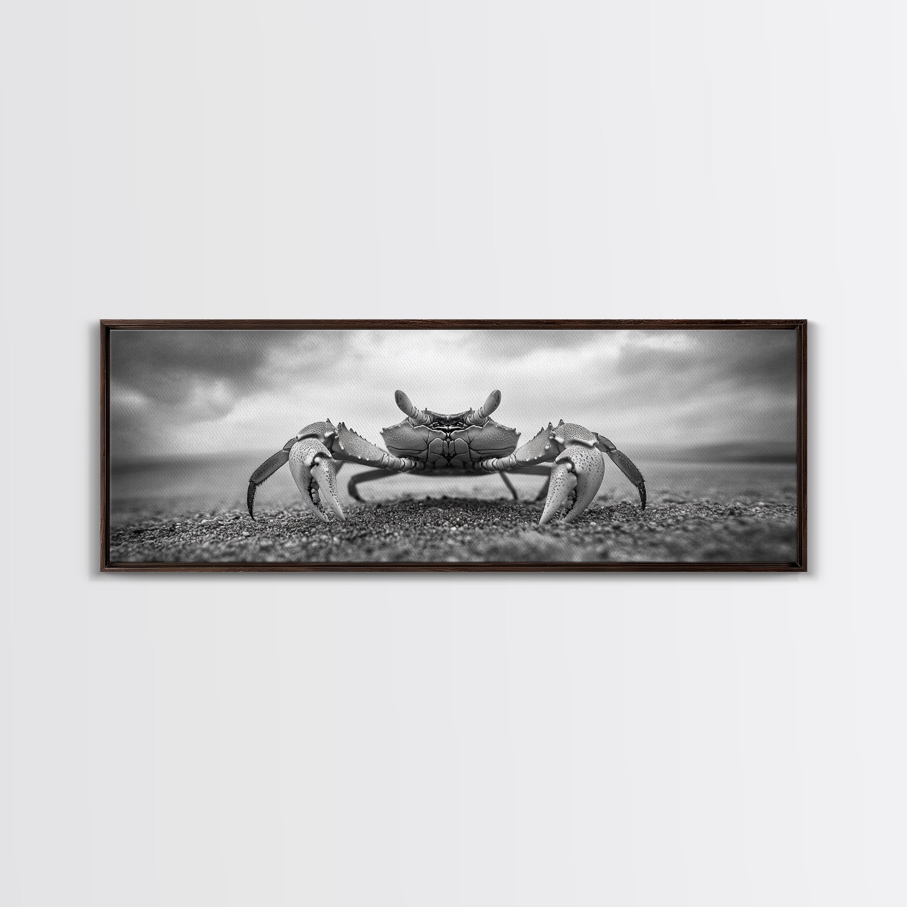 Closeup Crab, Coastal Creature, Dramatic Sand, Framed Canvas Print, Beach Wall Art, Nautical Bathroom Decor, Ocean Nature Photo