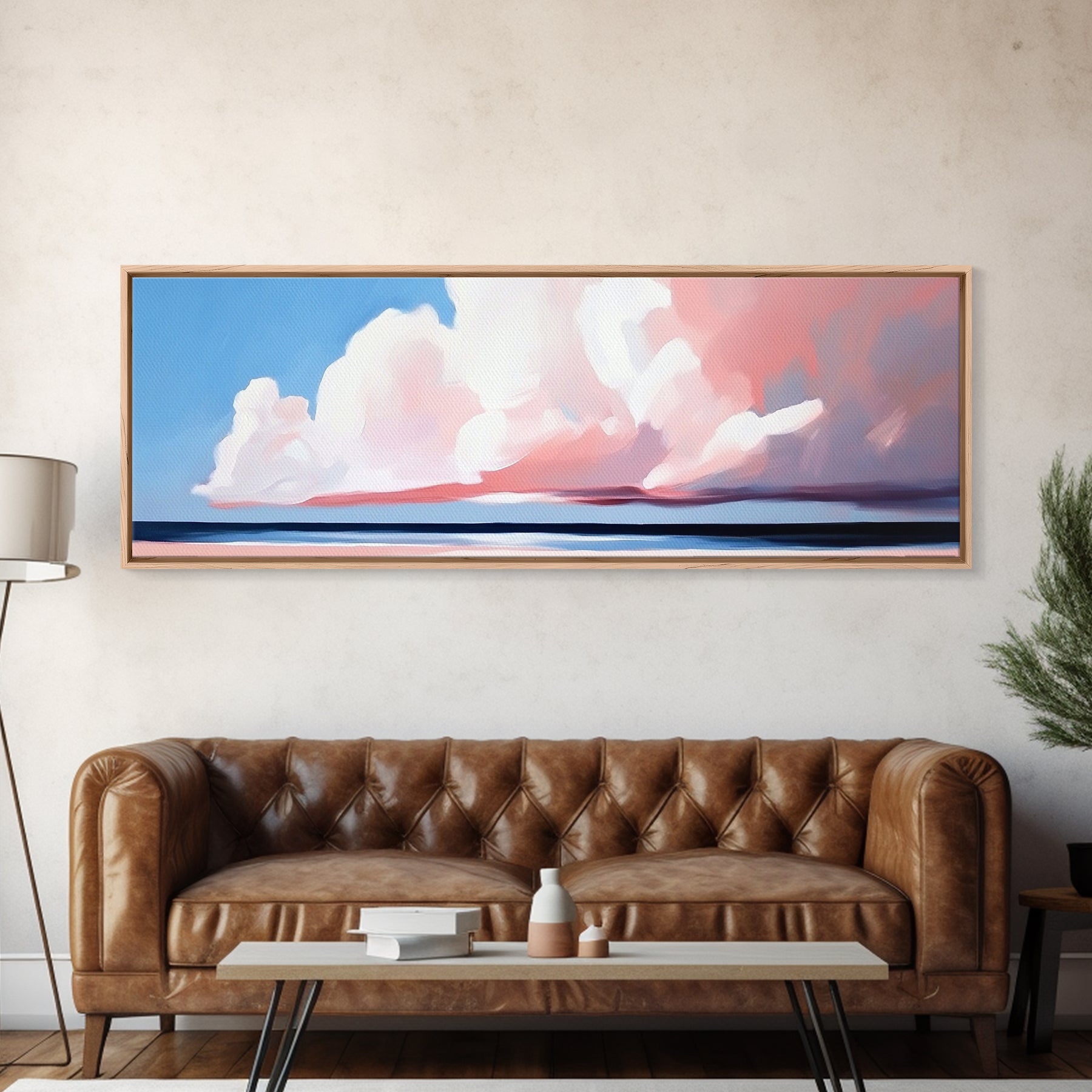 Cloudy Horizon, Sunset Beach, Pastel Sky, Canvas Print, Modern Seascape, Relaxing Coastal Wall Art, Dreamy Ocean Decor, Minimalist