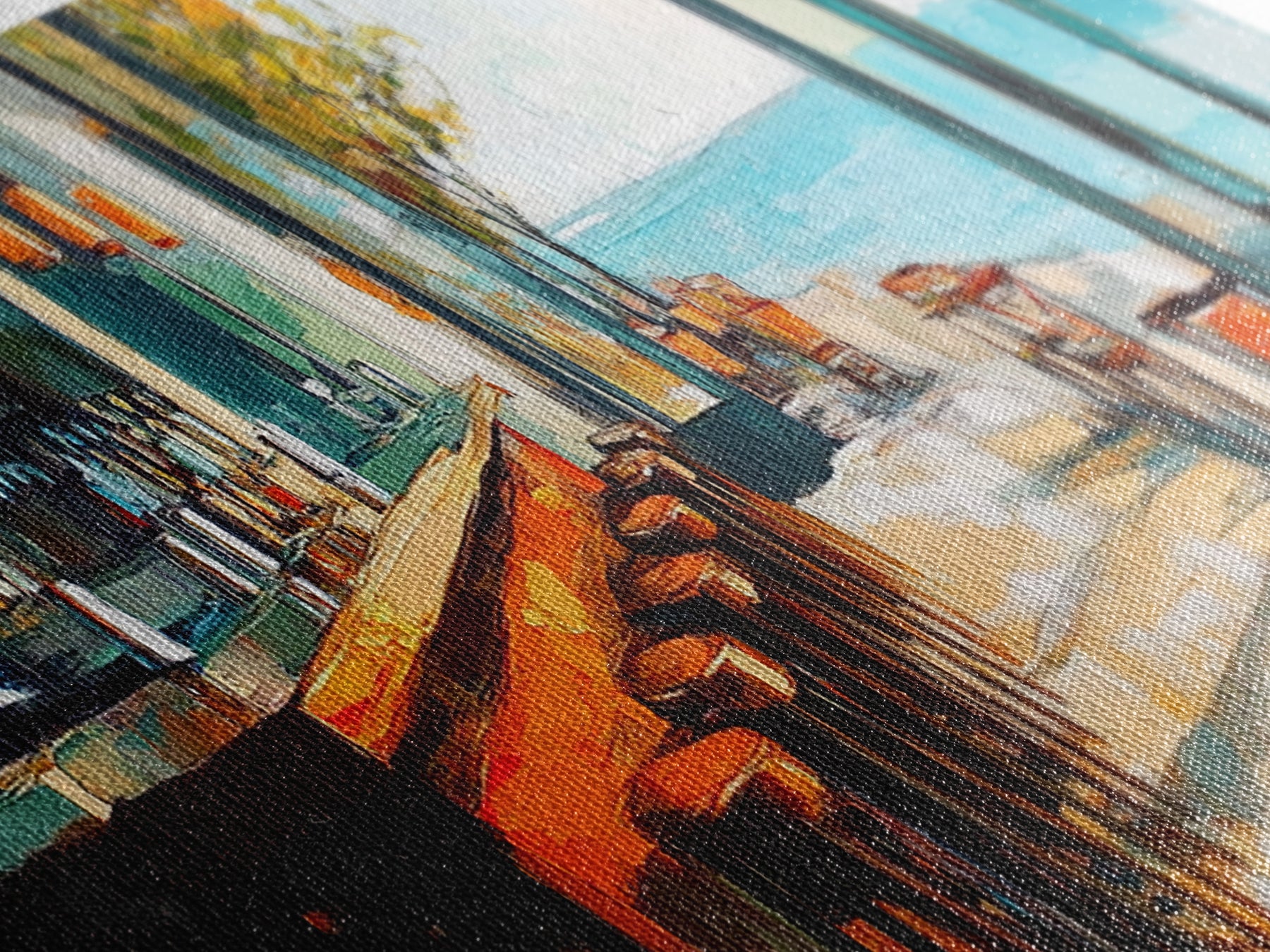 Most of our canvases are made in the USA, with the exception of canvases ordered with the light oak unstained frames, and any large canvases (24x48, 30x60, 16x48 and 20x60) ordered WITH a frame. These are temporarily made in and shipped from Europe, while we try to find a more consistent supplier in the USA.