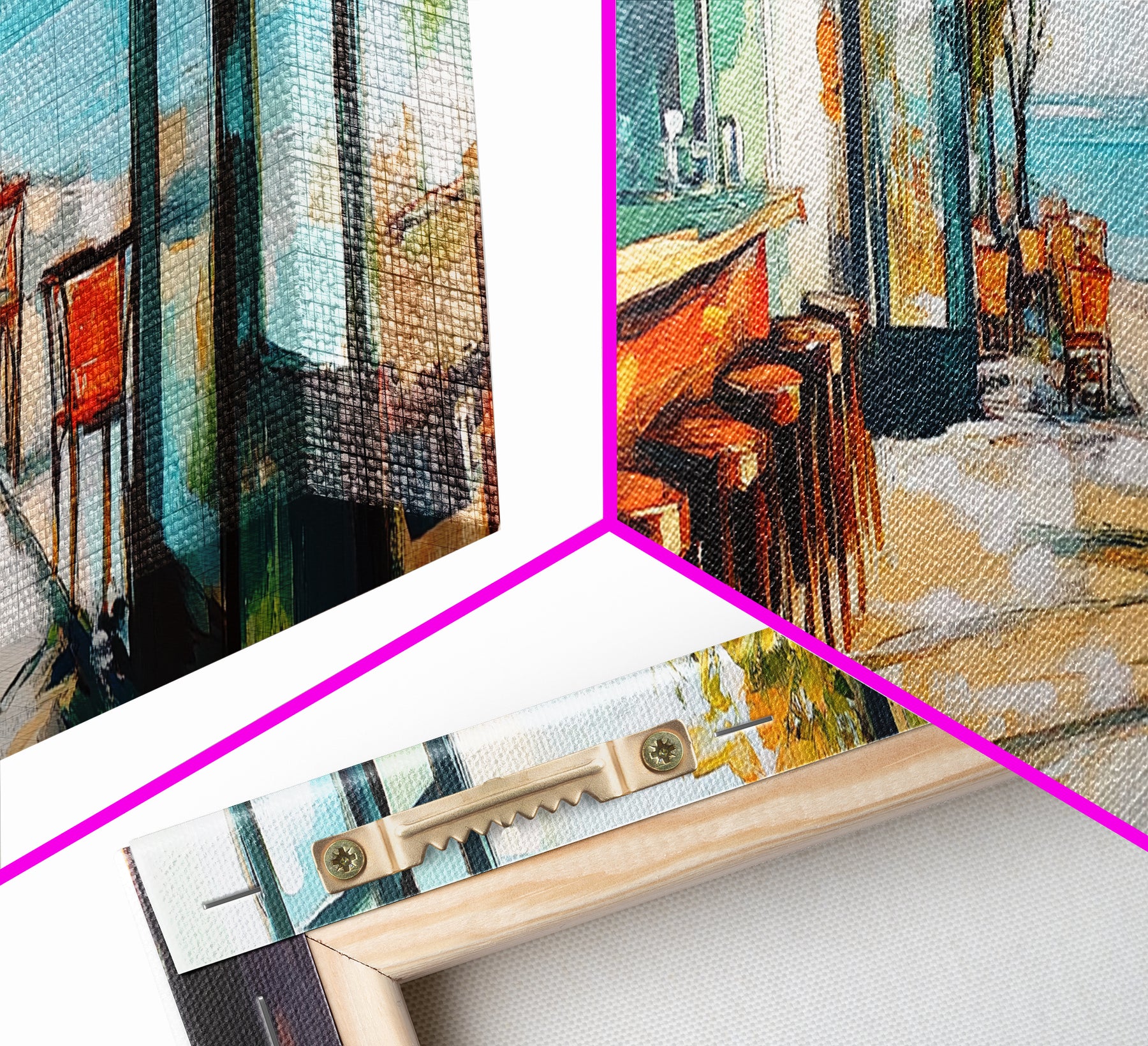 Coastal Beach Bar Framed Canvas Print Modern Seaside Cafe Painting, Coastal Kitchen Wall Art, Tropical Decor, Ocean View Artwork