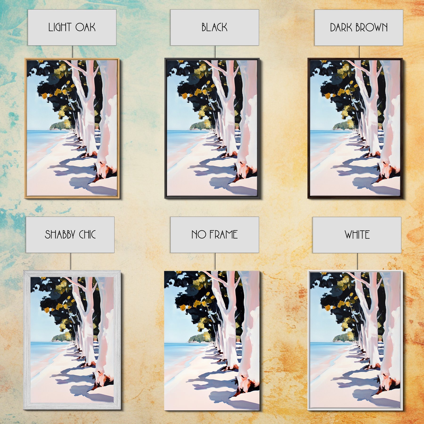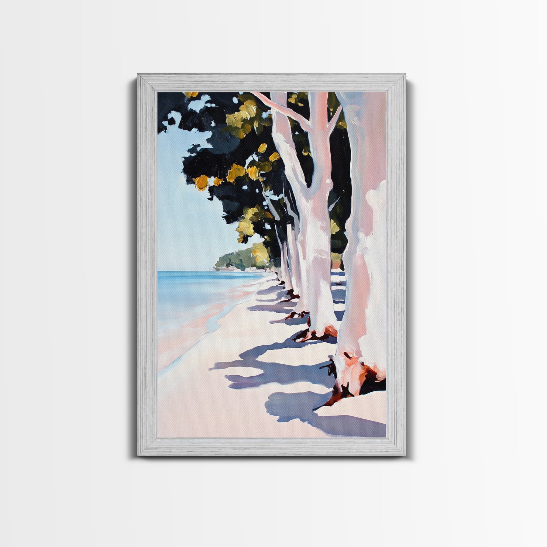Coastal, Beach Path, Tree Lined, Framed Canvas Print, Ocean View Wall Art, Relaxing Home Decor, Seaside Landscape, Nautical Aesthetic