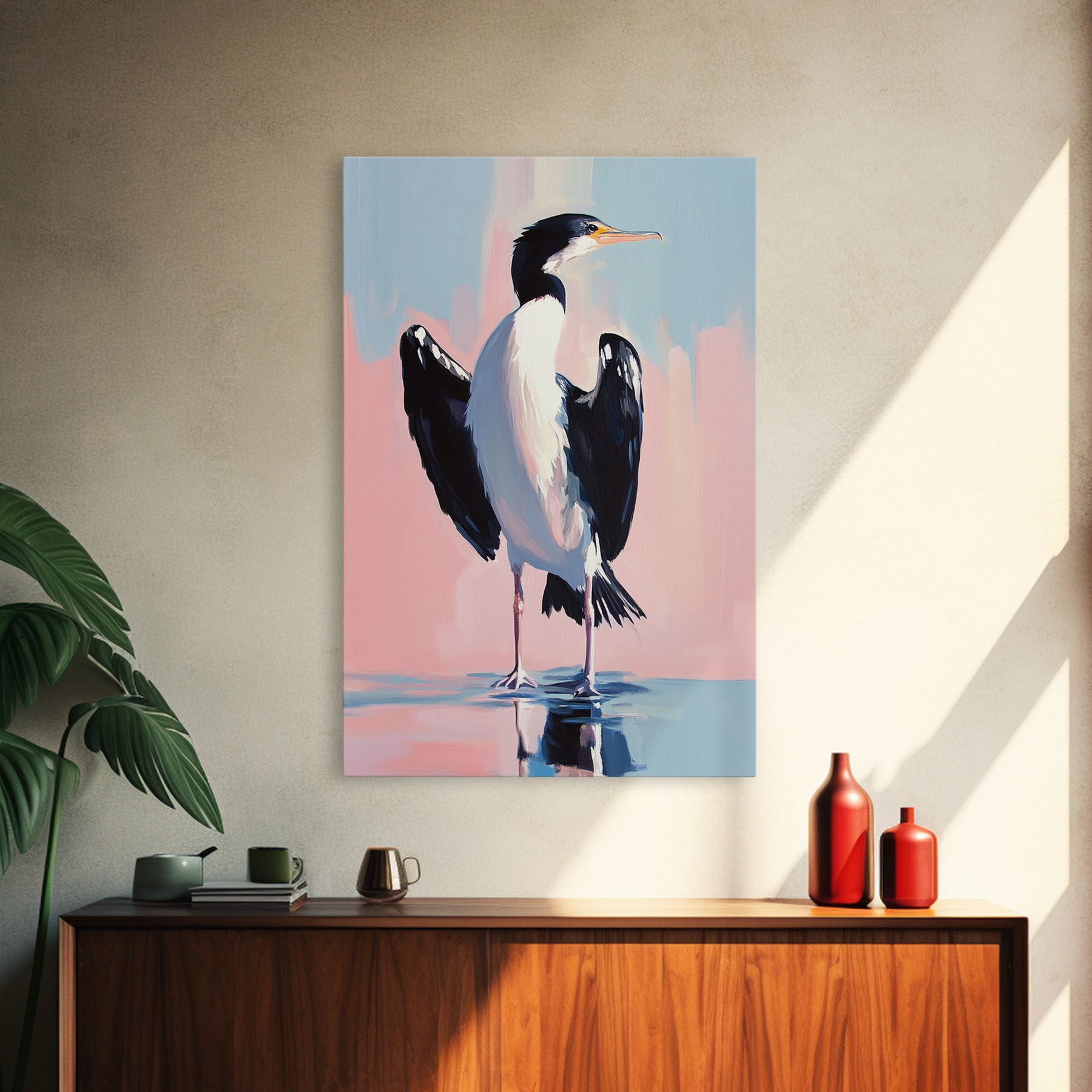 Coastal Bird Art, Modern Seabird Painting, Pastel Beach Decor, Contemporary Animal Print, Framed Canvas Print, Living Room Wall Art