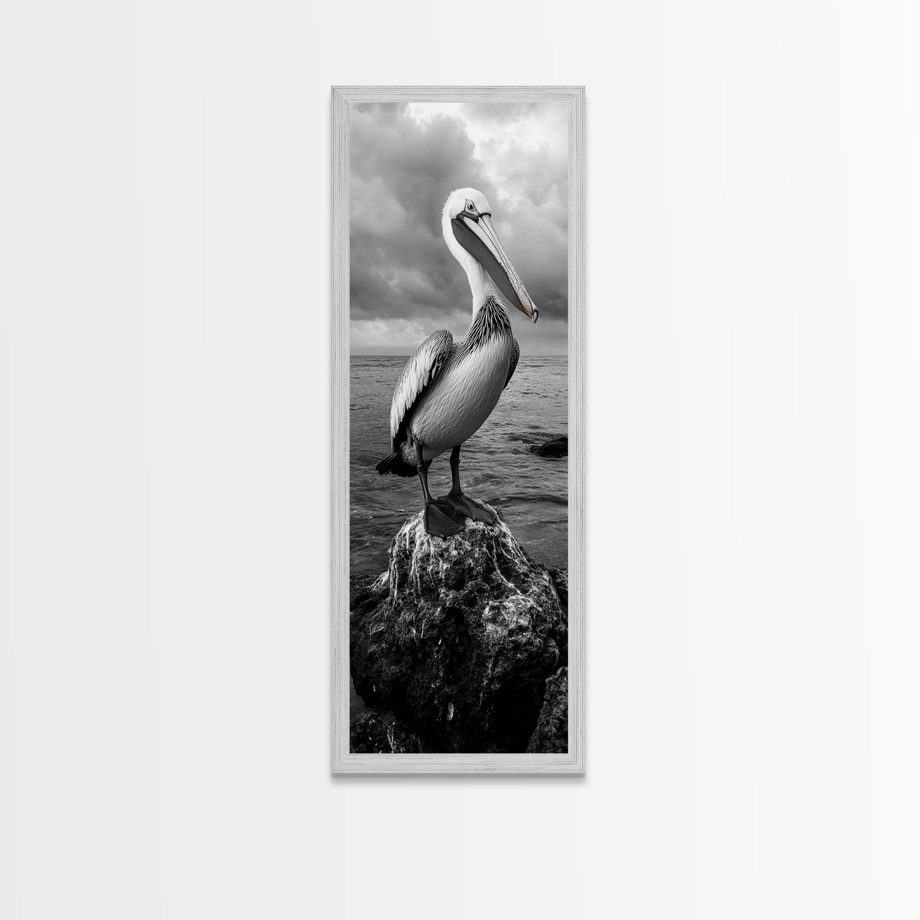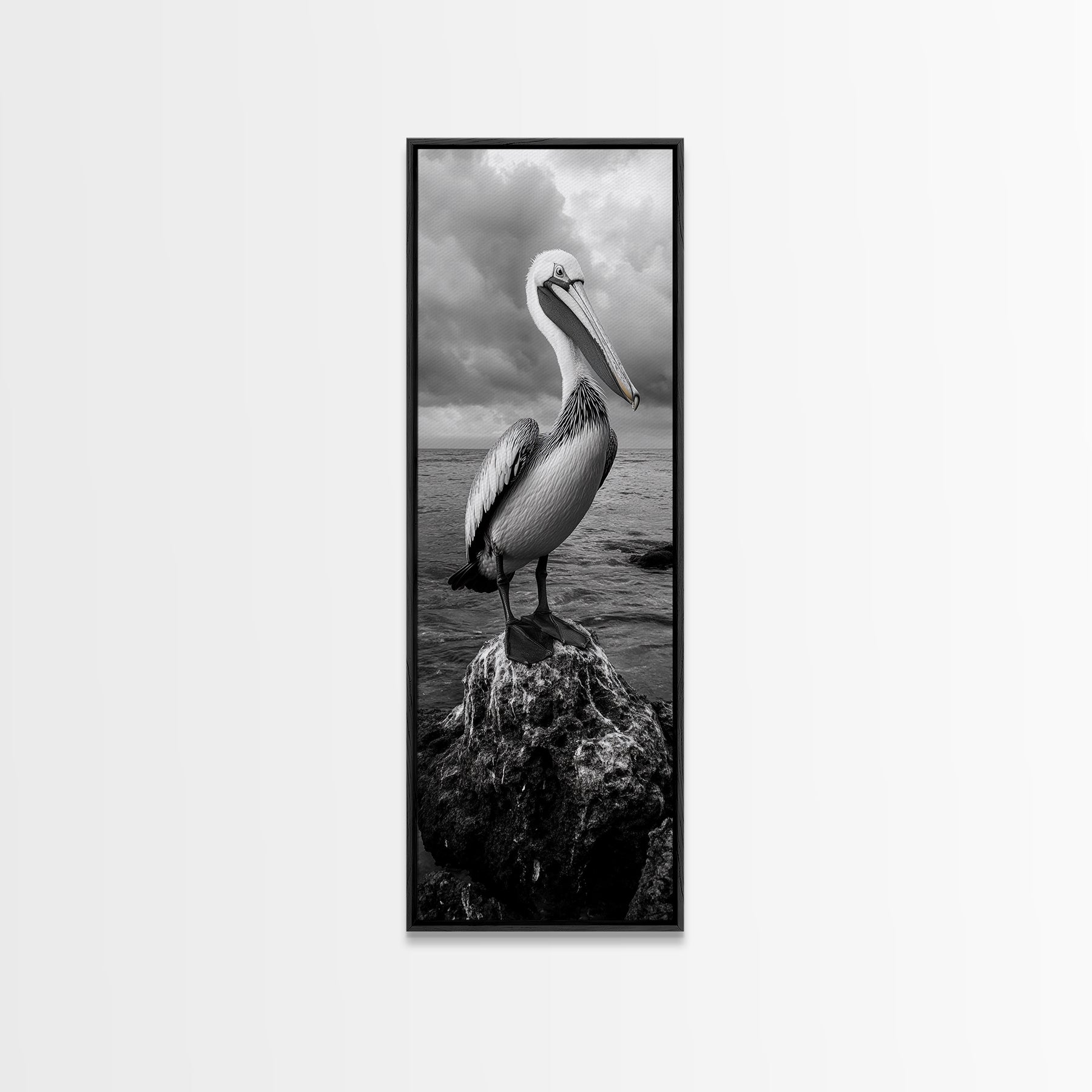 Coastal Bird Portrait, Ocean Wildlife, Nature Decor, Minimalist Art, Framed Canvas Print, Beach House Bathroom Wall Art, Living Room Art
