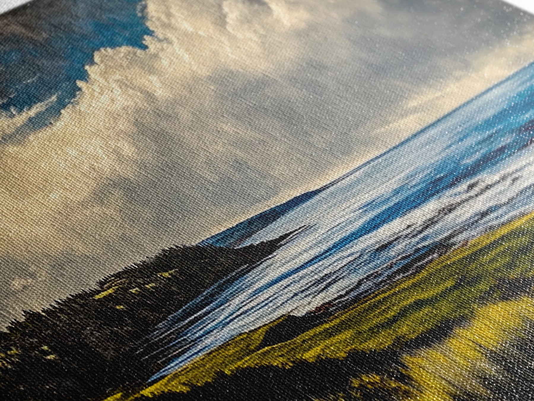 Most of our canvases are made in the USA, with the exception of canvases ordered with the light oak unstained frames, and any large canvases (24x48, 30x60, 16x48 and 20x60) ordered WITH a frame. These are temporarily made in and shipped from Europe, while we try to find a more consistent supplier in the USA.