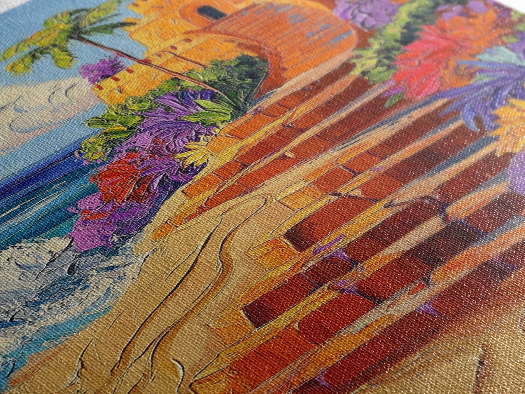 Most of our canvases are made in the USA, with the exception of canvases ordered with the light oak unstained frames, and any large canvases (24x48, 30x60, 16x48 and 20x60) ordered WITH a frame. These are temporarily made in and shipped from Europe, while we try to find a more consistent supplier in the USA.