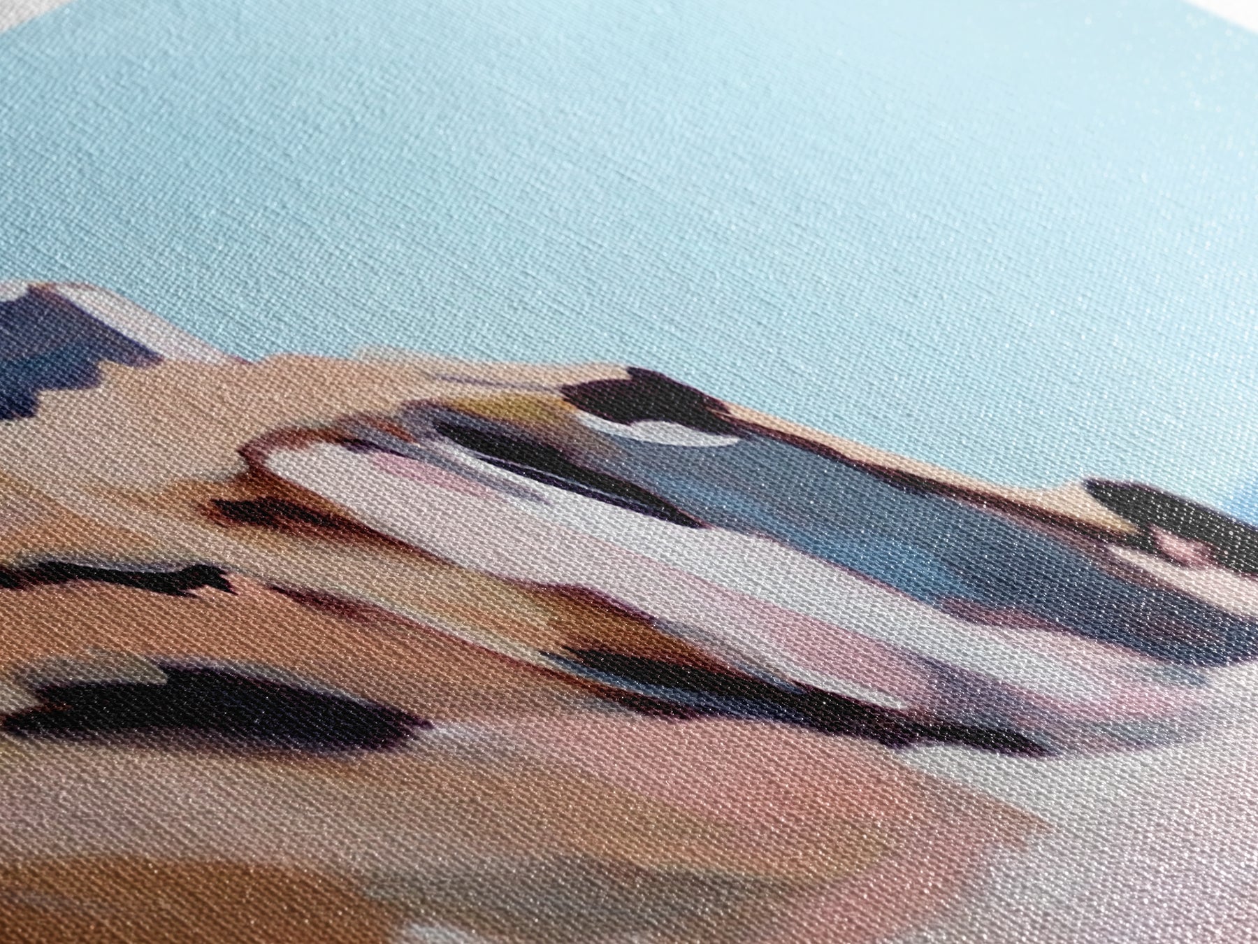 Most of our canvases are made in the USA, with the exception of canvases ordered with the light oak unstained frames, and any large canvases (24x48, 30x60, 16x48 and 20x60) ordered WITH a frame. These are temporarily made in and shipped from Europe, while we try to find a more consistent supplier in the USA.