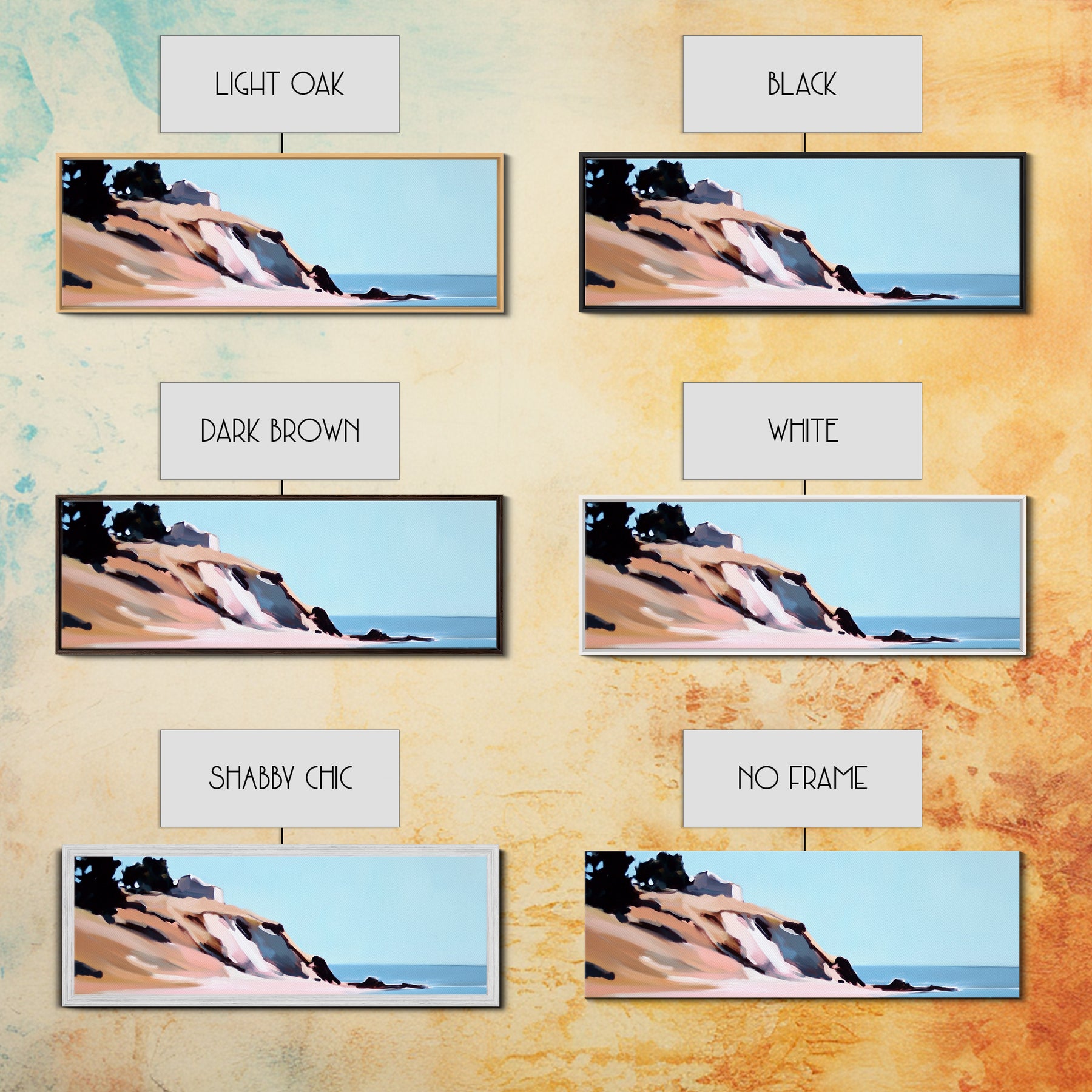 *Optional frames add a total of 1.5 inches to each dimension, for example a 10x20 canvas with a frame will be 11.5 by 21.5 inches total. All framed canvas are 1.5" total depth.