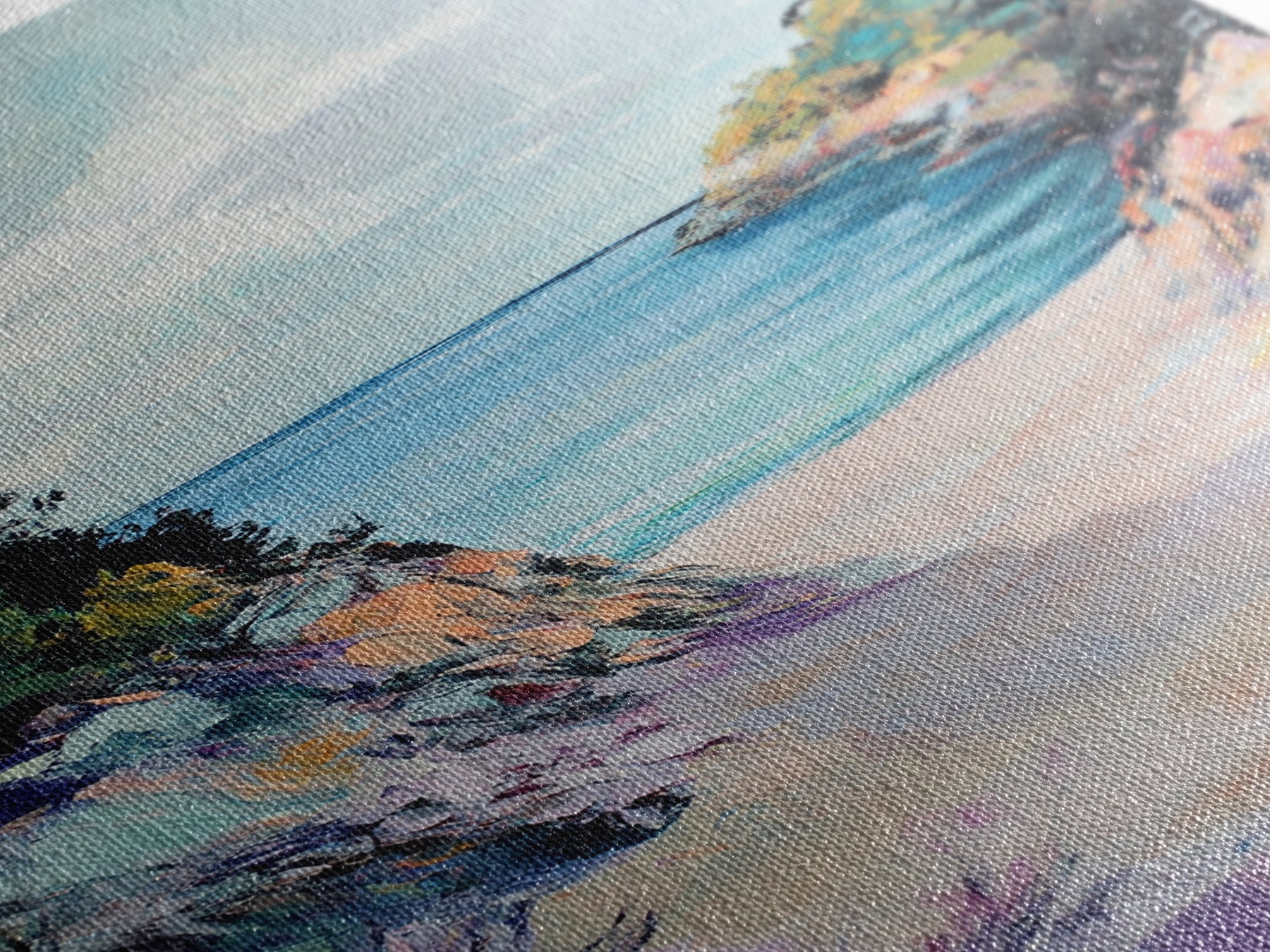 Most of our canvases are made in the USA, with the exception of canvases ordered with the light oak unstained frames, and any large canvases (24x48, 30x60, 16x48 and 20x60) ordered WITH a frame. These are temporarily made in and shipped from Europe, while we try to find a more consistent supplier in the USA.