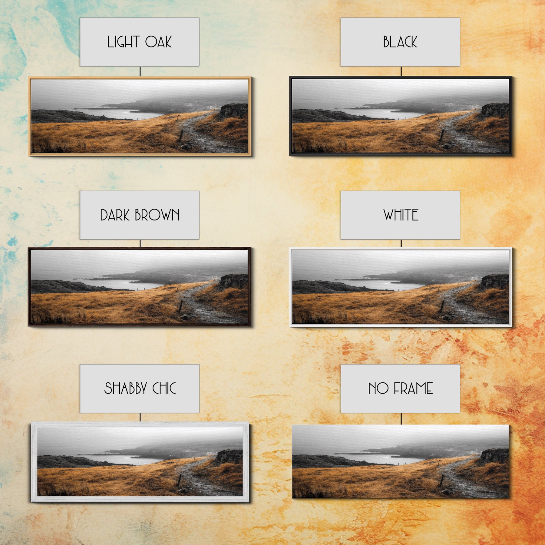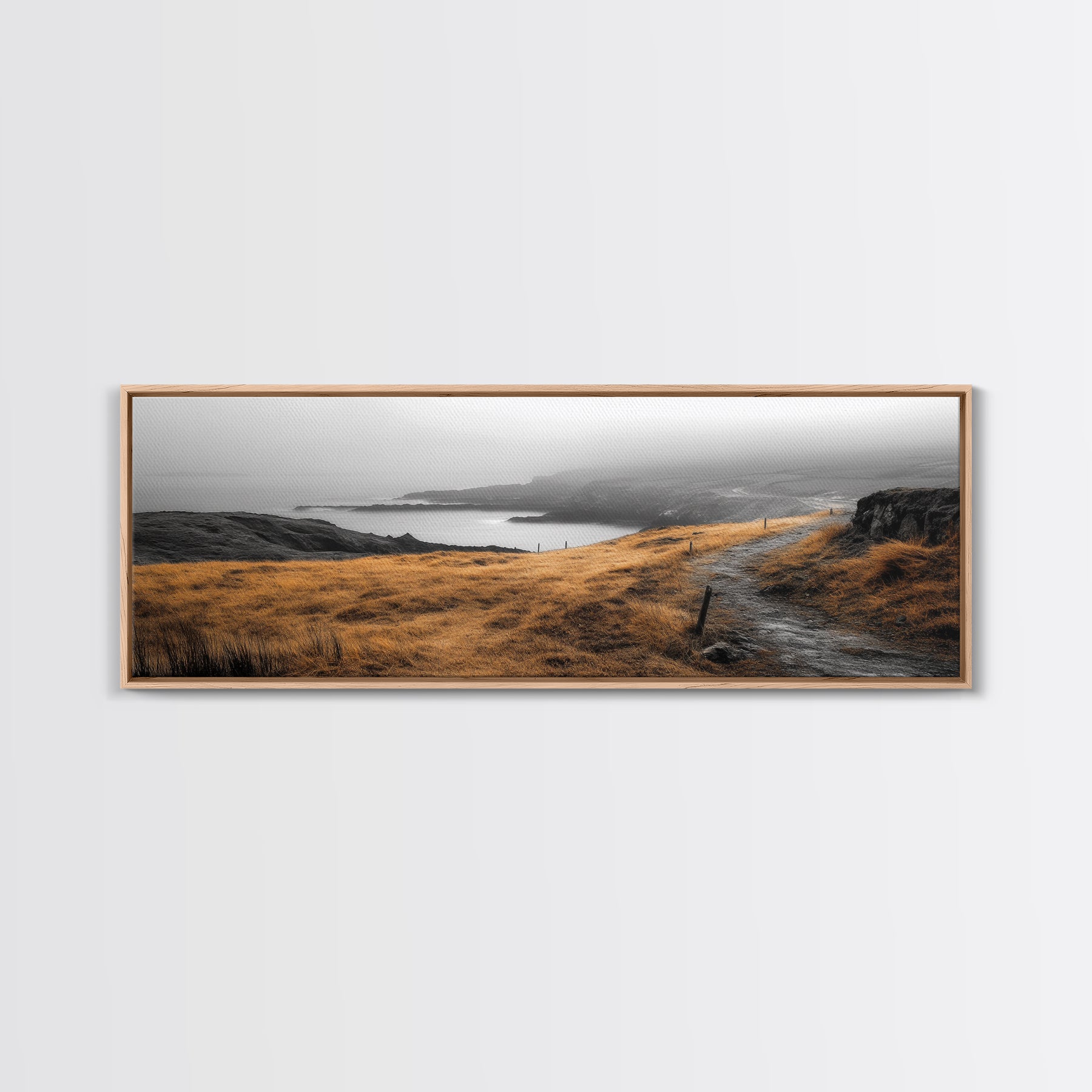 Coastal Cliff Path, Golden Grasses by Sea, Canvas Print, Autumn Hiking Scene, Misty Nature Wall Art, Hallway Landscape Photography