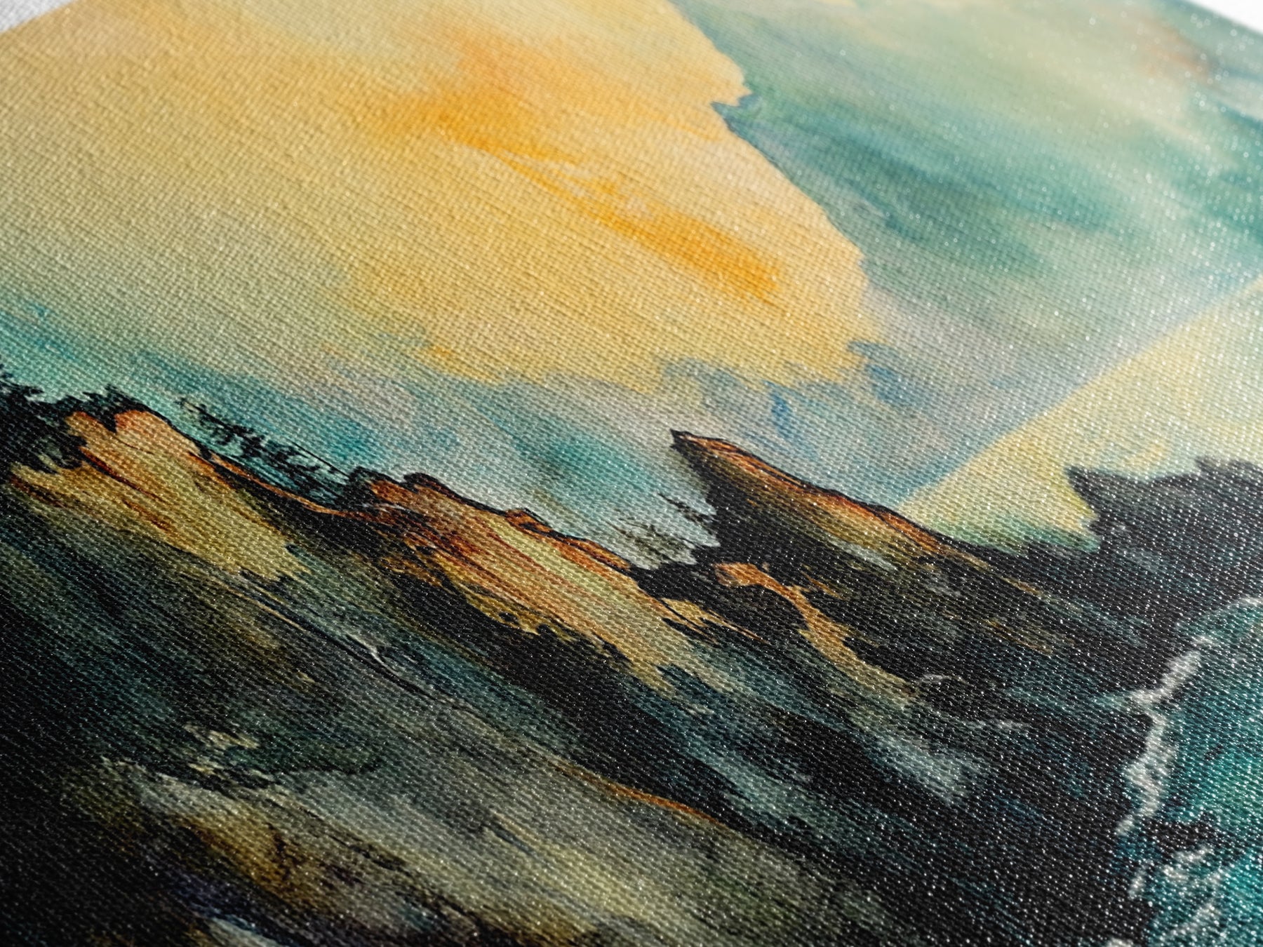 Most of our canvases are made in the USA, with the exception of canvases ordered with the light oak unstained frames, and any large canvases (24x48, 30x60, 16x48 and 20x60) ordered WITH a frame. These are temporarily made in and shipped from Europe, while we try to find a more consistent supplier in the USA.