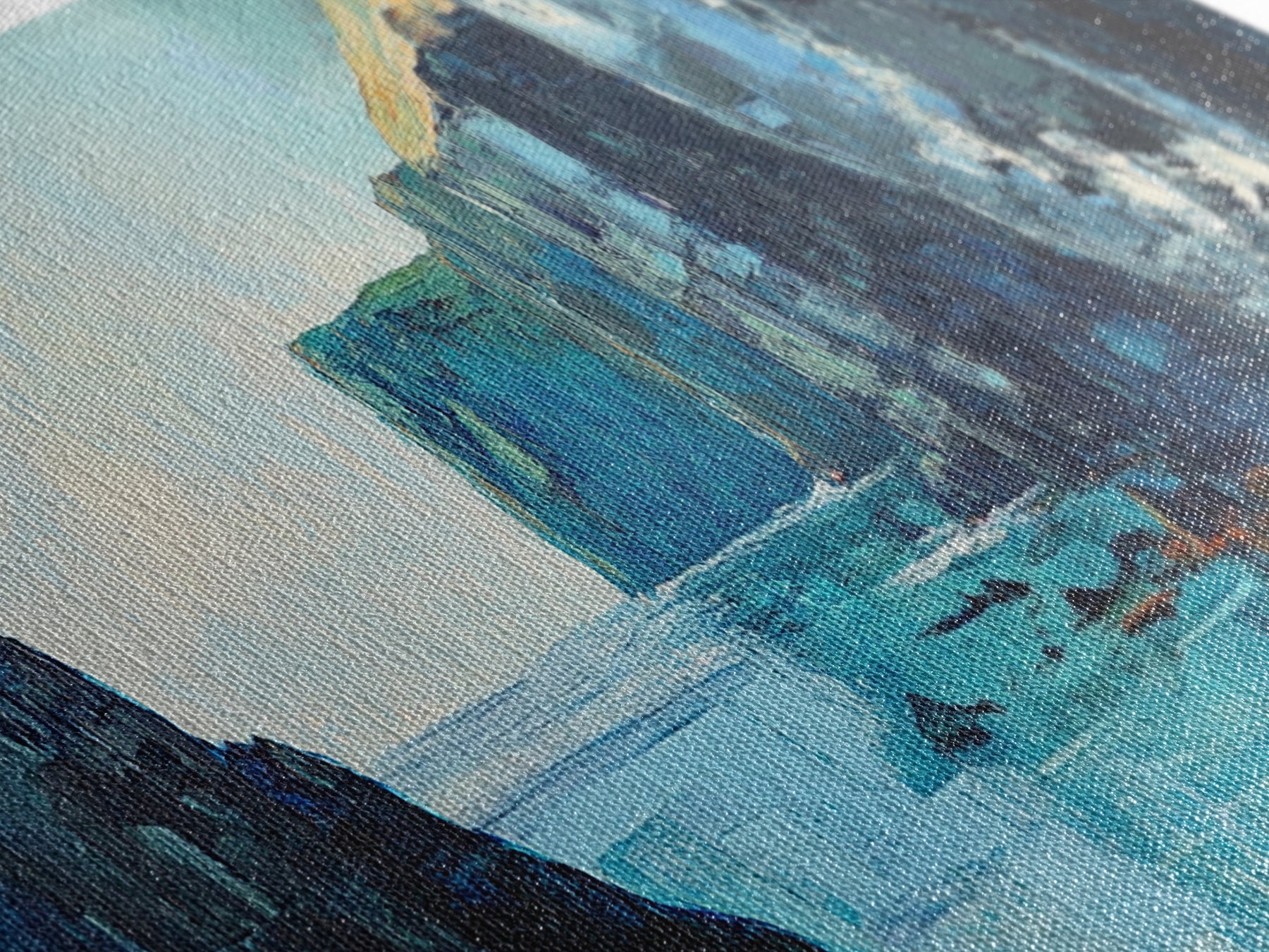 Most of our canvases are made in the USA, with the exception of canvases ordered with the light oak unstained frames, and any large canvases (24x48, 30x60, 16x48 and 20x60) ordered WITH a frame. These are temporarily made in and shipped from Europe, while we try to find a more consistent supplier in the USA.
