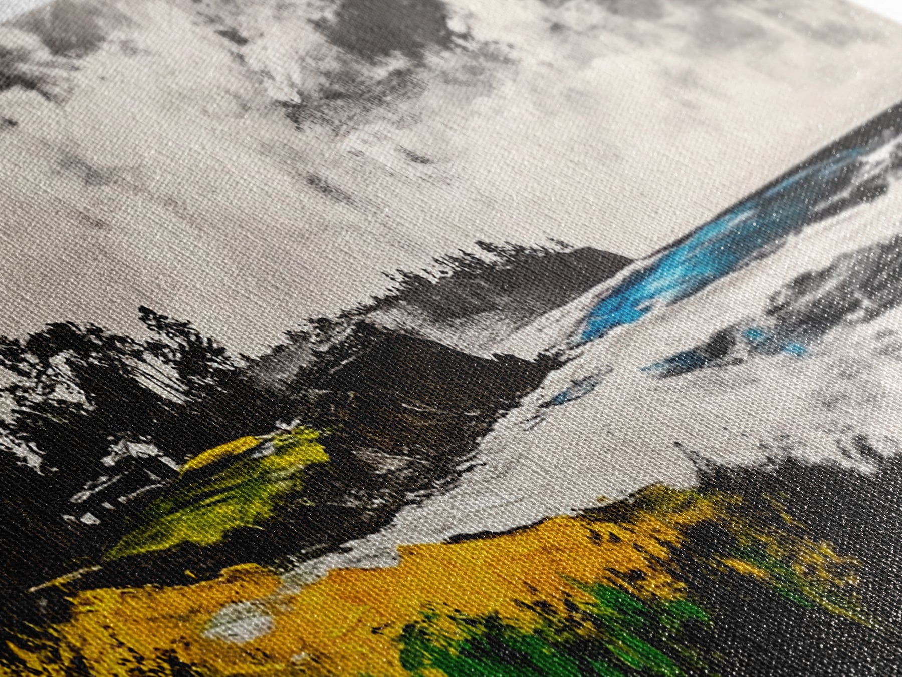 Most of our canvases are made in the USA, with the exception of canvases ordered with the light oak unstained frames, and any large canvases (24x48, 30x60, 16x48 and 20x60) ordered WITH a frame. These are temporarily made in and shipped from Europe, while we try to find a more consistent supplier in the USA.