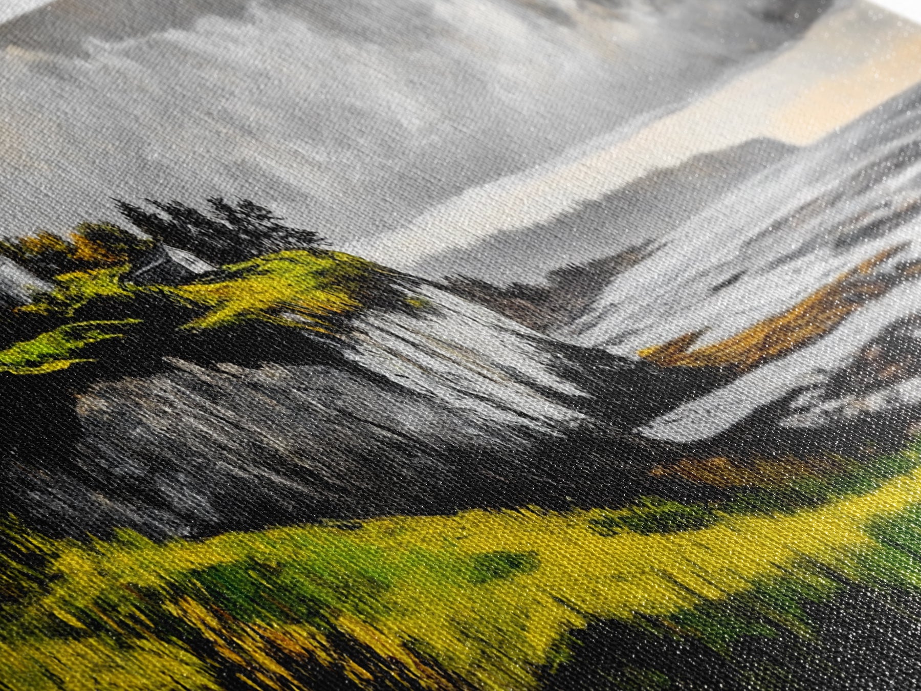 Most of our canvases are made in the USA, with the exception of canvases ordered with the light oak unstained frames, and any large canvases (24x48, 30x60, 16x48 and 20x60) ordered WITH a frame. These are temporarily made in and shipped from Europe, while we try to find a more consistent supplier in the USA.