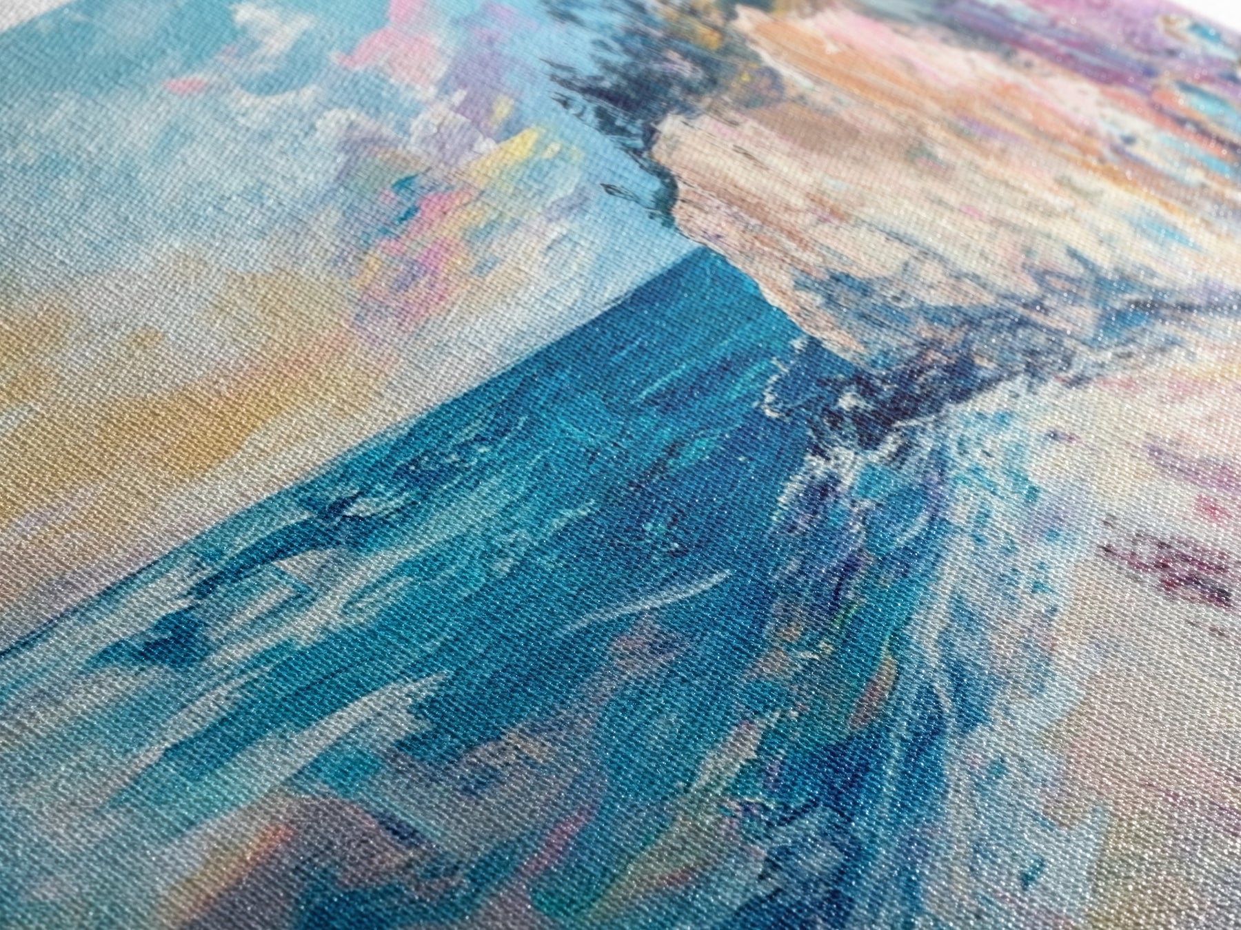 Most of our canvases are made in the USA, with the exception of canvases ordered with the light oak unstained frames, and any large canvases (24x48, 30x60, 16x48 and 20x60) ordered WITH a frame. These are temporarily made in and shipped from Europe, while we try to find a more consistent supplier in the USA.