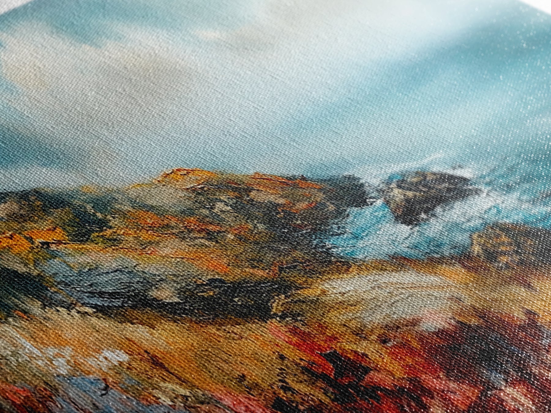 Most of our canvases are made in the USA, with the exception of canvases ordered with the light oak unstained frames, and any large canvases (24x48, 30x60, 16x48 and 20x60) ordered WITH a frame. These are temporarily made in and shipped from Europe, while we try to find a more consistent supplier in the USA.