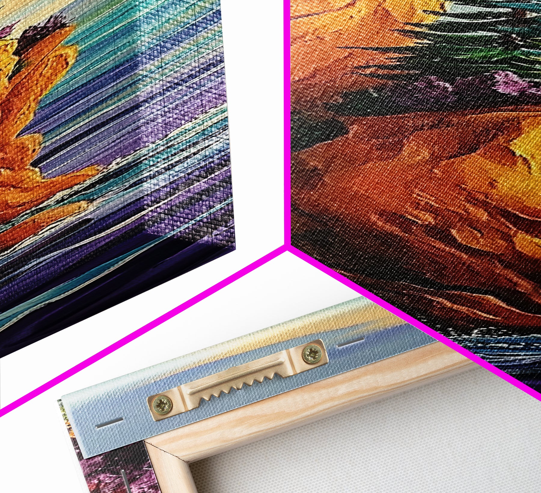 *Optional frames add a total of 1.5 inches to each dimension, for example a 10x20 canvas with a frame will be 11.5 by 21.5 inches total. All framed canvas are 1.5" total depth.
