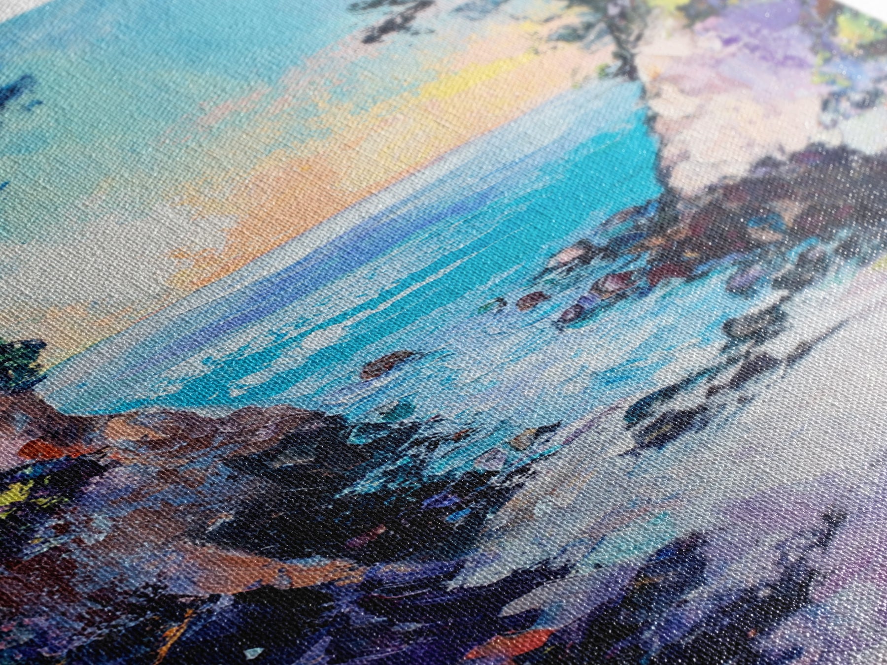 Most of our canvases are made in the USA, with the exception of canvases ordered with the light oak unstained frames, and any large canvases (24x48, 30x60, 16x48 and 20x60) ordered WITH a frame. These are temporarily made in and shipped from Europe, while we try to find a more consistent supplier in the USA.