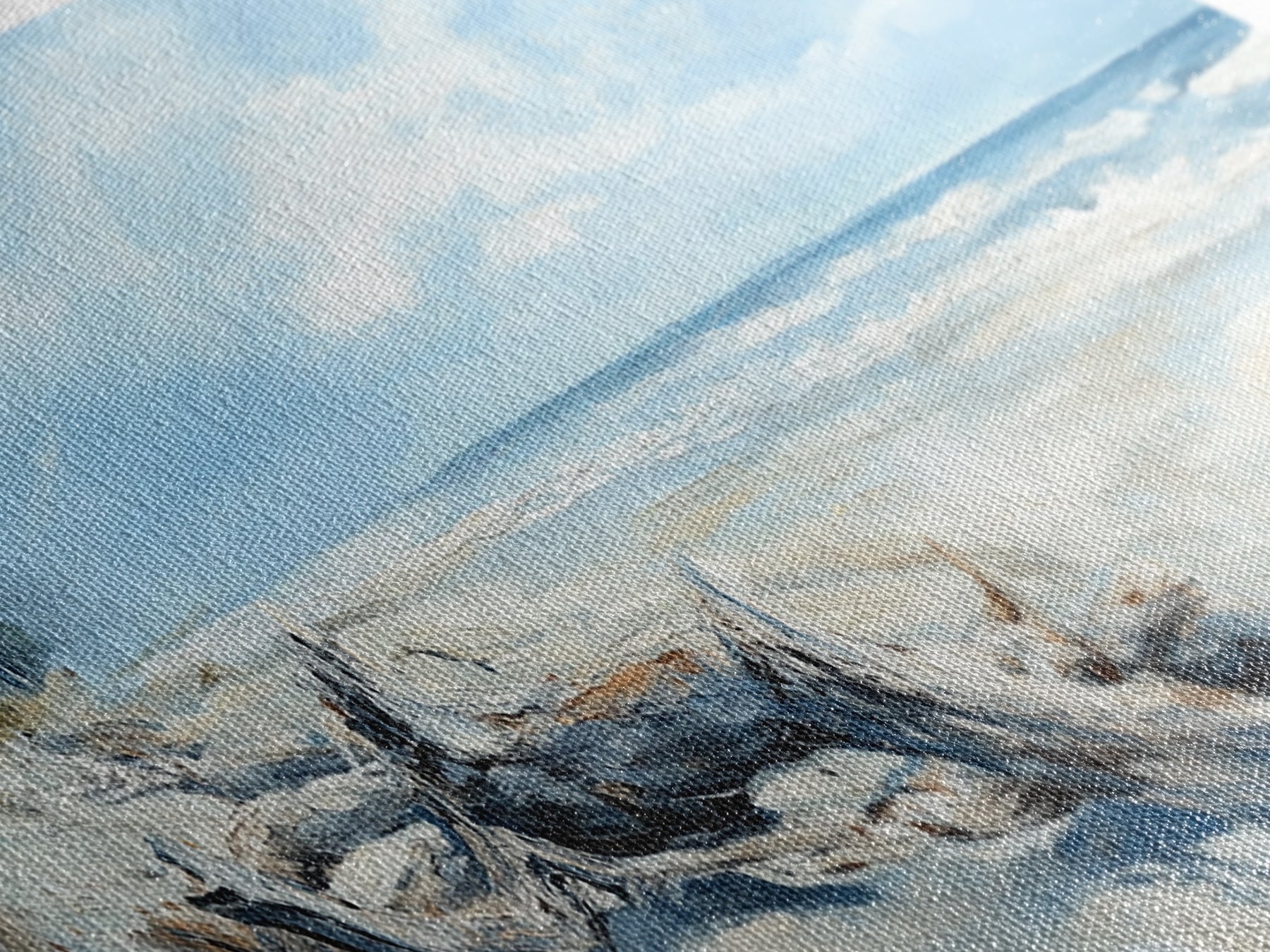 Most of our canvases are made in the USA, with the exception of canvases ordered with the light oak unstained frames, and any large canvases (24x48, 30x60, 16x48 and 20x60) ordered WITH a frame. These are temporarily made in and shipped from Europe, while we try to find a more consistent supplier in the USA.