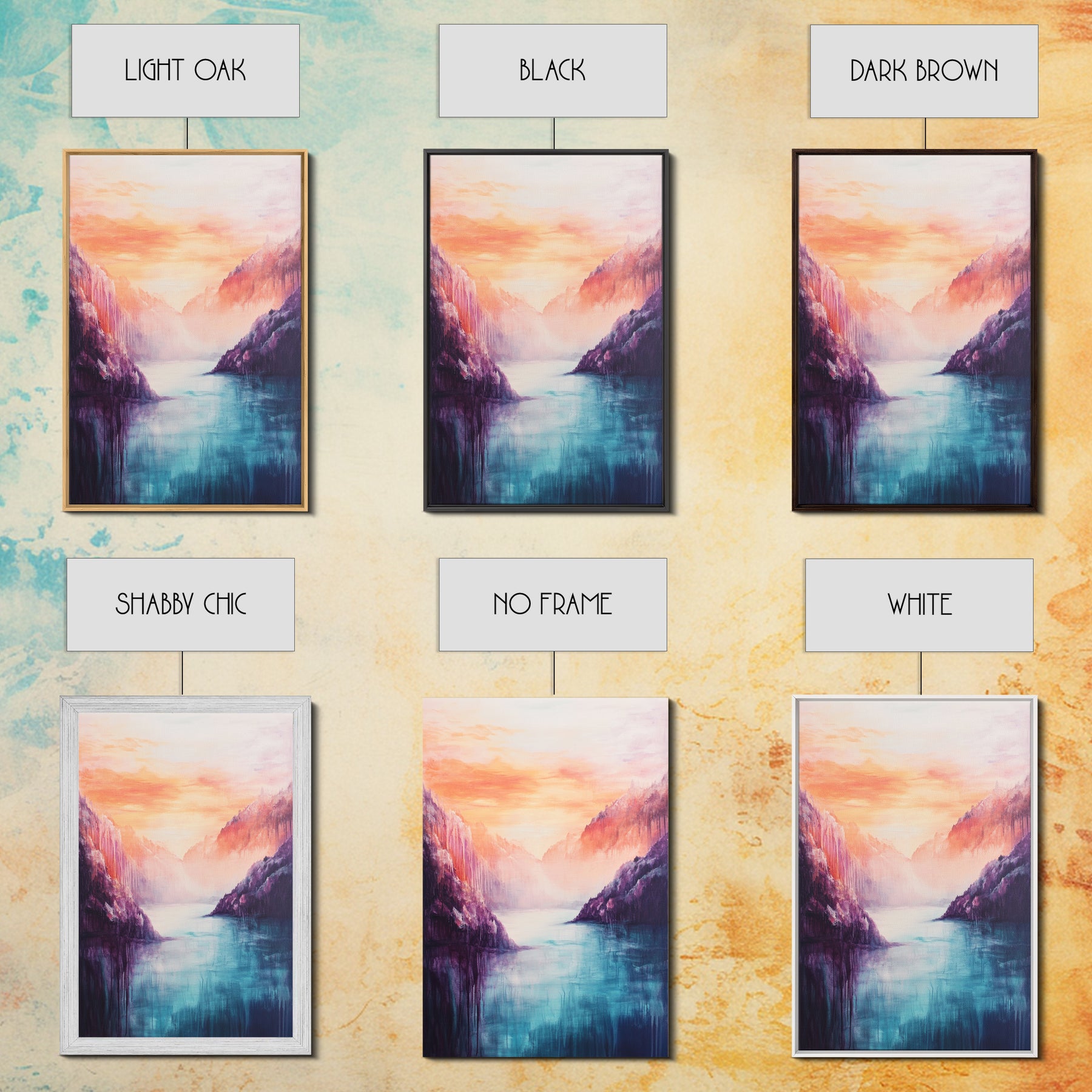 *Optional frames add a total of 1.5 inches to each dimension, for example a 10x20 canvas with a frame will be 11.5 by 21.5 inches total. All framed canvas are 1.5" total depth.