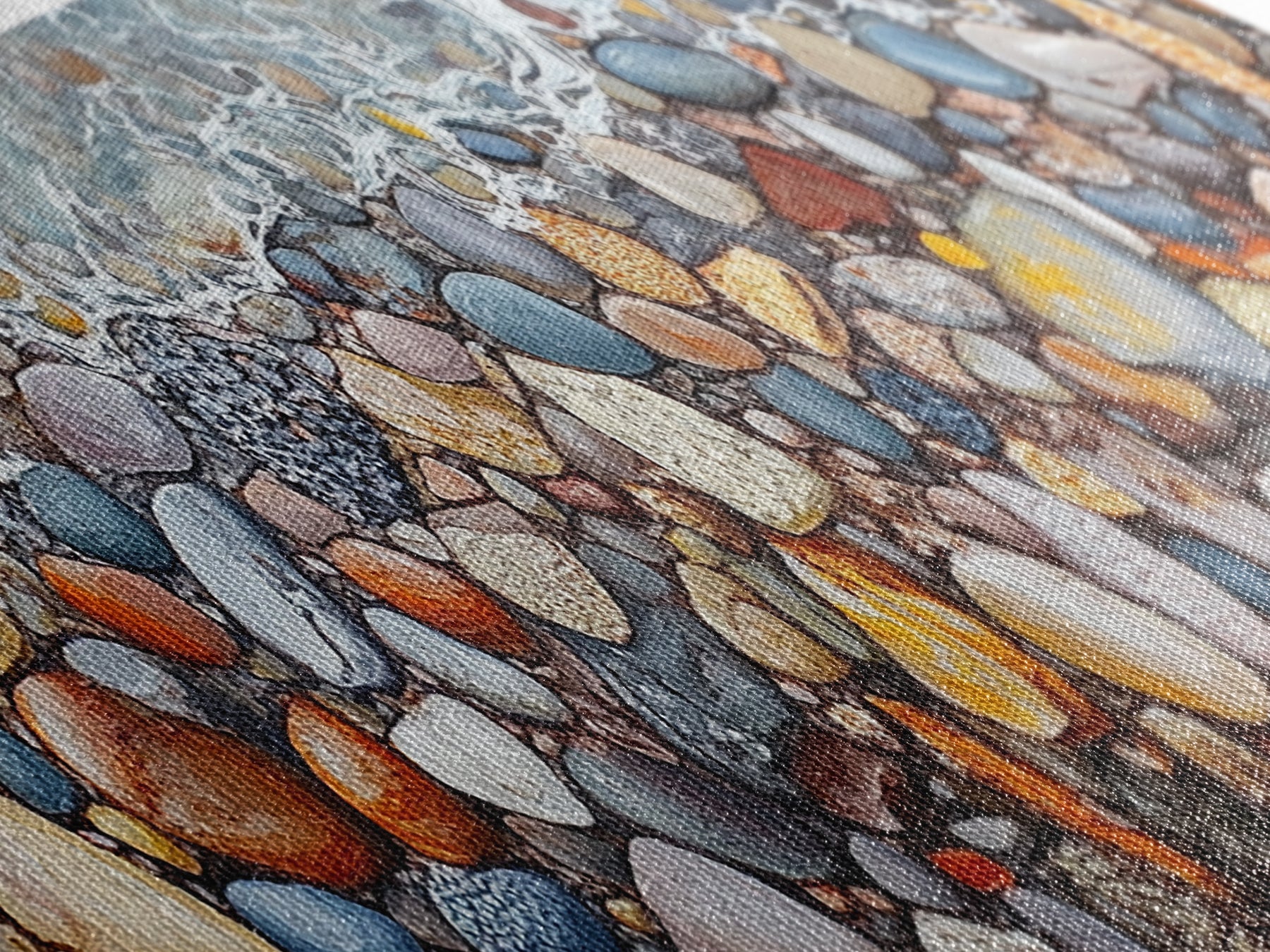 Most of our canvases are made in the USA, with the exception of canvases ordered with the light oak unstained frames, and any large canvases (24x48, 30x60, 16x48 and 20x60) ordered WITH a frame. These are temporarily made in and shipped from Europe, while we try to find a more consistent supplier in the USA.