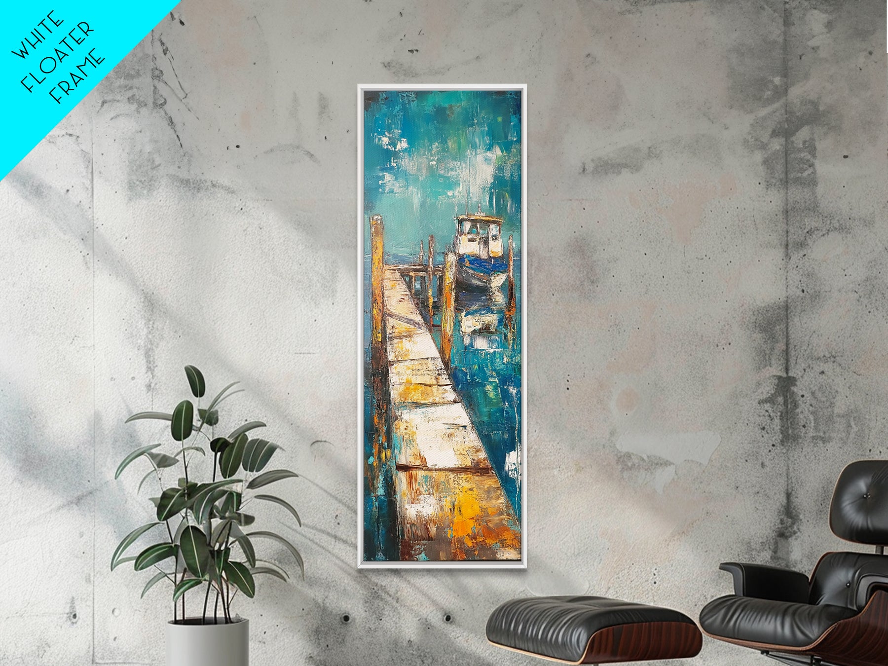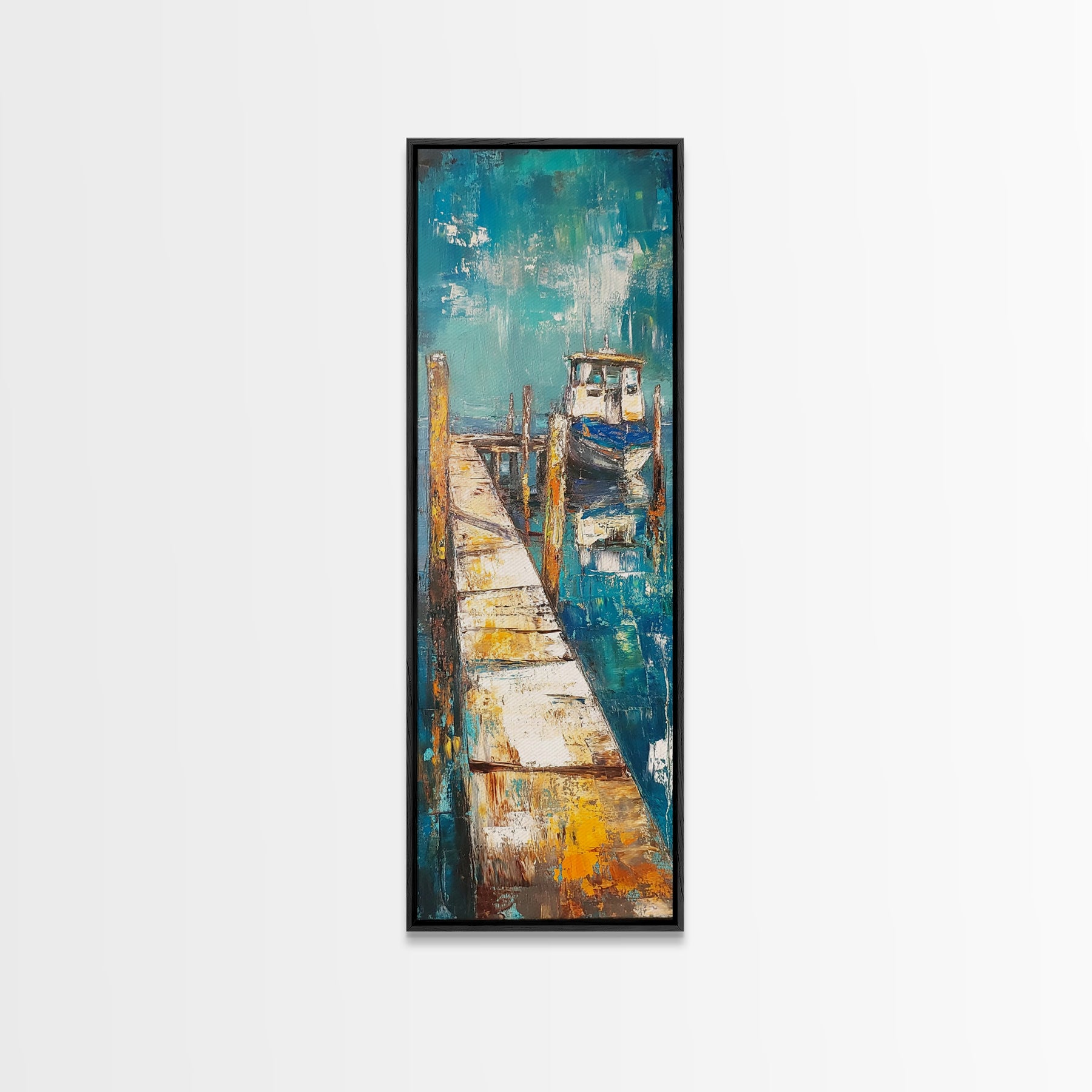 Coastal Dock Painting Canvas Print, Nautical Wall Art, Painting Morro Bay, Coastal Decor, Seascape Painting, Ocean Art, Rustic Art, Extra Wide Art, Farmhouse Art, Nautical Painting, Blue And Green Wall Art, Gift Idea, Bedroom Art