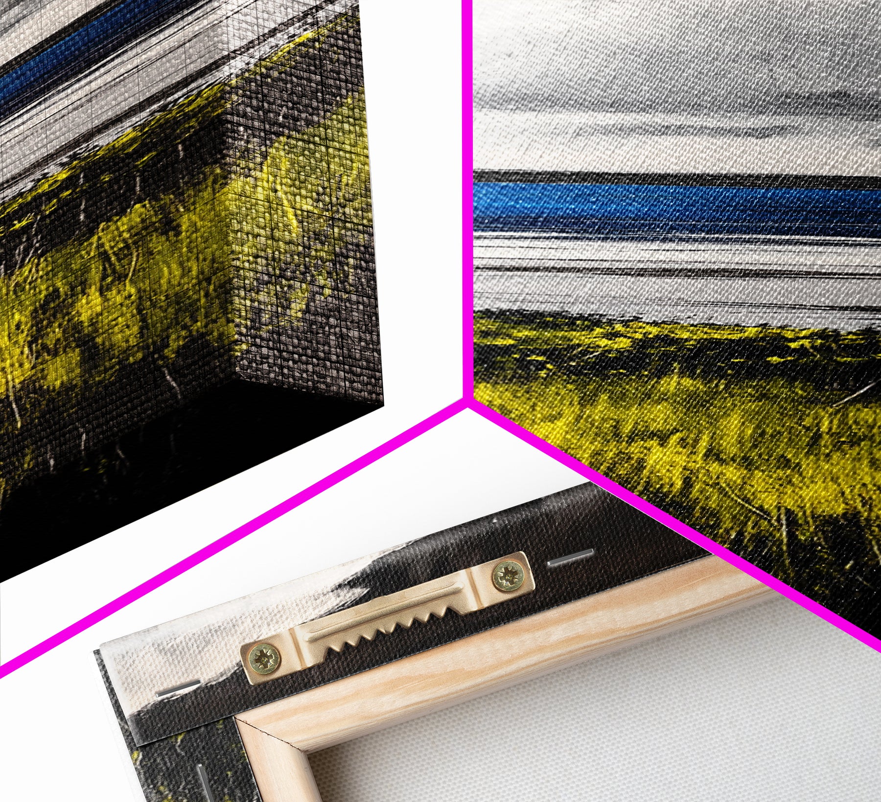 Hello and thank you for taking the time to view our modern high quality giclée artwork! We offer both posters and stretched canvas prints. Our posters are printed on Ultra Matte 60 lb / 230 GSM high quality photo paper, with a thickness of 10 mil. Our canvases are printed on museum grade 350 GSM canvas material with ECO friendly archival grade ink, then hand stretched and stapled over premium, FSC certified and shrink resistant frames. Designed and built to last a lifetime.