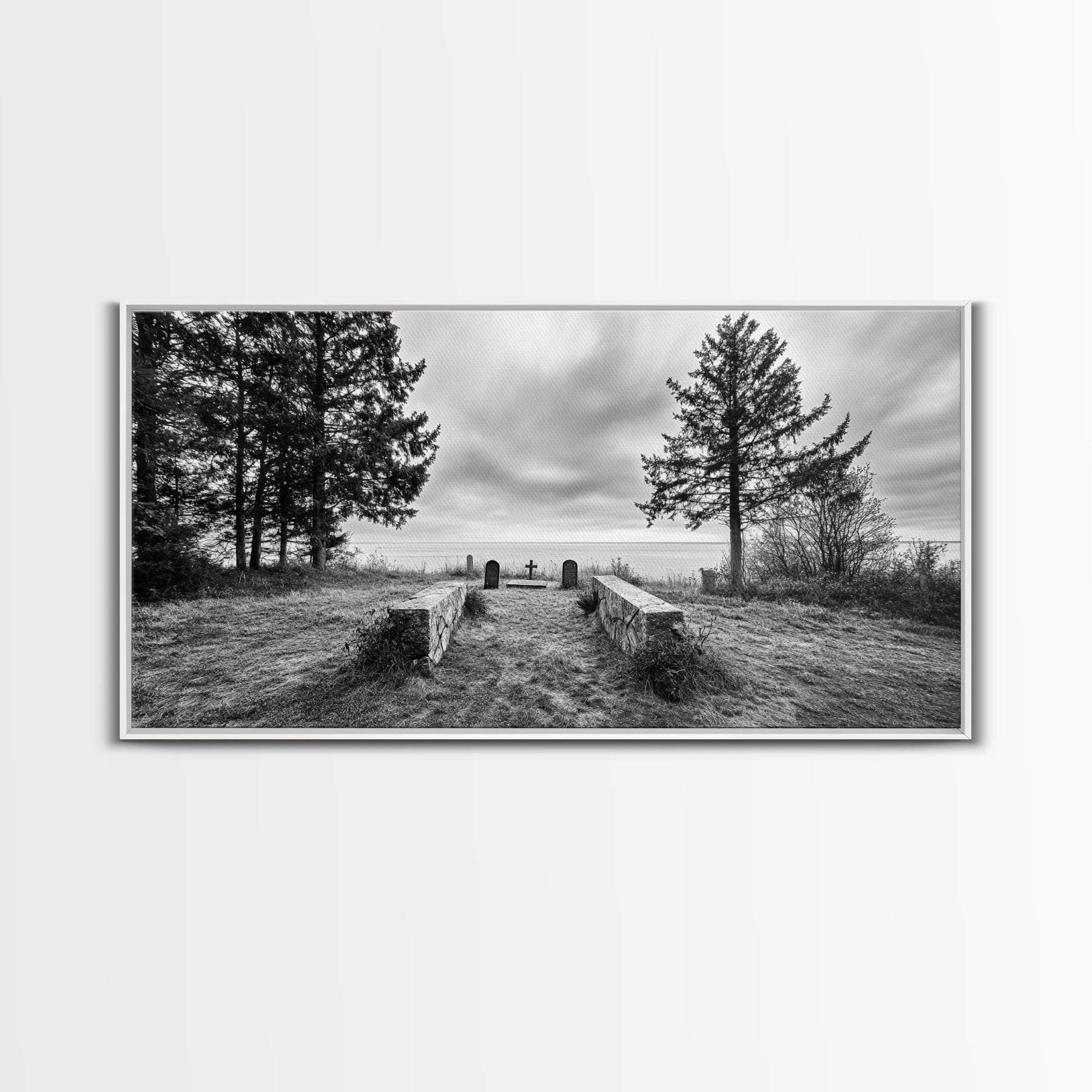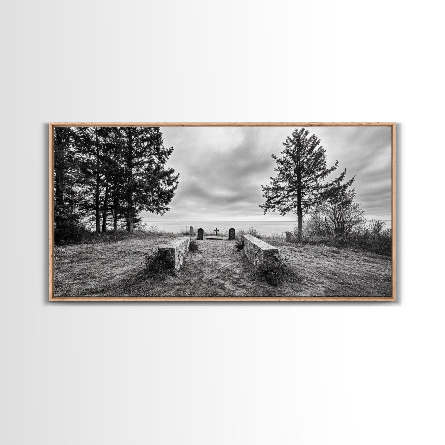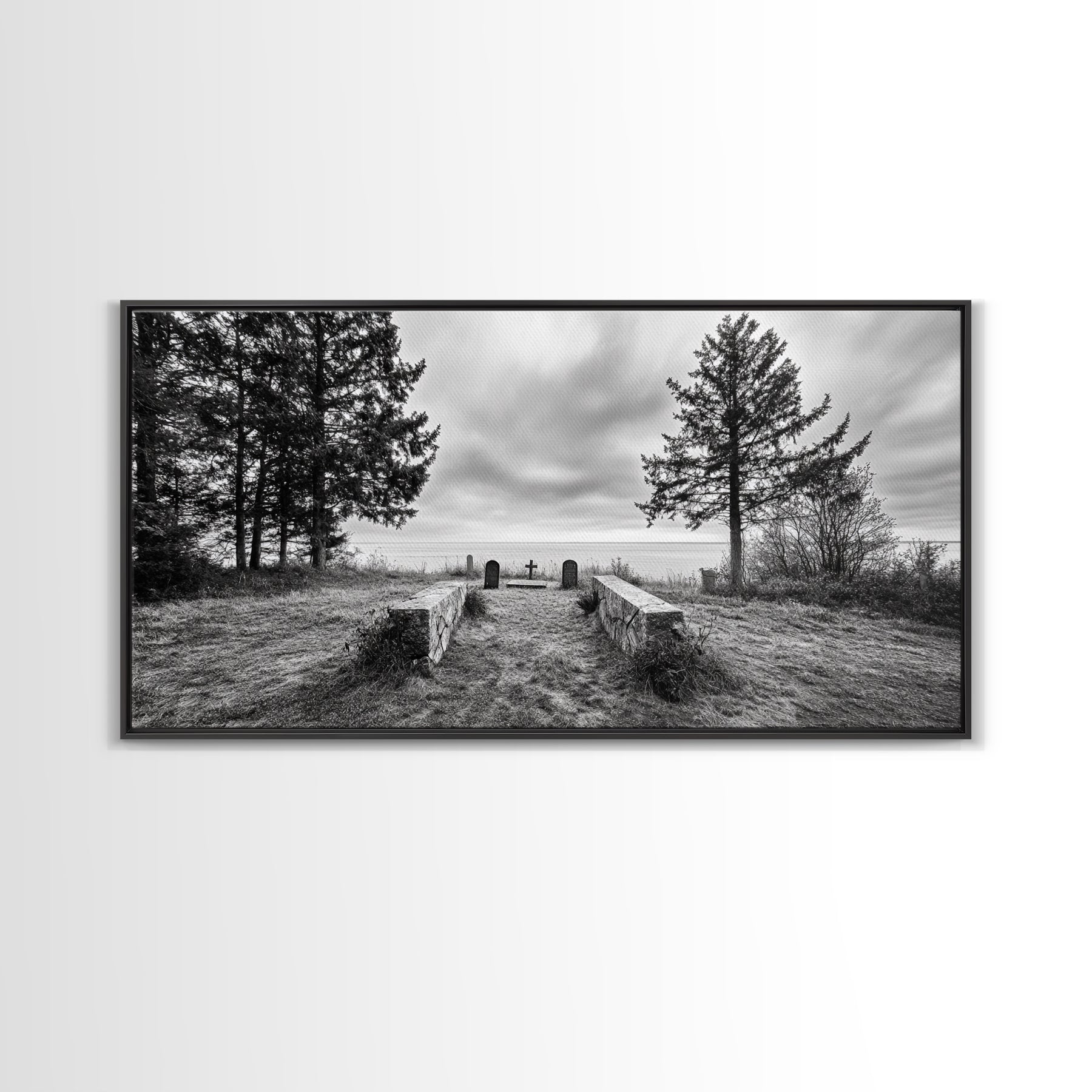 Coastal Graveyard, Moody Seascape, Quiet Reflection Scene, Framed Canvas Print, Gothic Office or Haunted Fall Wall Art Decor, Hallway Wall Art