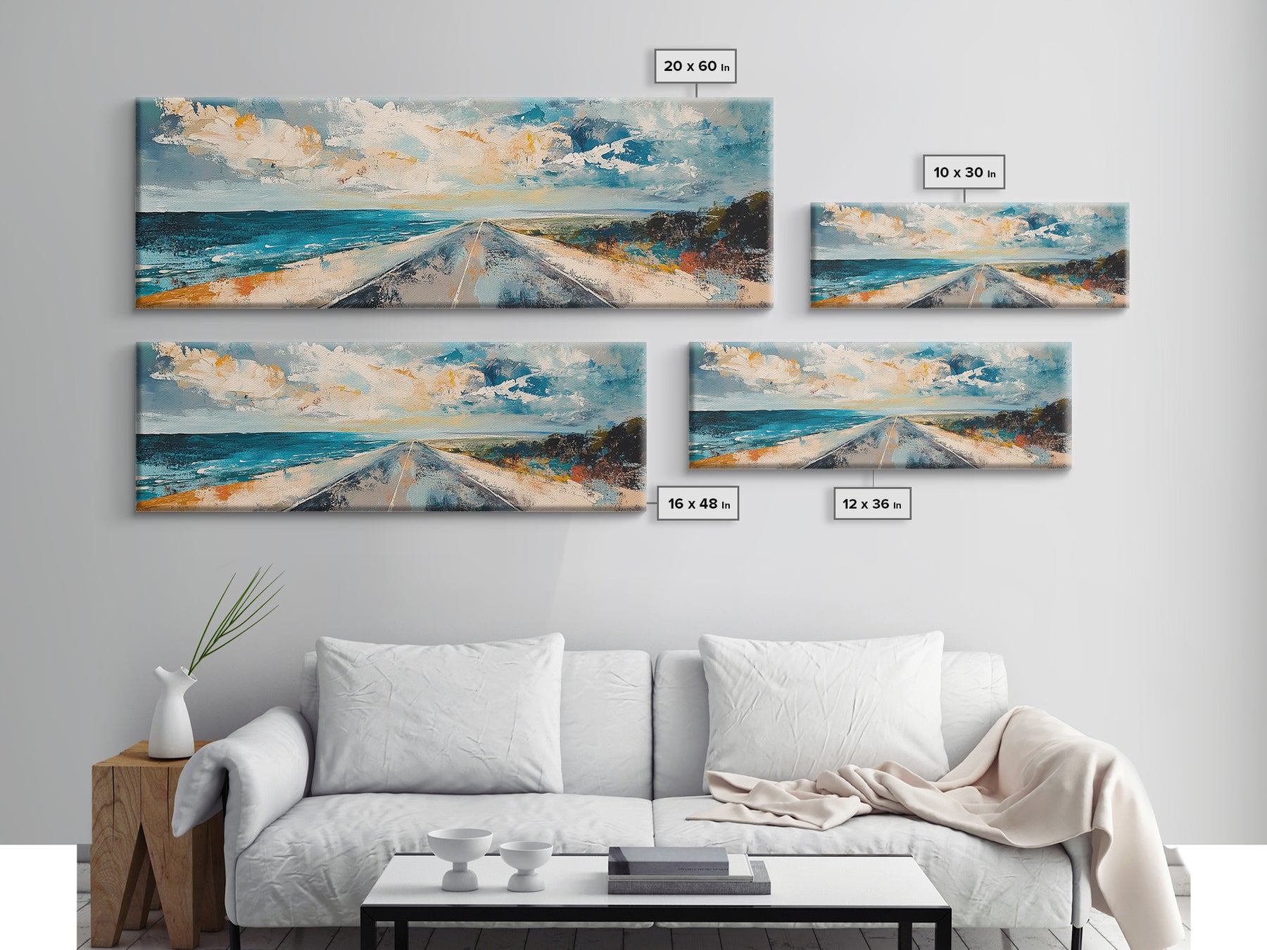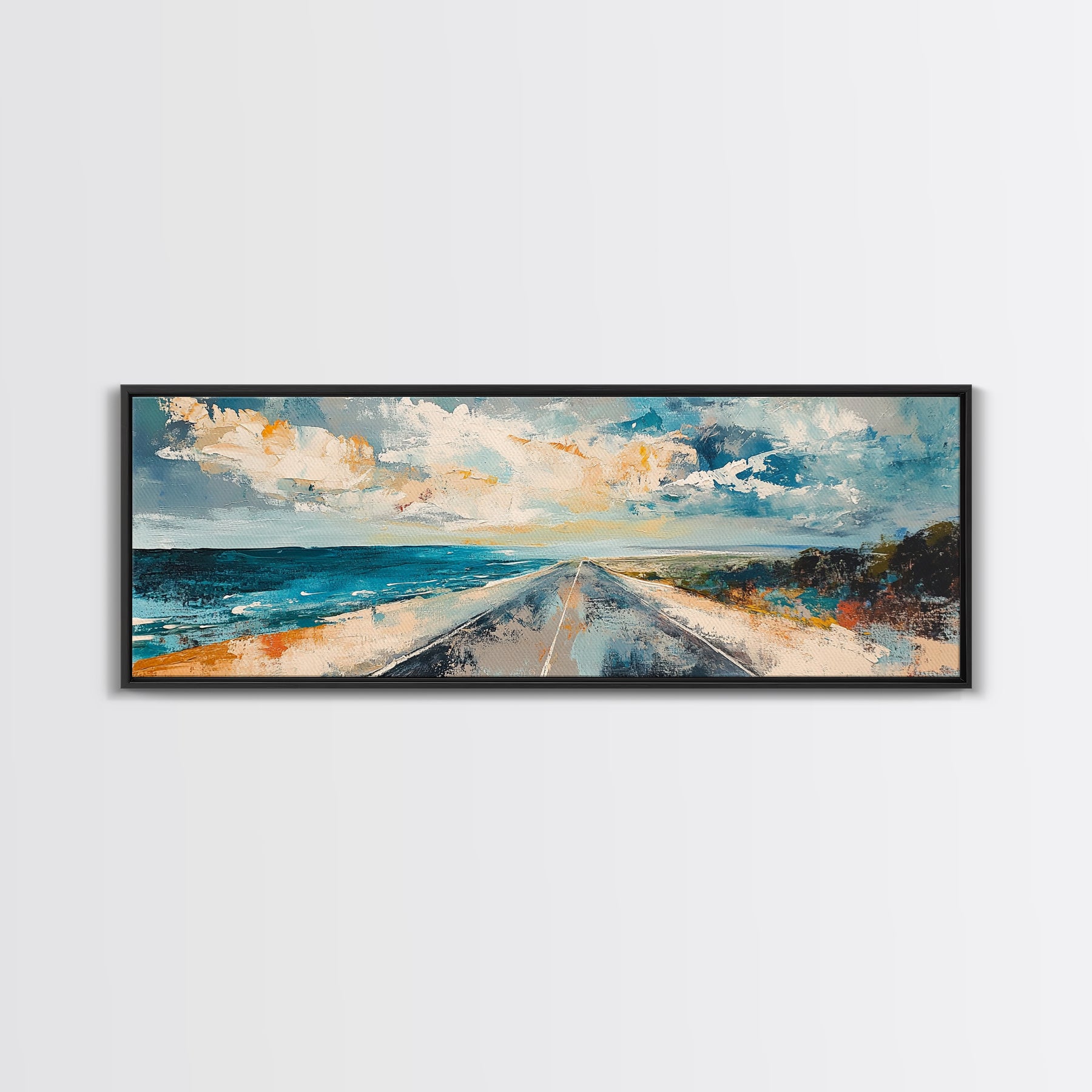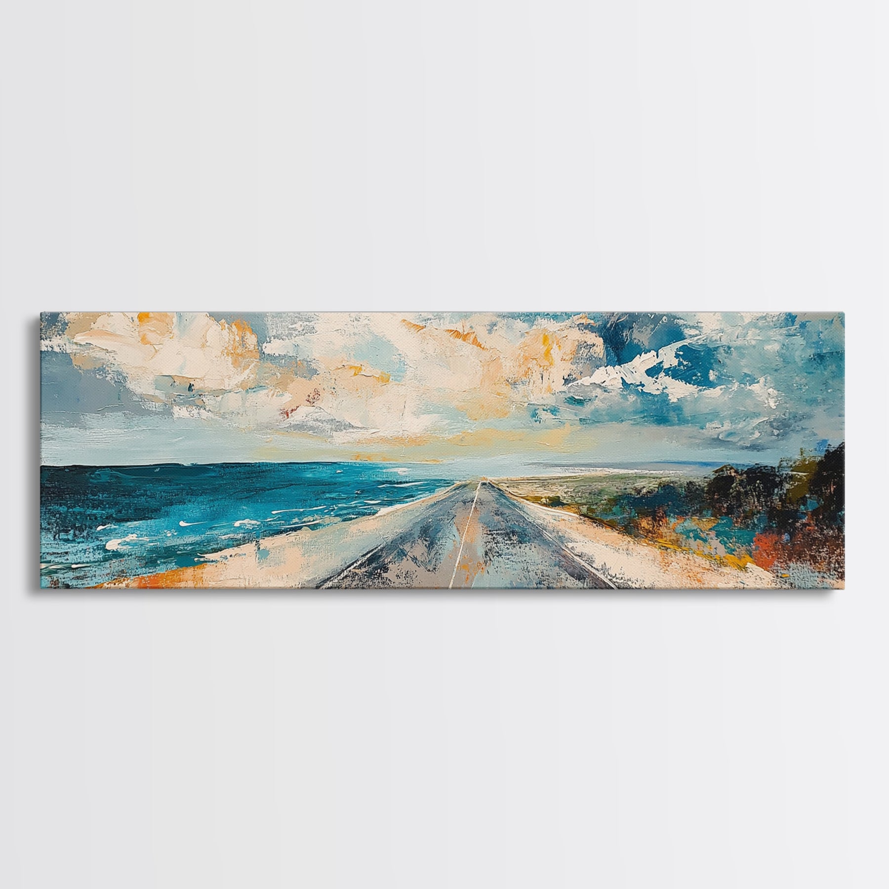 Coastal Highway Canvas Print, Ocean Road Painting, Scenic Landscape Wall Art, Travel Decor, Abstract Artwork, Office Wall Art