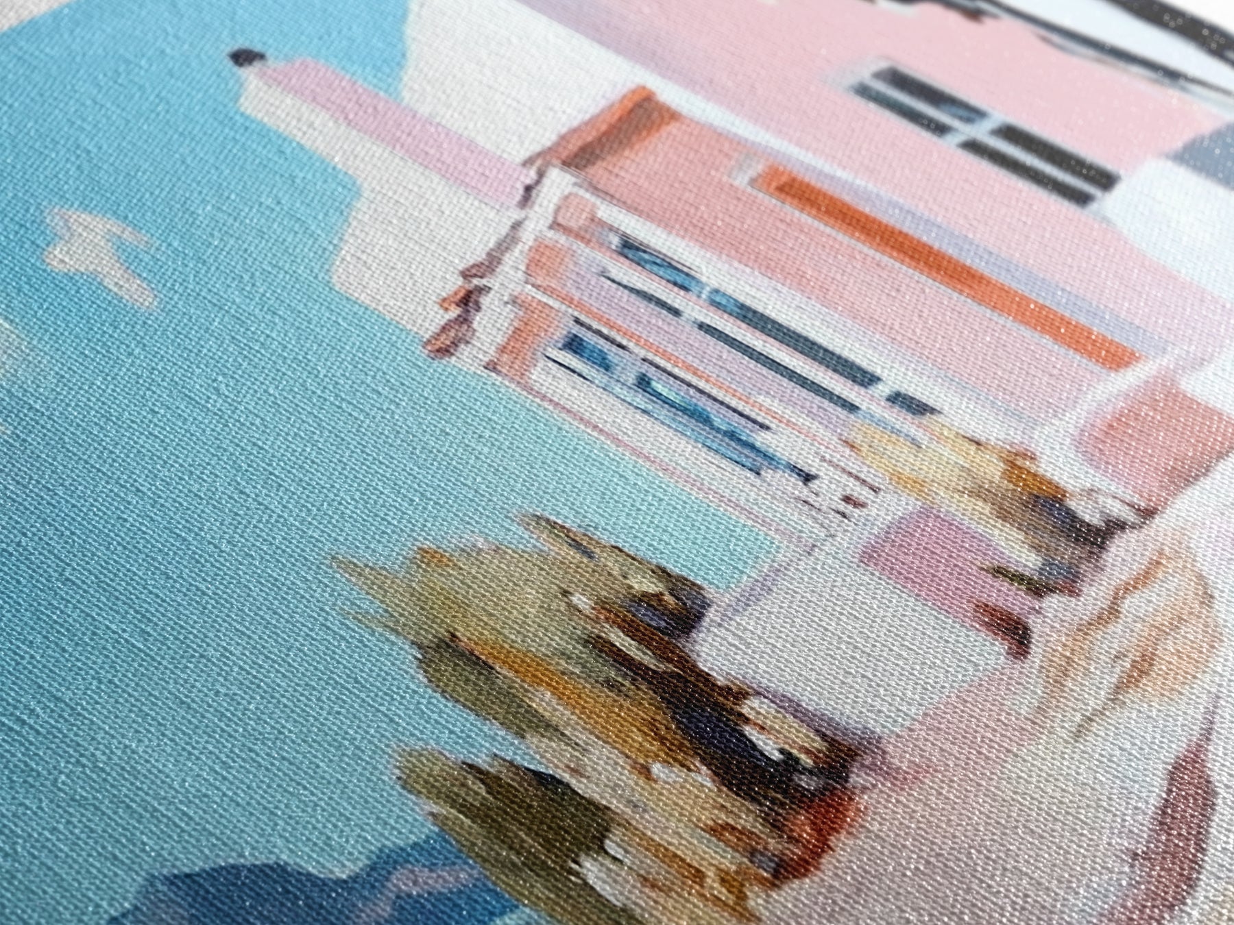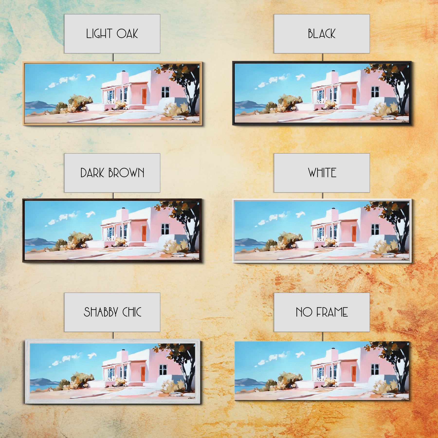 Coastal House, Summer Art, Beach Landscape, Framed Canvas Print, Mediterranean Wall Art, Minimalist Painting, Living Room Decoran Waves