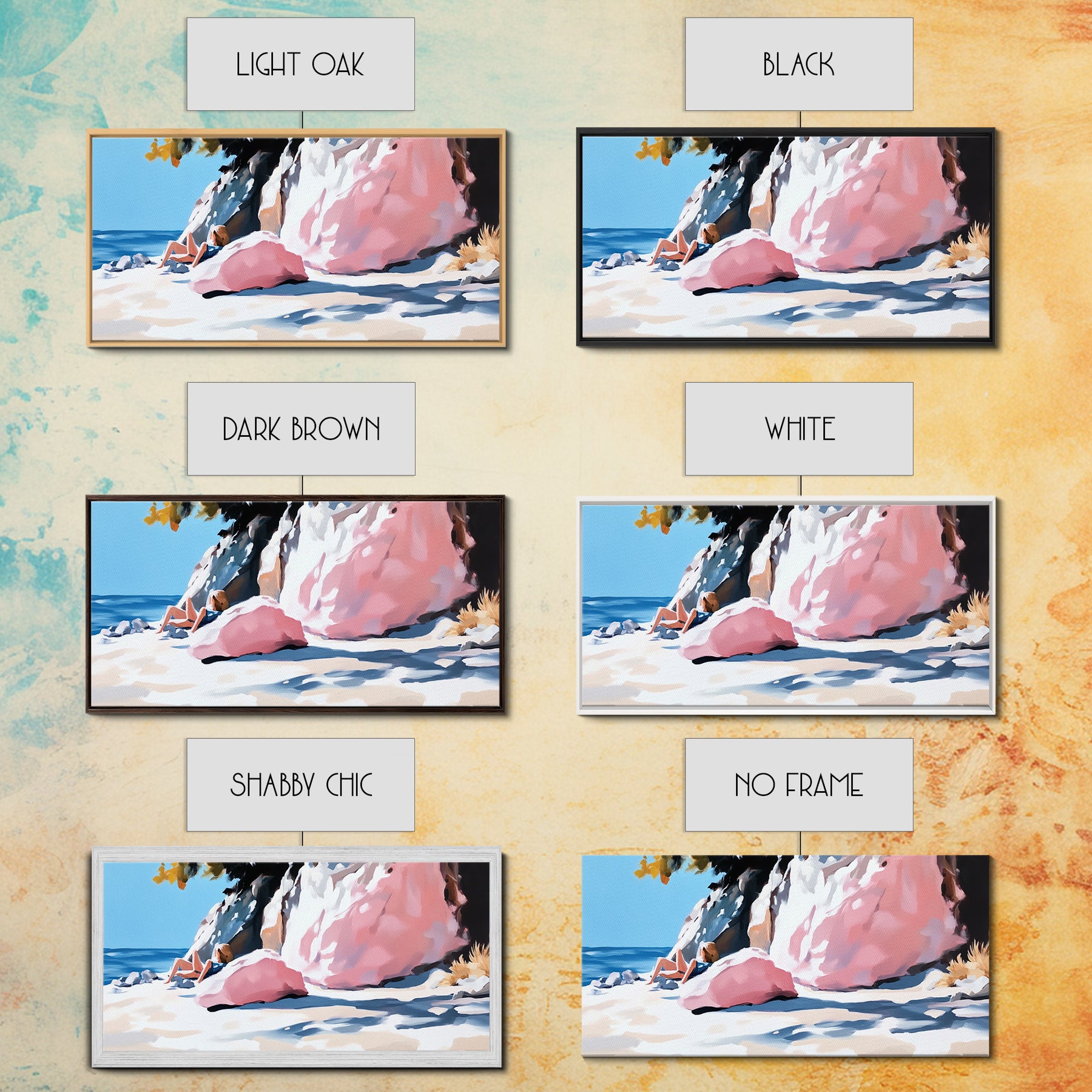 *Optional frames add a total of 1.5 inches to each dimension, for example a 10x20 canvas with a frame will be 11.5 by 21.5 inches total. All framed canvas are 1.5" total depth.