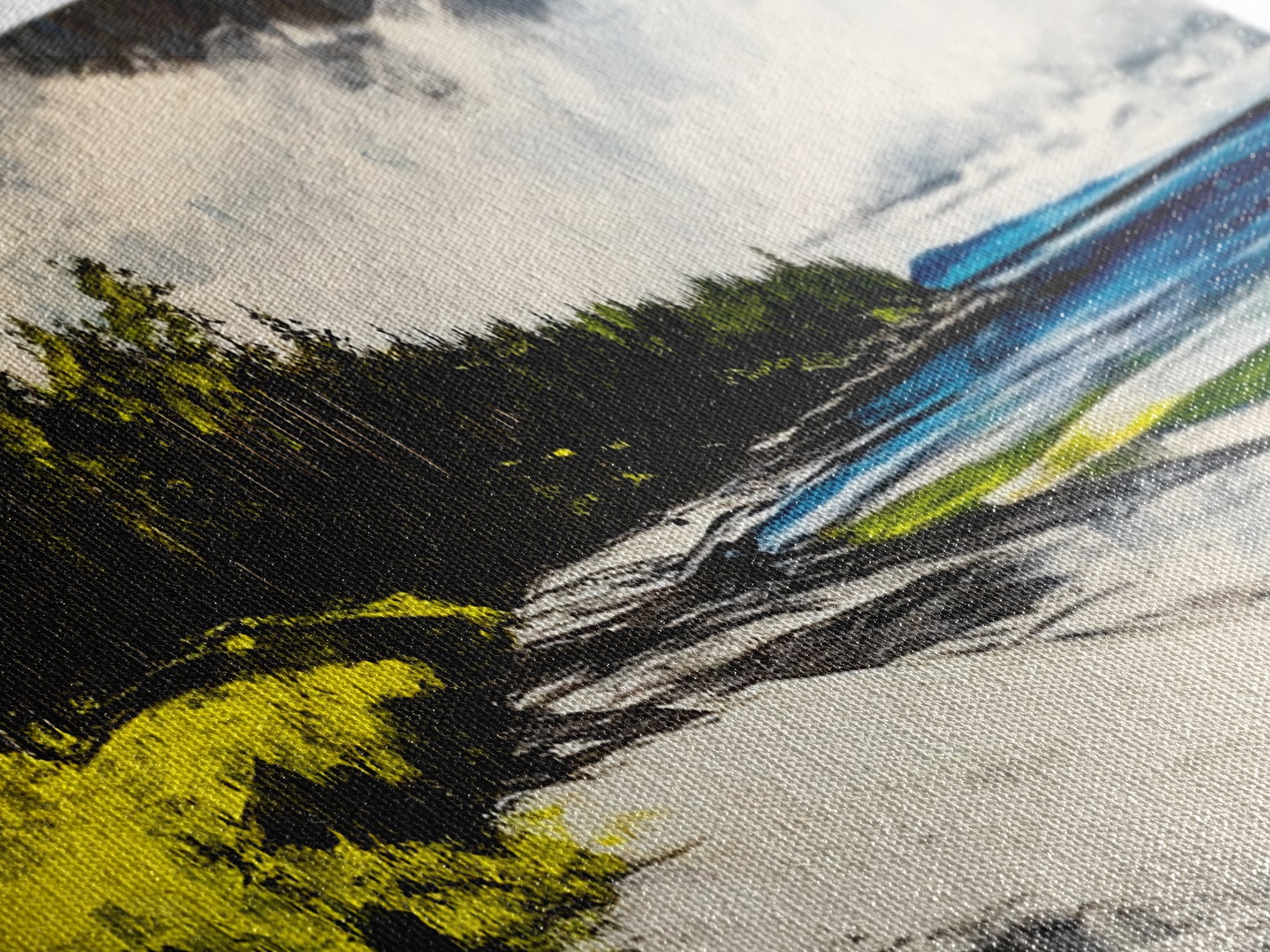 Most of our canvases are made in the USA, with the exception of canvases ordered with the light oak unstained frames, and any large canvases (24x48, 30x60, 16x48 and 20x60) ordered WITH a frame. These are temporarily made in and shipped from Europe, while we try to find a more consistent supplier in the USA.