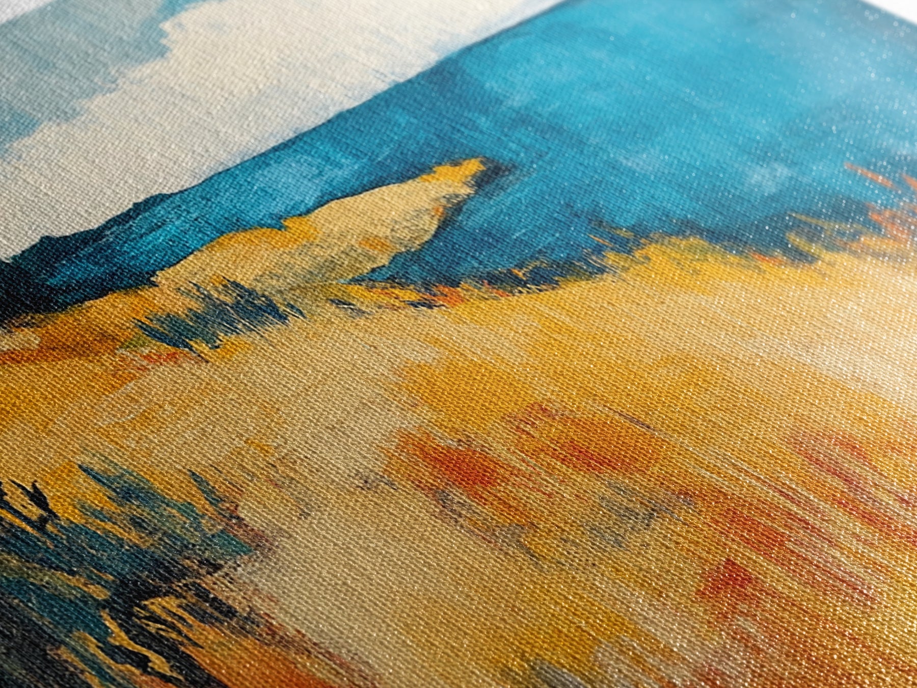 Most of our canvases are made in the USA, with the exception of canvases ordered with the light oak unstained frames, and any large canvases (24x48, 30x60, 16x48 and 20x60) ordered WITH a frame. These are temporarily made in and shipped from Europe, while we try to find a more consistent supplier in the USA.