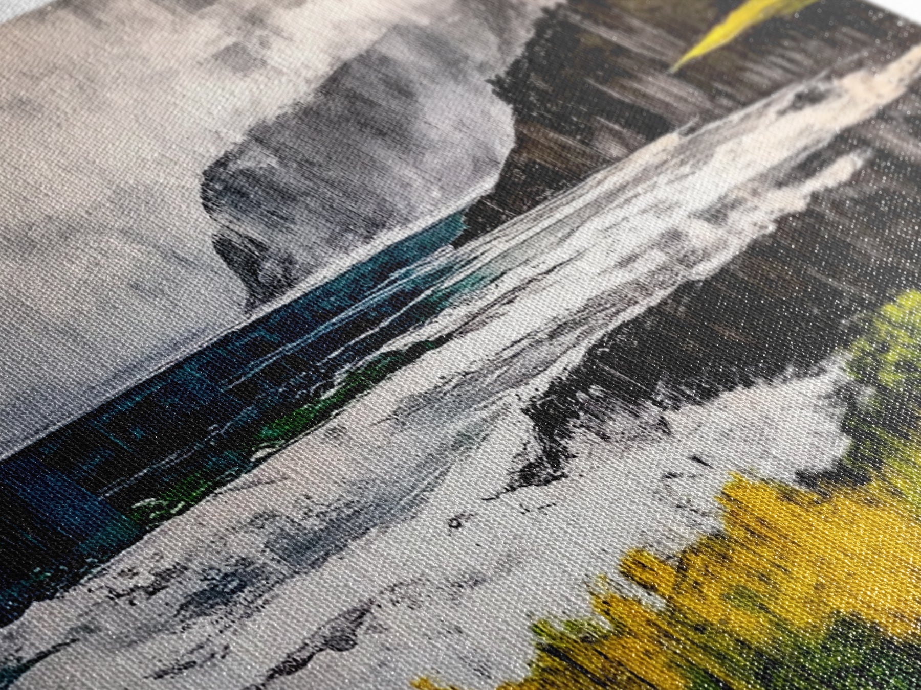 Most of our canvases are made in the USA, with the exception of canvases ordered with the light oak unstained frames, and any large canvases (24x48, 30x60, 16x48 and 20x60) ordered WITH a frame. These are temporarily made in and shipped from Europe, while we try to find a more consistent supplier in the USA.
