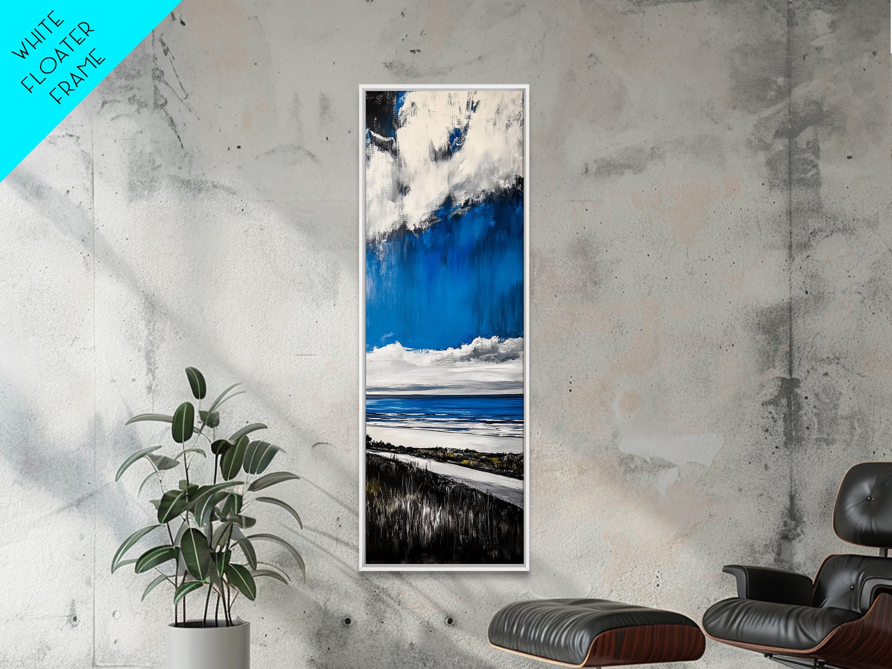 Coastal Path Painting, Modern Beach Landscape, Blue Sky and Ocean Art, Contemporary Home Decor, Living Room Wall Art, Canvas Print