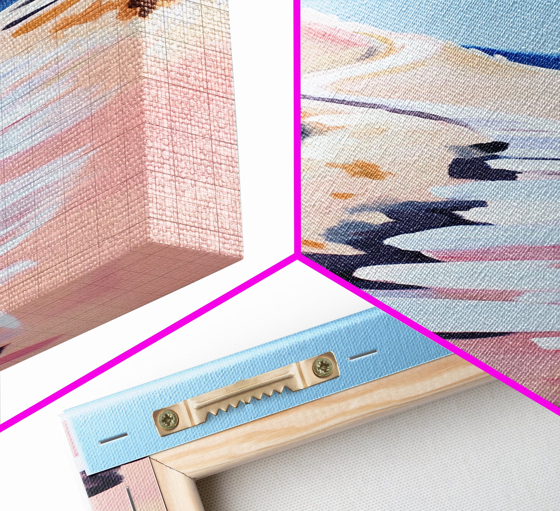 Hello and thank you for taking the time to view our modern high quality giclée artwork! We offer both posters and stretched canvas prints. Our posters are printed on Ultra Matte 60 lb / 230 GSM high quality photo paper, with a thickness of 10 mil. Our canvases are printed on museum grade 350 GSM canvas material with ECO friendly archival grade ink, then hand stretched and stapled over premium, FSC certified and shrink resistant frames. Designed and built to last a lifetime.